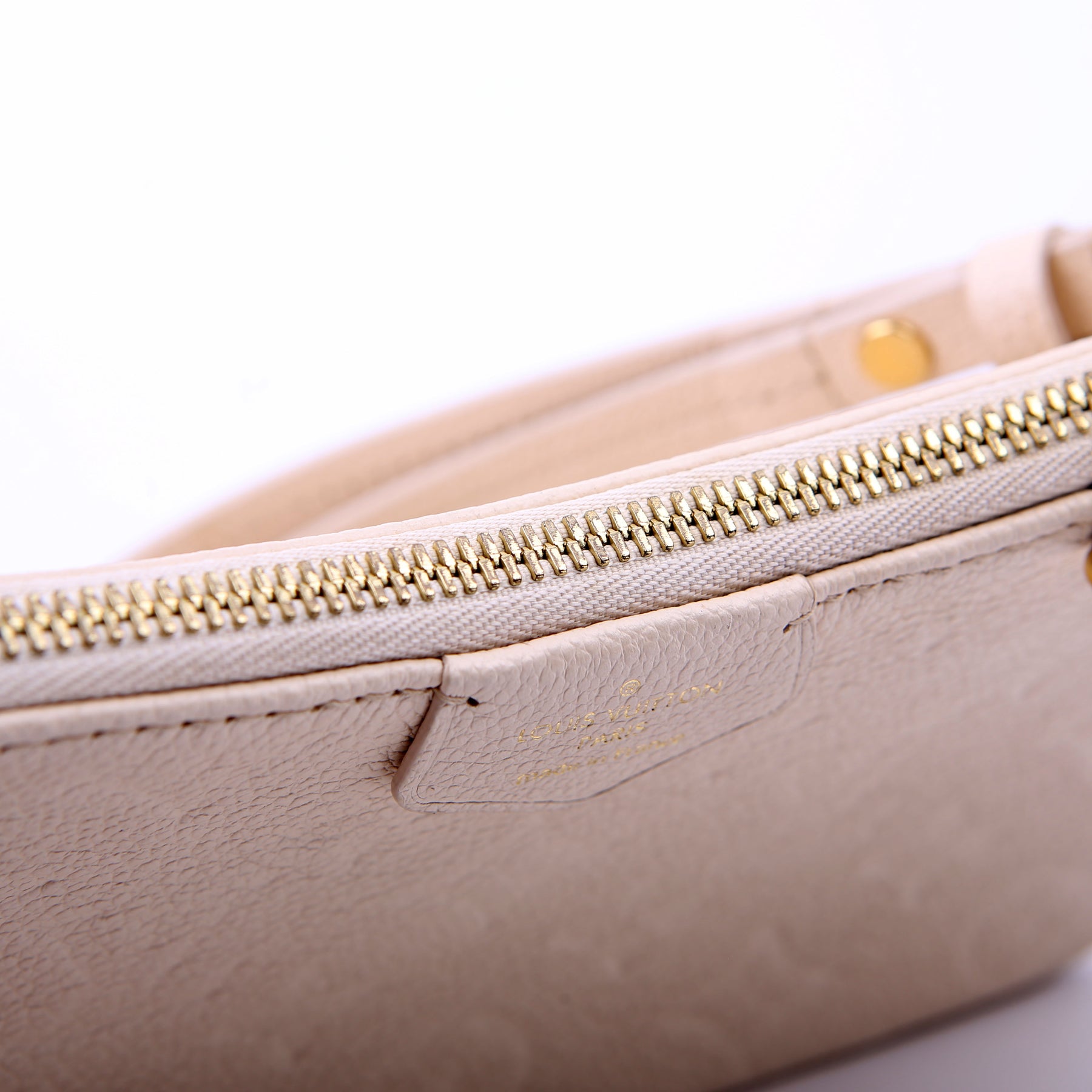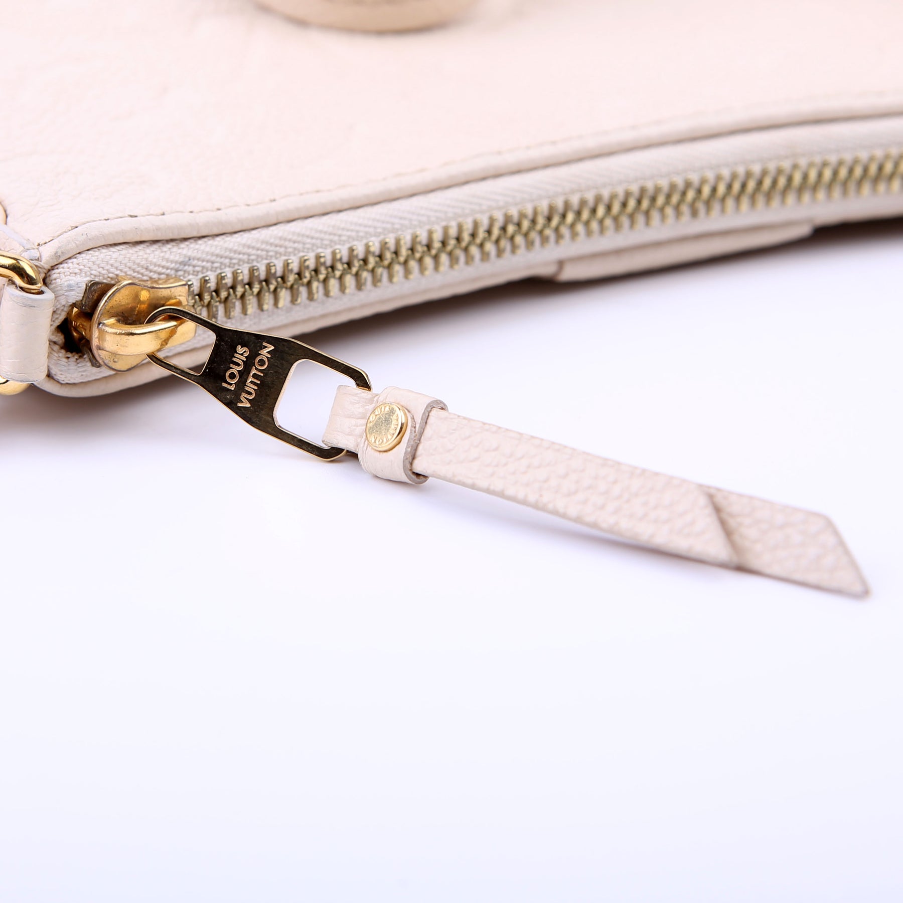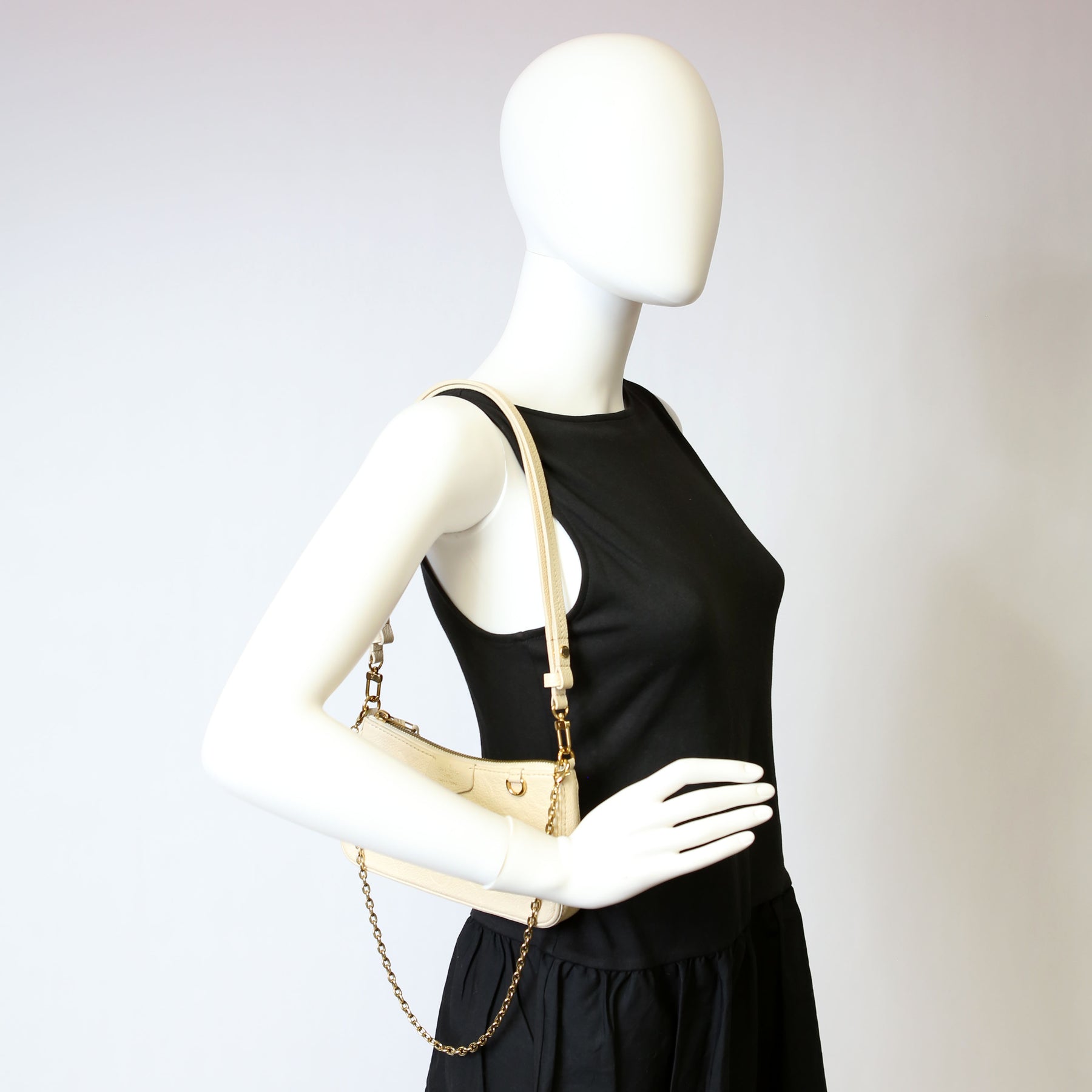 This pre-owned Louis Vuitton Easy Pouch On Strap is guaranteed 100% authentic. The exterior is in the classic Louis Vuitton Empreinte Leather.