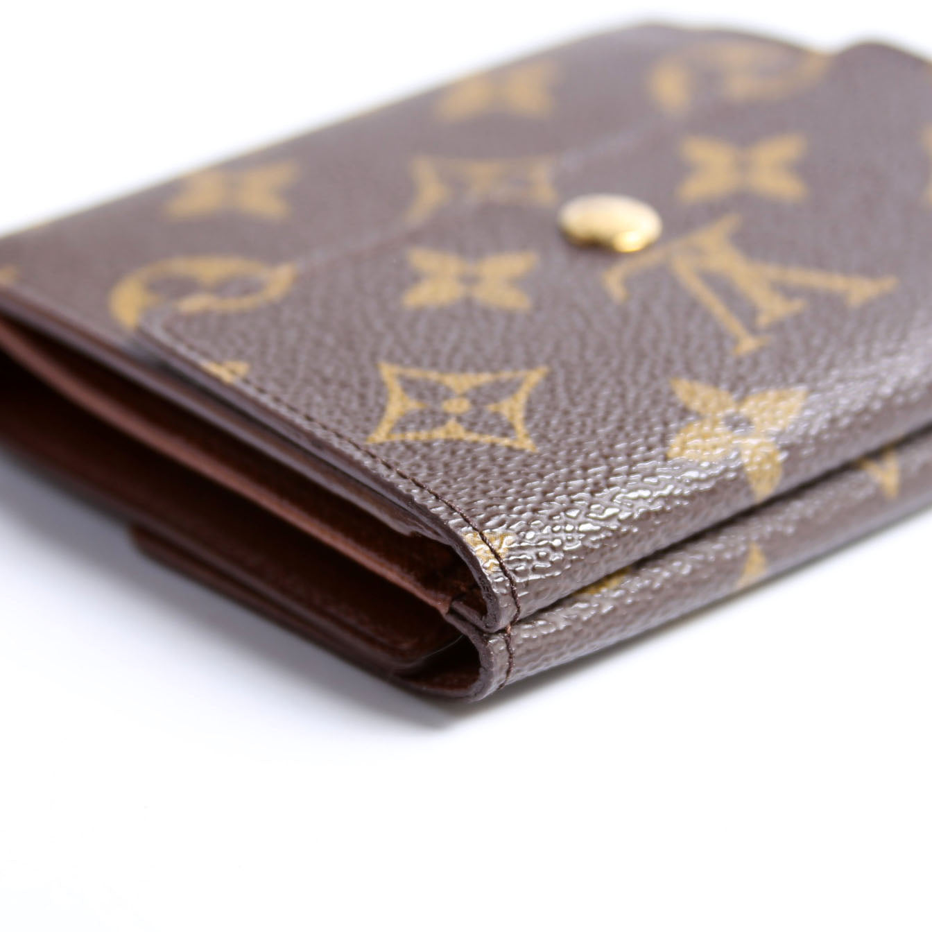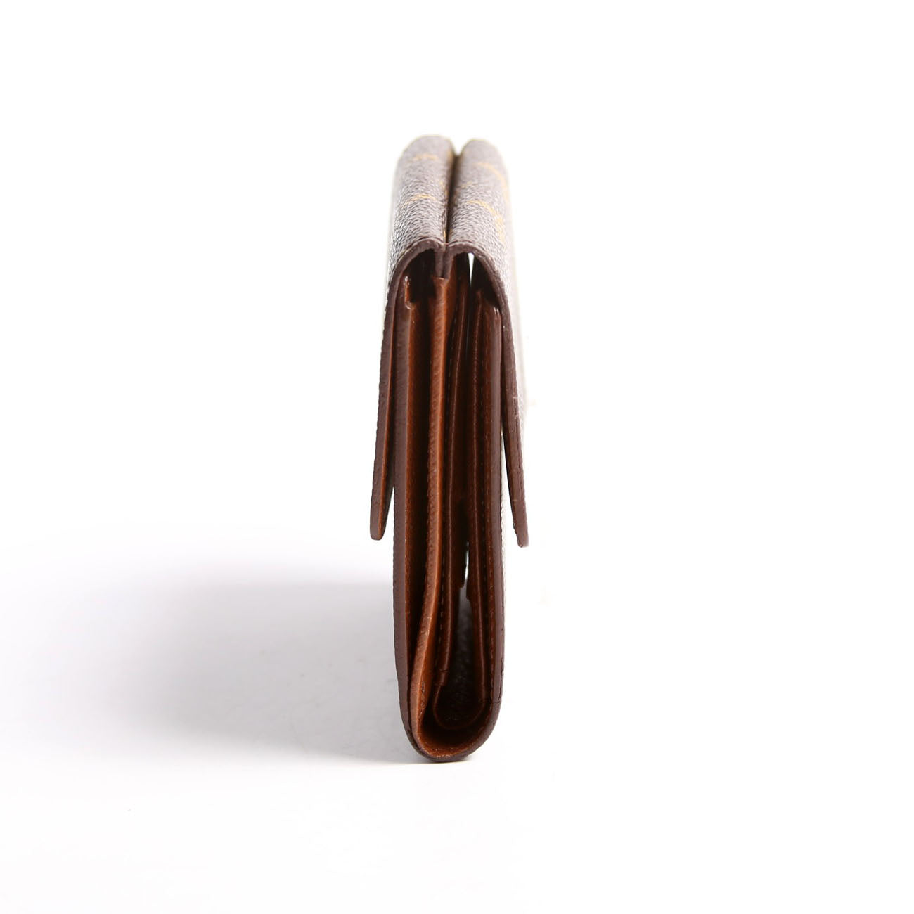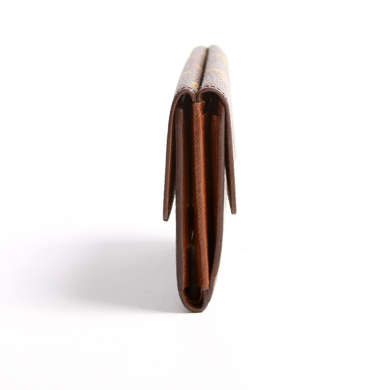 Interior: The interior shows light wear and indentions. It features six card slots, one bill slots, and one coin pouch.