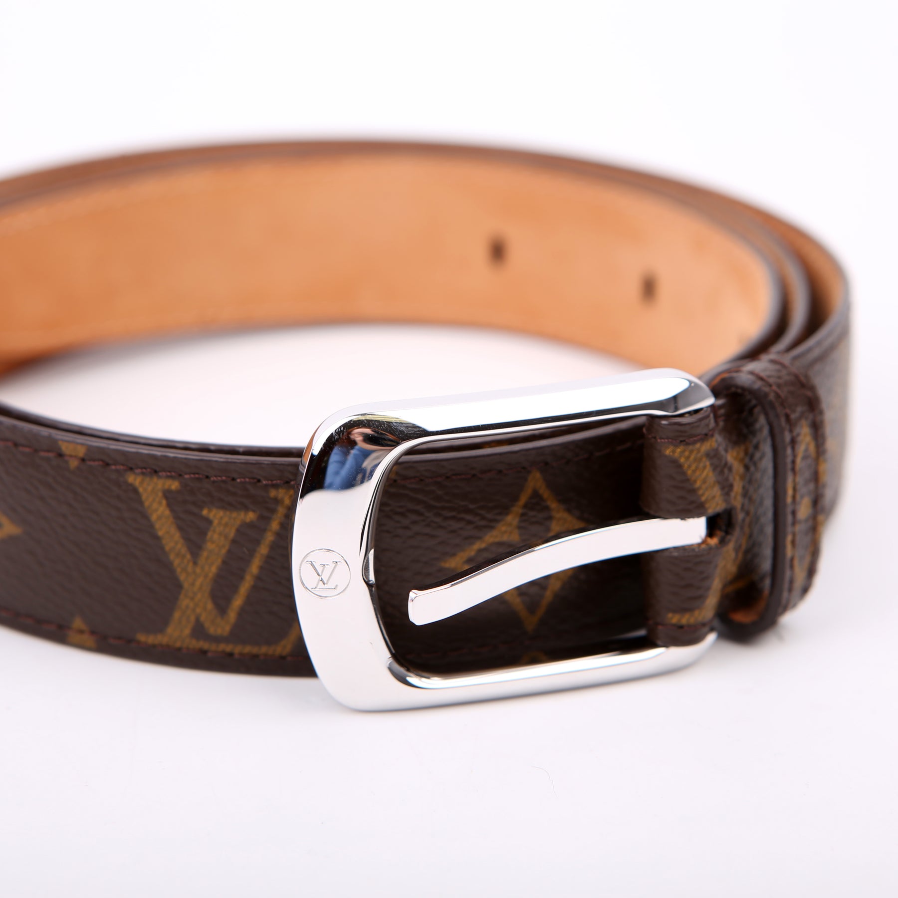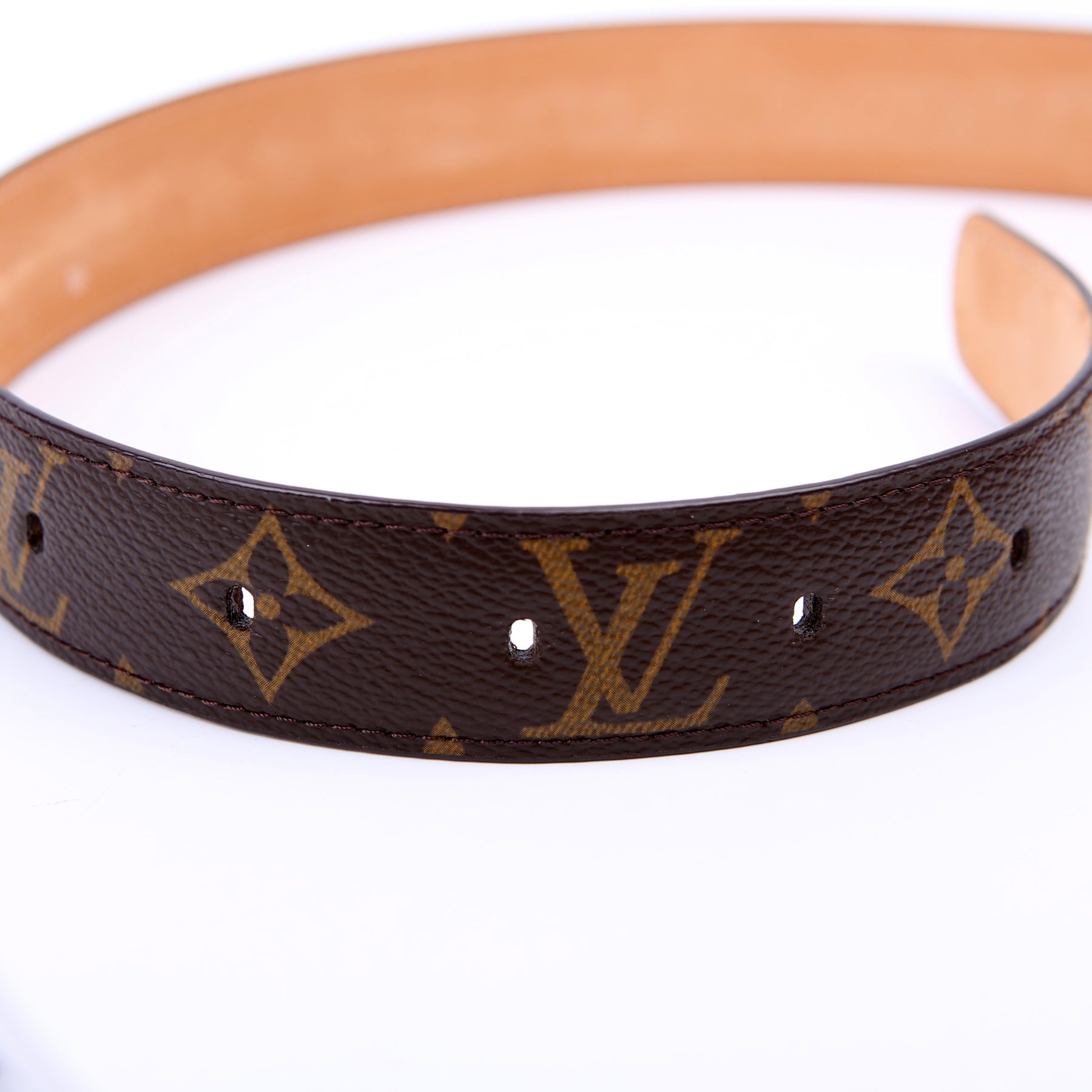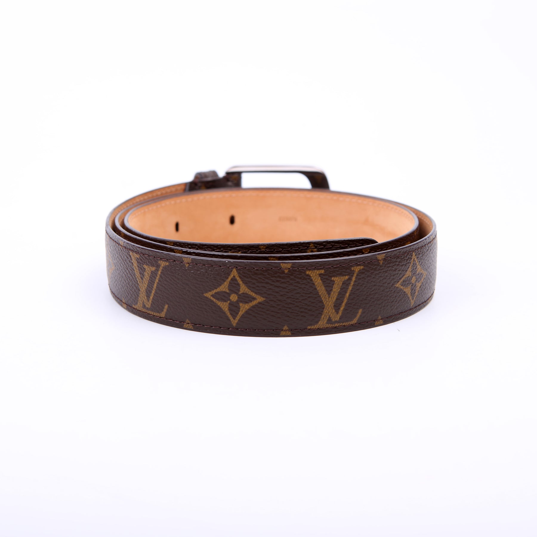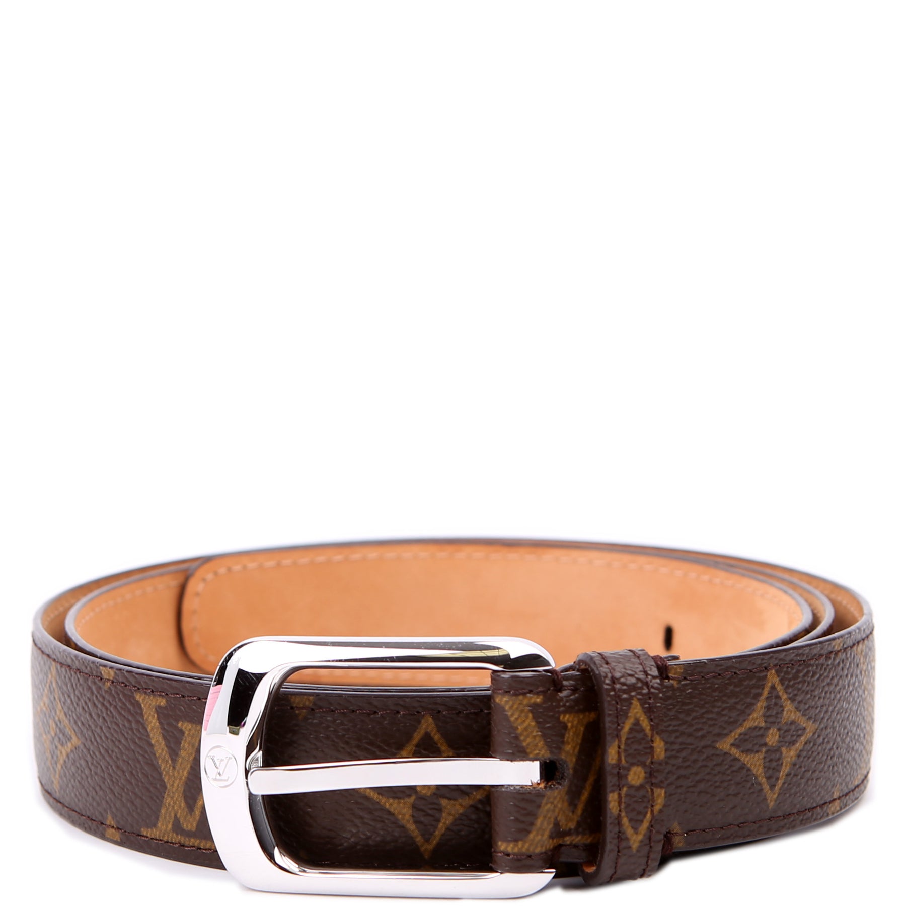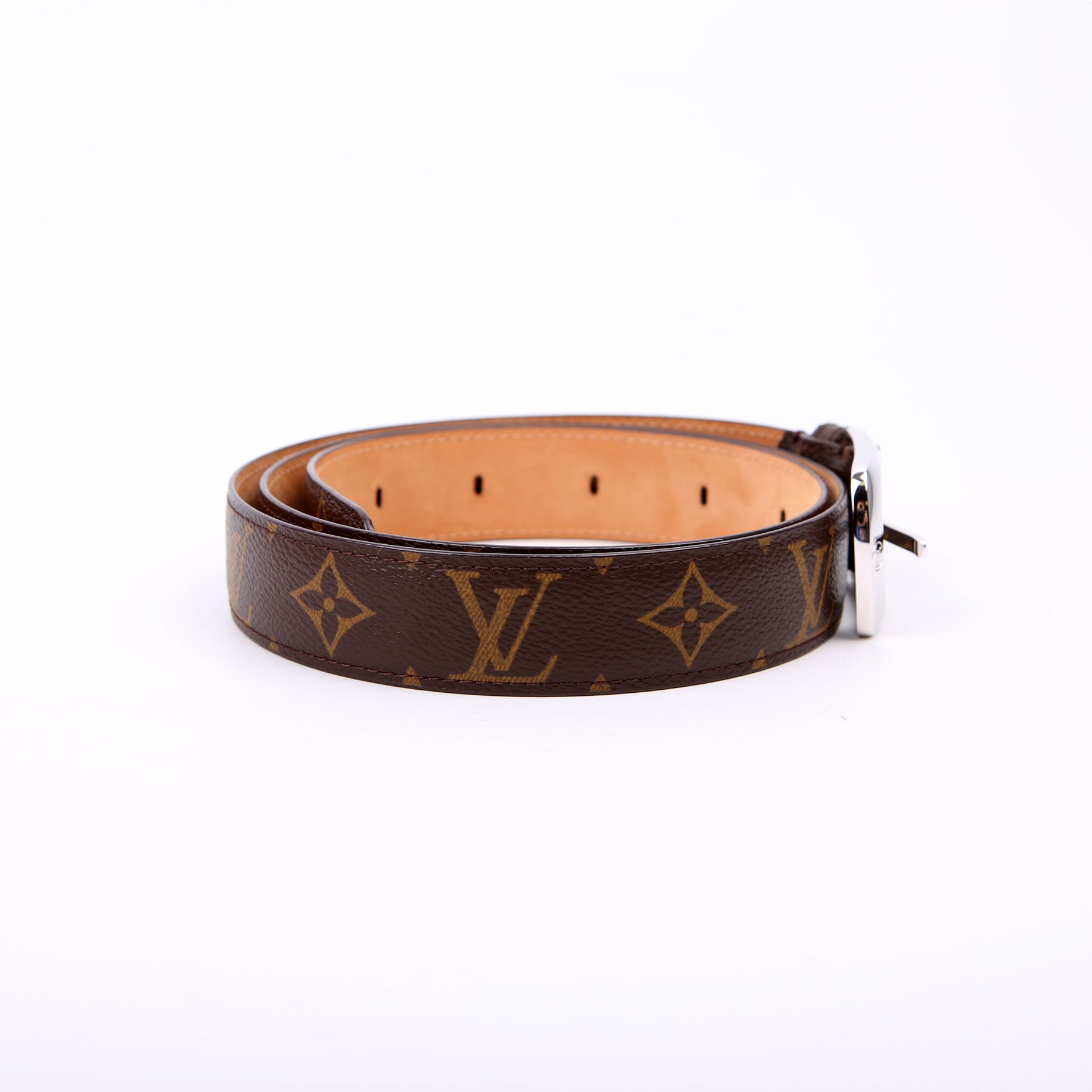 This pre-owned Louis Vuitton Ellipse Monogram Belt is guaranteed 100% authentic. The exterior is in the classic Louis Vuitton Monogram coated canvas.