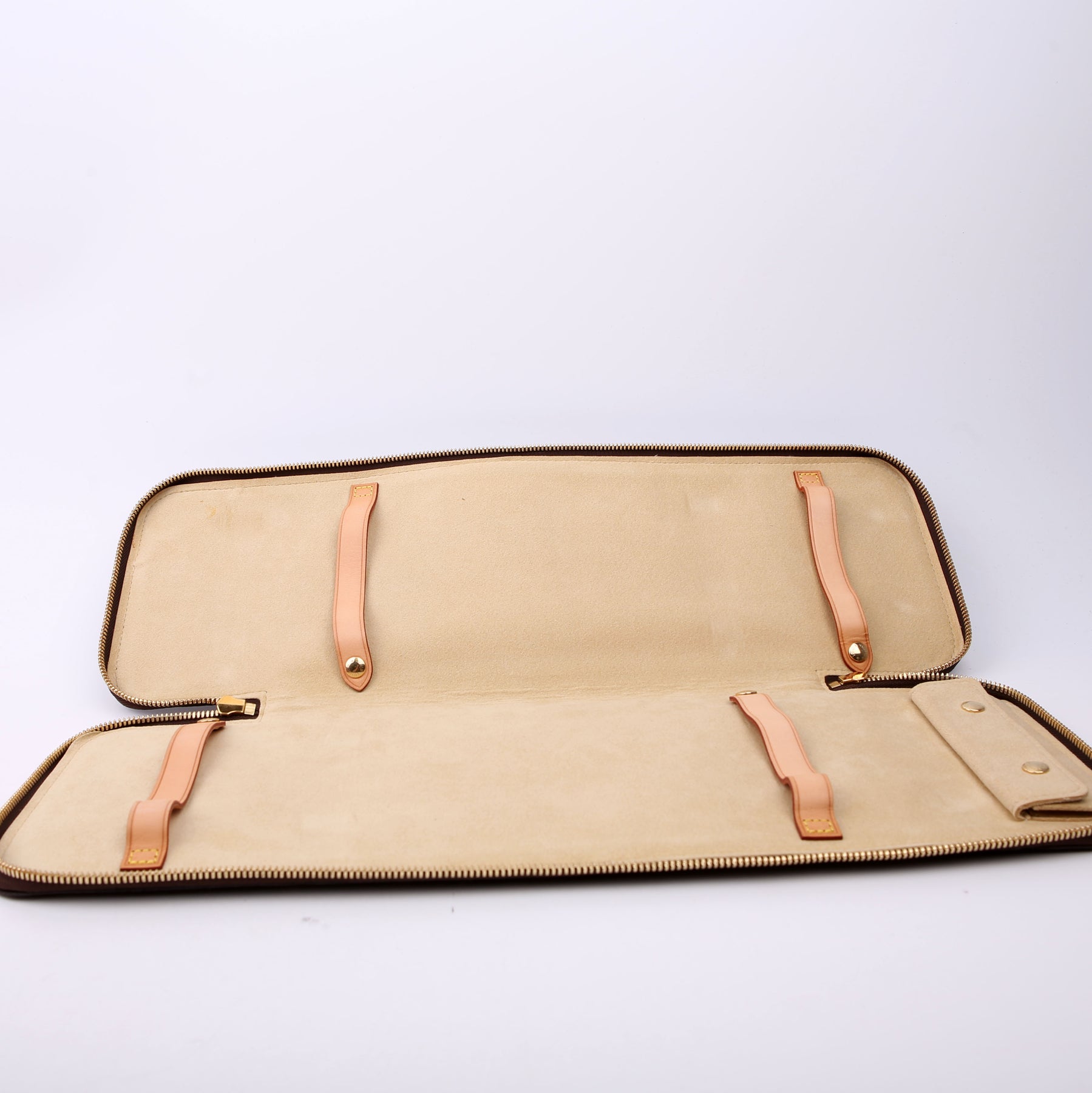 This pre-owned Louis Vuitton Etui 5 Cravates Tie Case is guaranteed 100% authentic. The exterior is in the classic Louis Vuitton Monogram coated canvas.