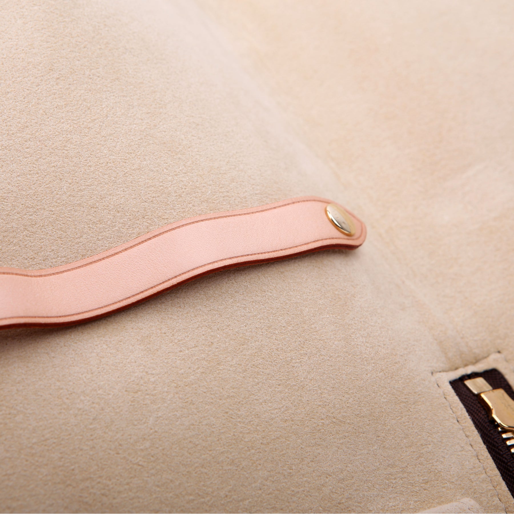 Interior: The interior shows light wear throughout, and features four clasp closure straps and one clasp closure pocket.