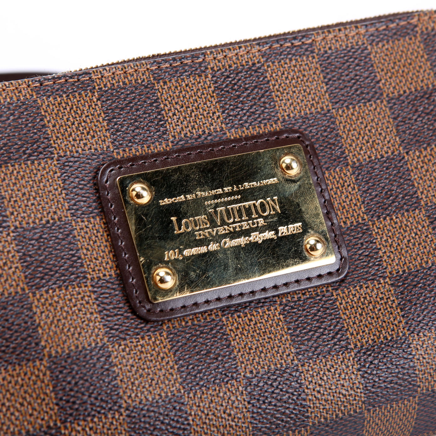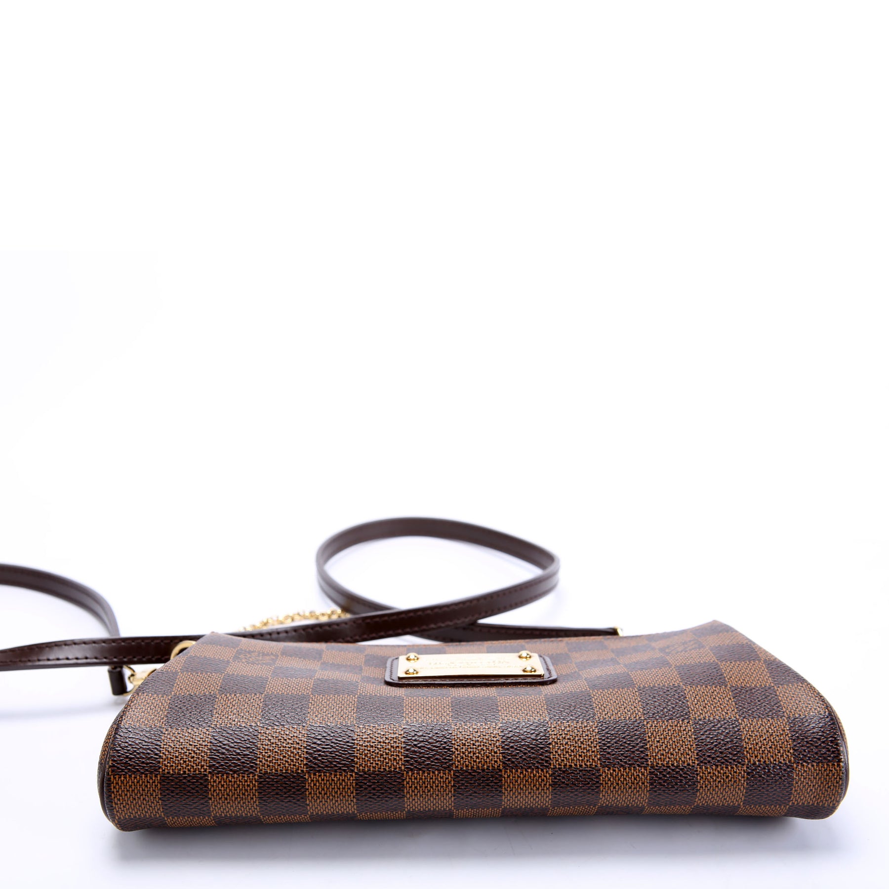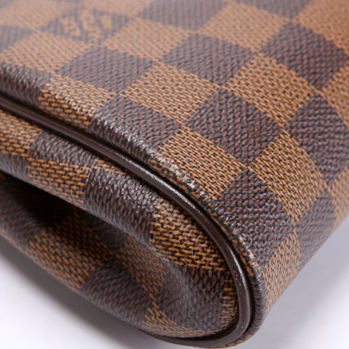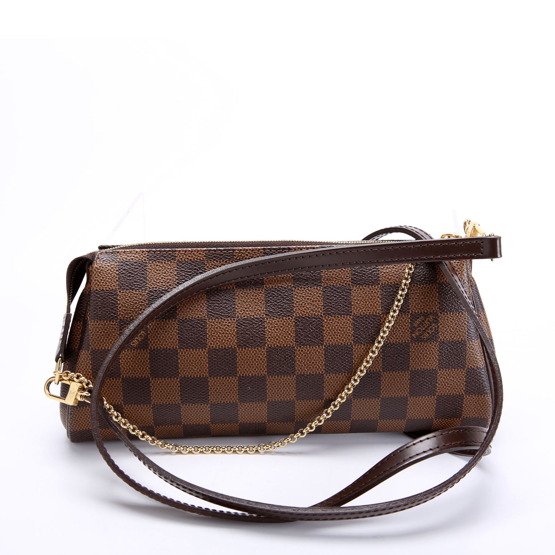 This pre-owned Louis Vuitton Eva Clutch is guaranteed 100% authentic. The exterior is in the classic Louis Vuitton coated canvas.