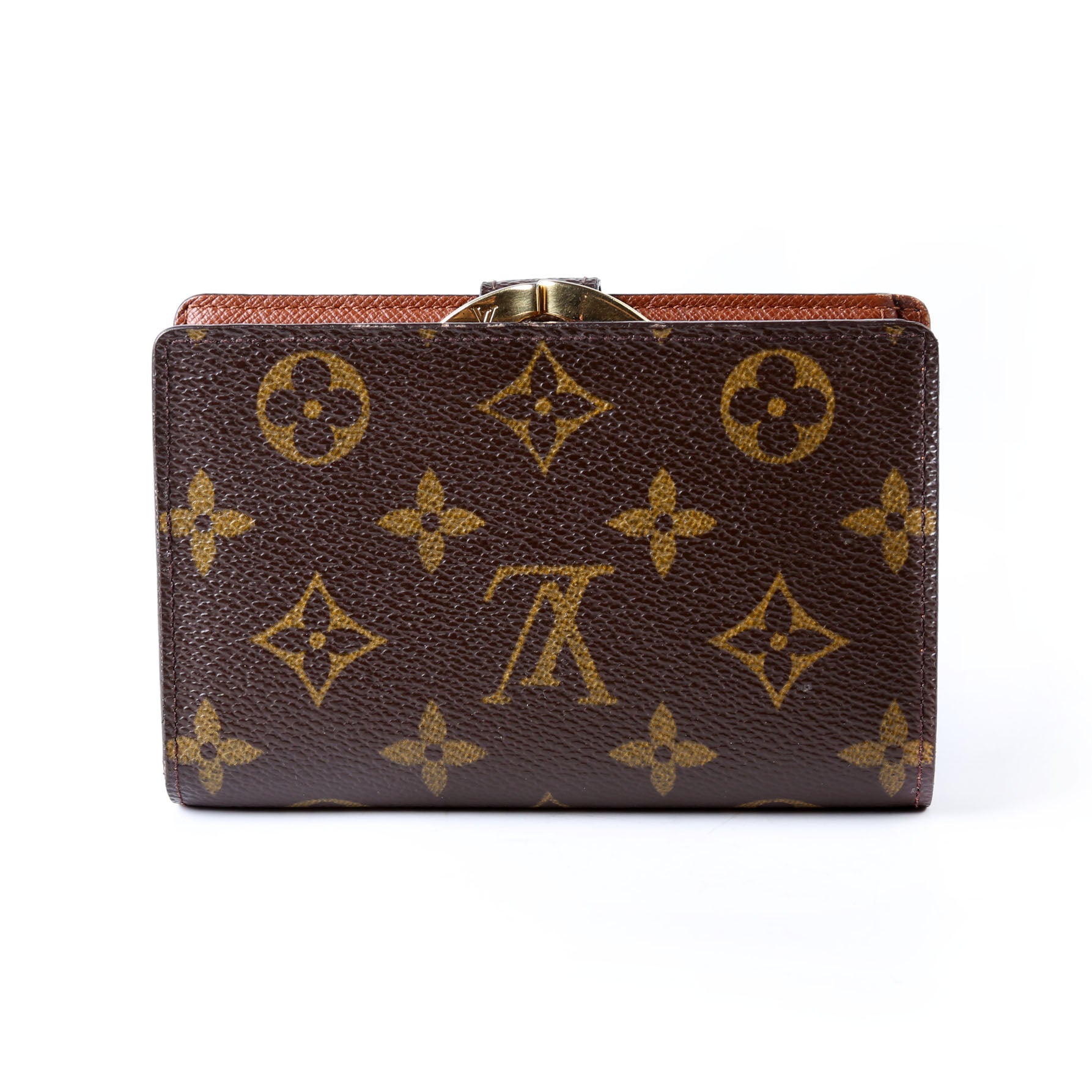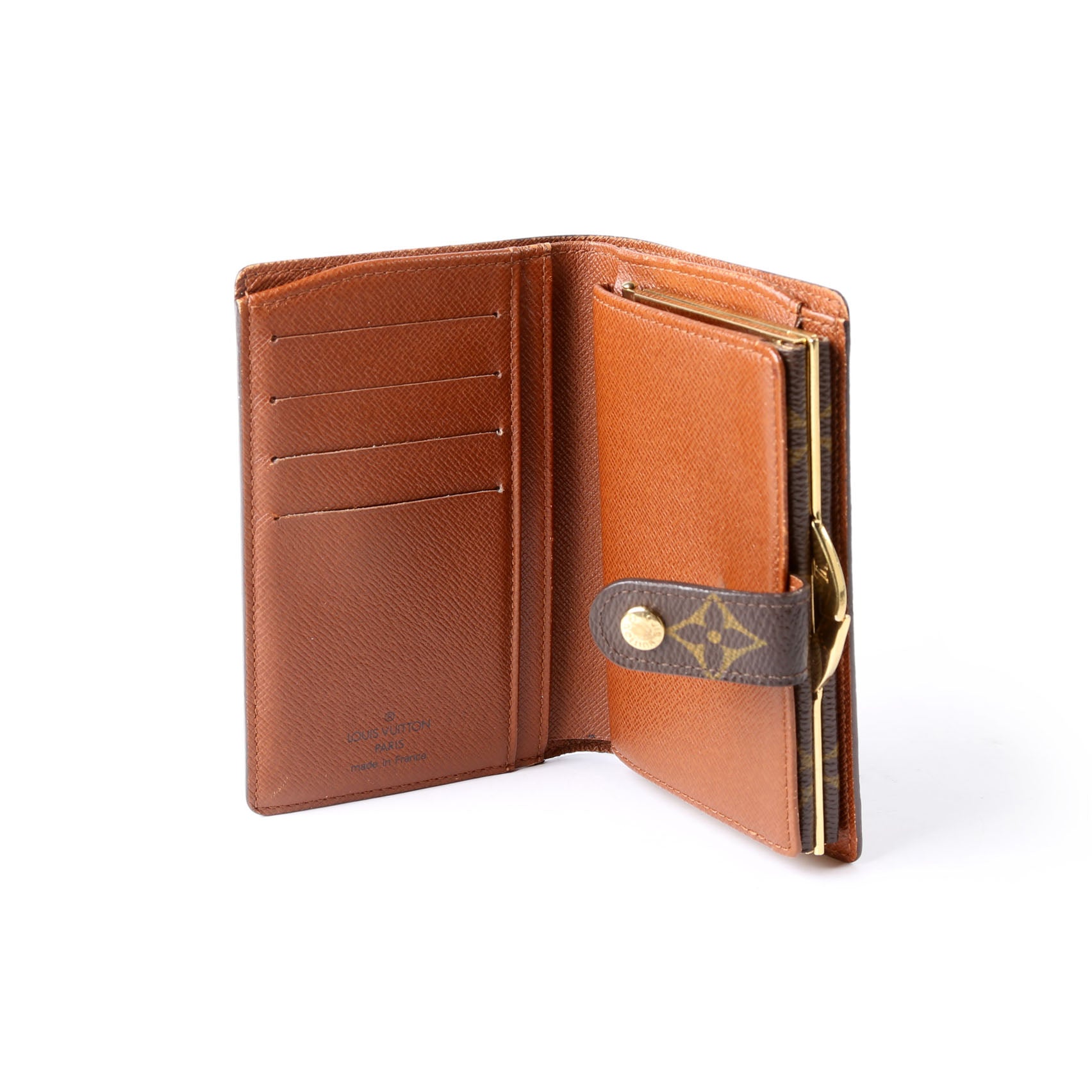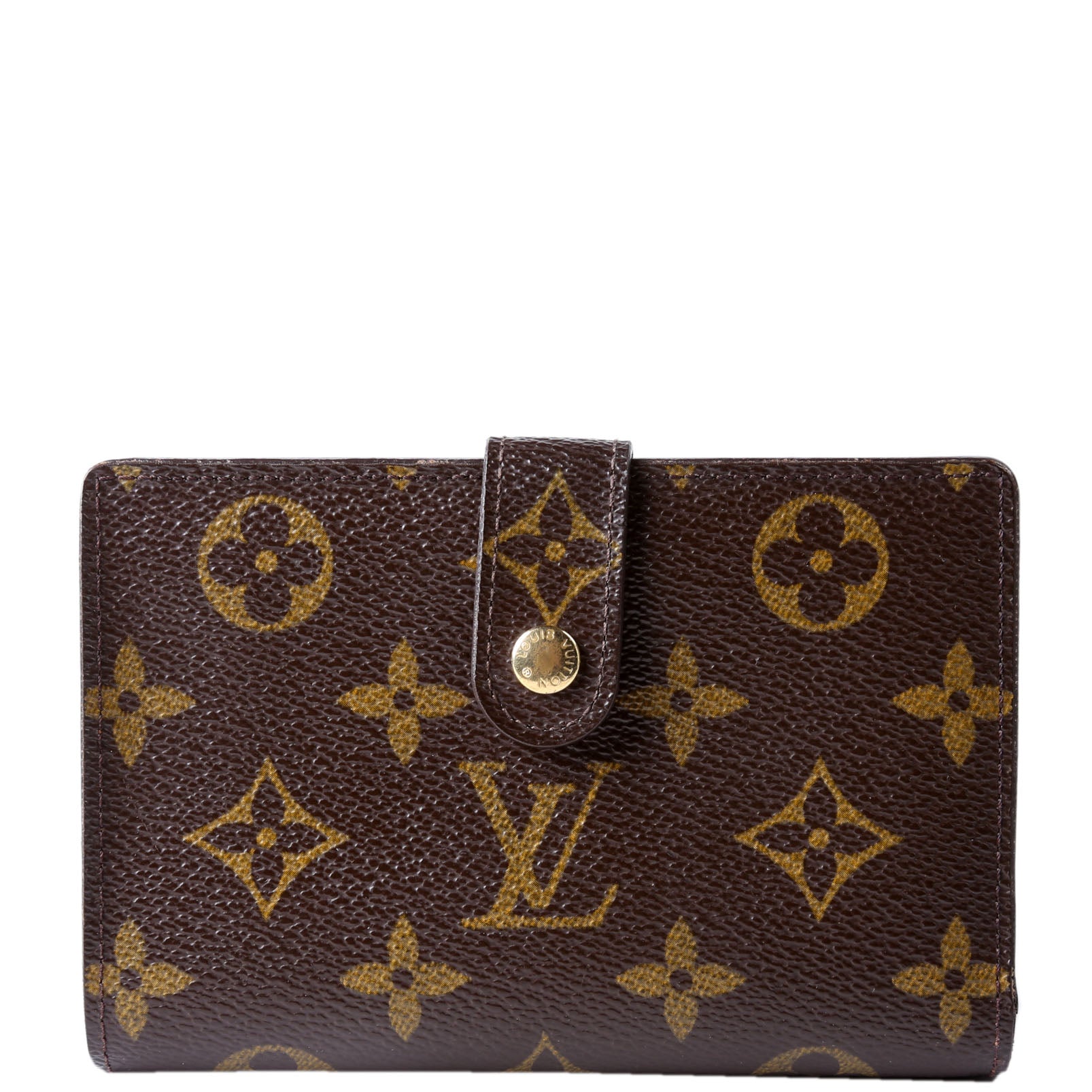 This pre-owned Louis Vuitton French Purse Wallet is guaranteed 100% authentic. The exterior is in the classic Louis Vuitton Monogram coated canvas.