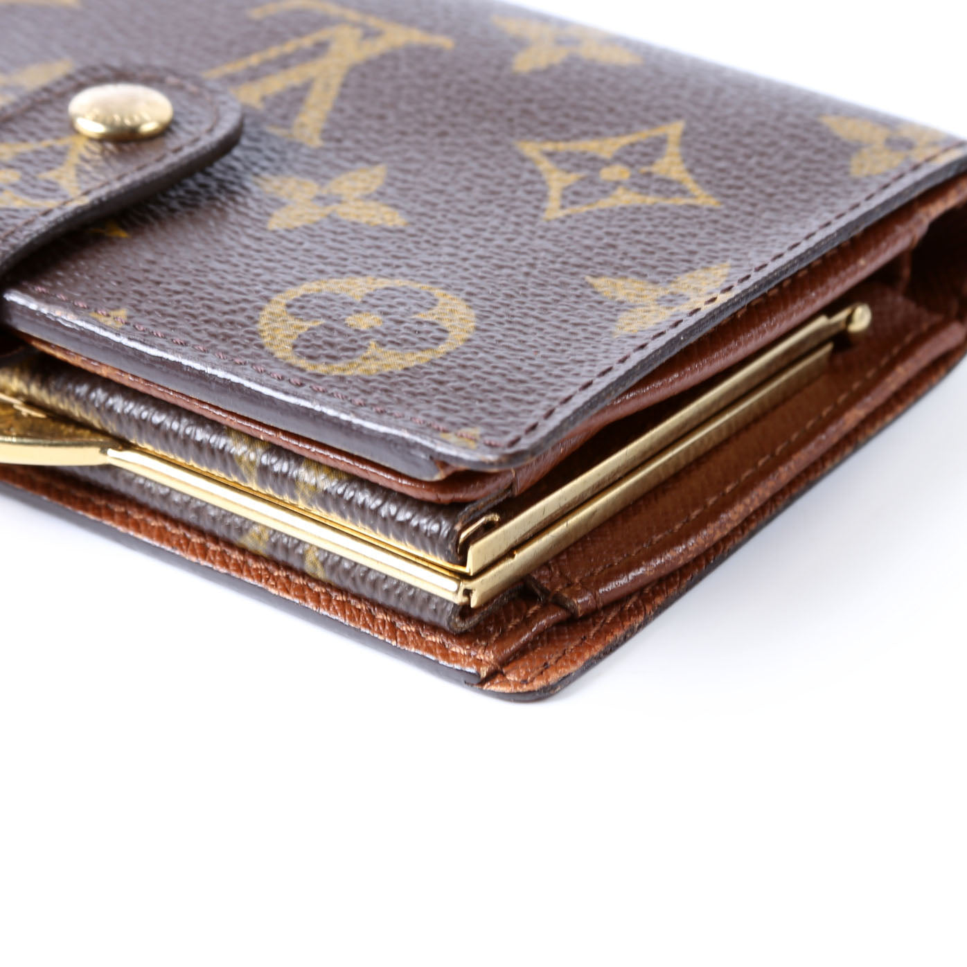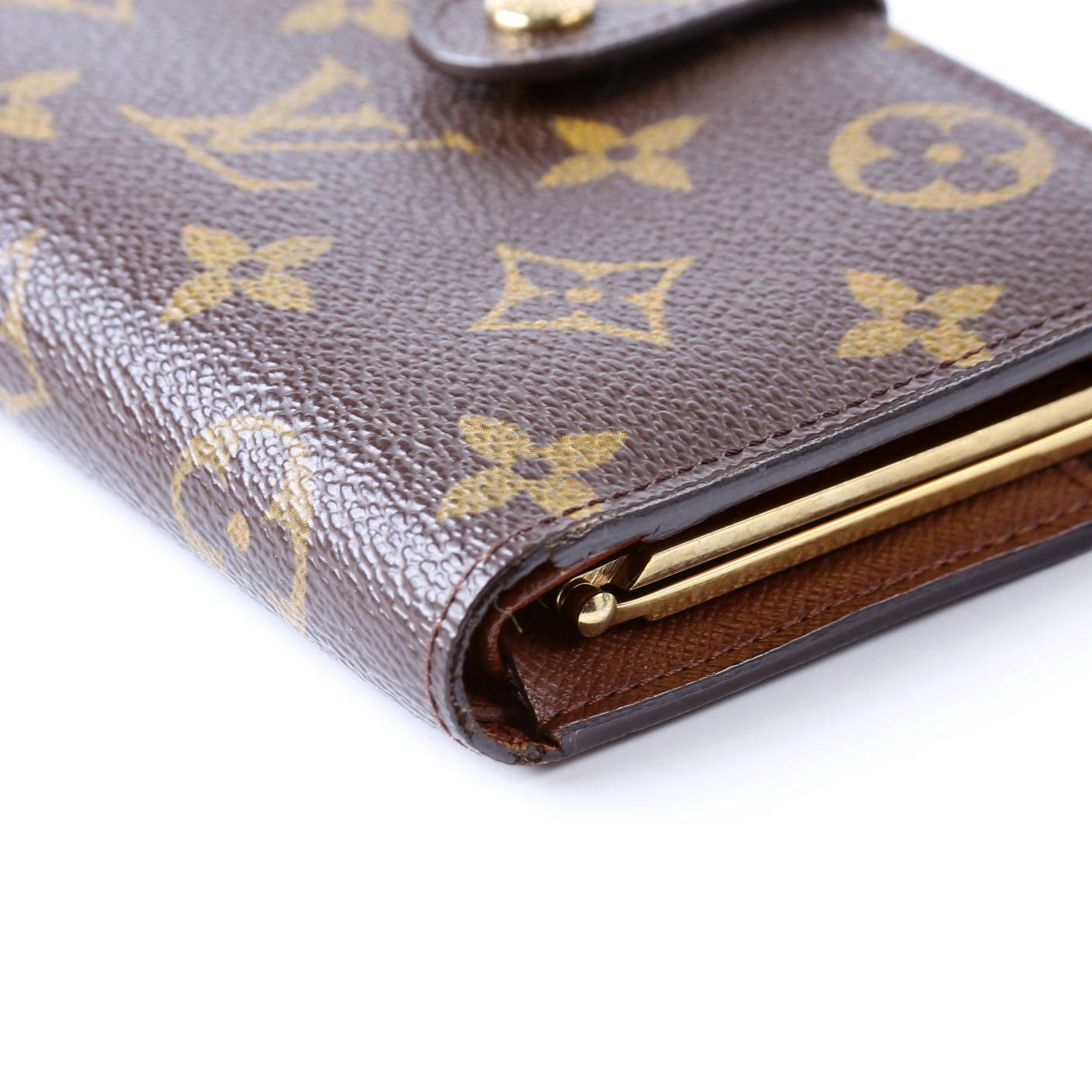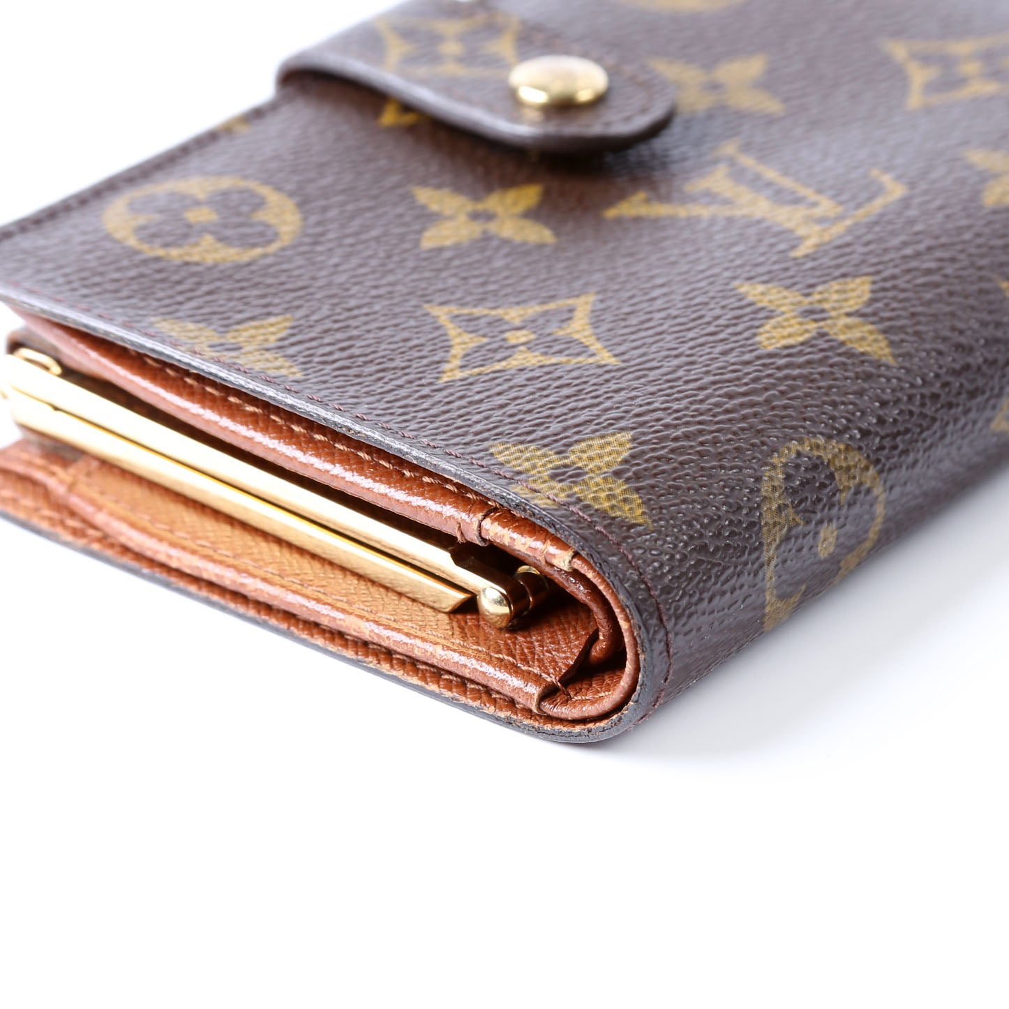 This pre-owned Louis Vuitton French Purse Wallet is guaranteed 100% authentic. The exterior is in the classic Louis Vuitton Monogram coated canvas.