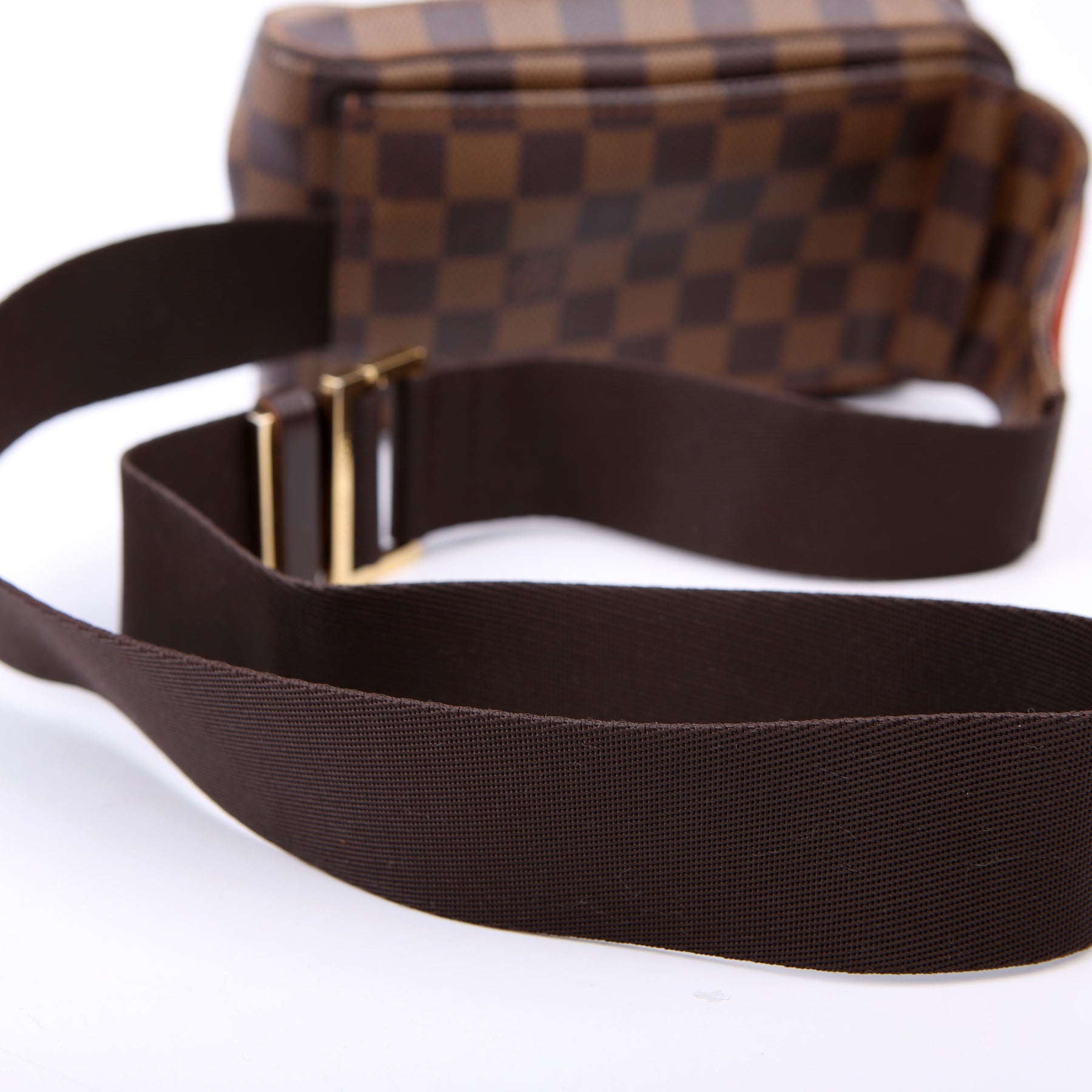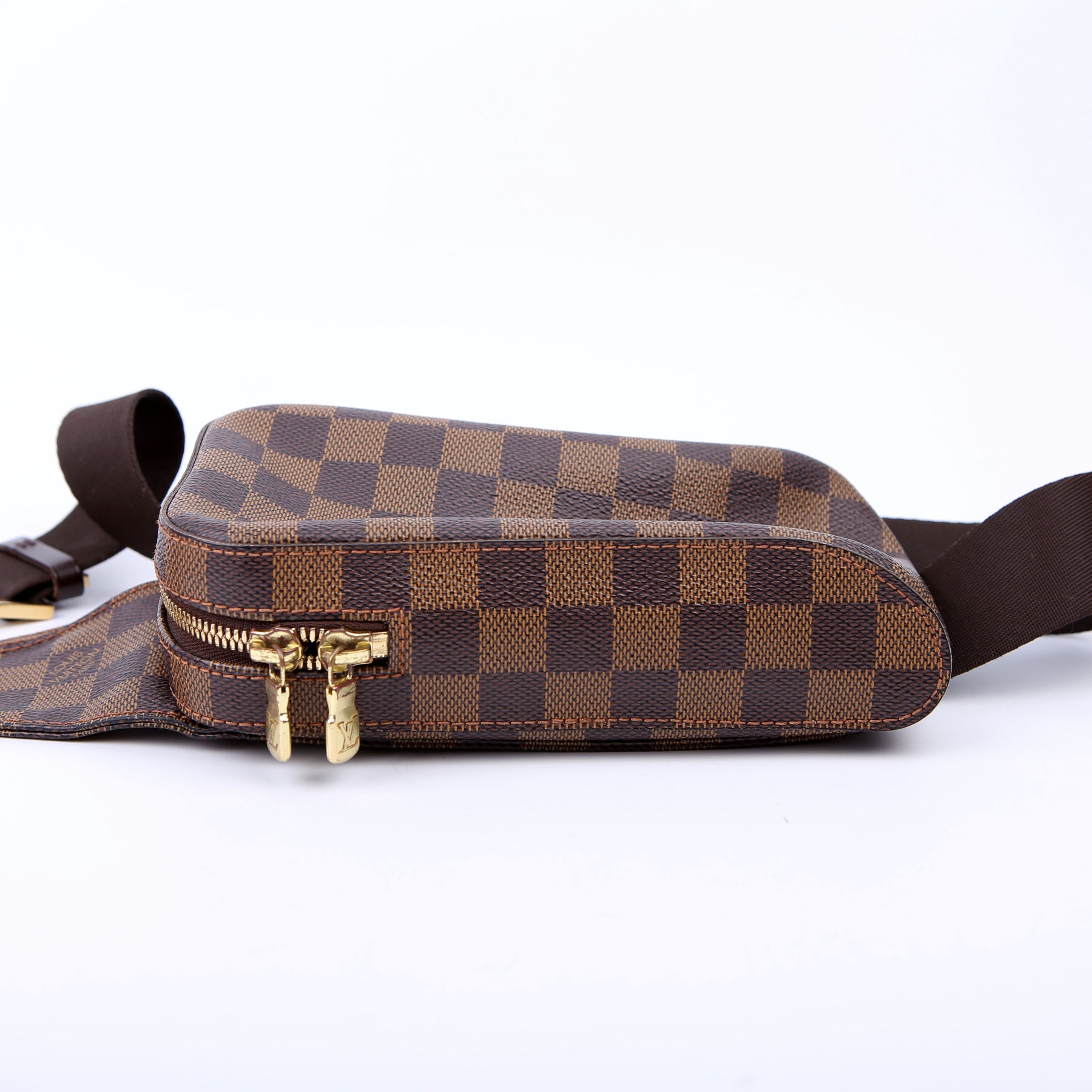 This pre-owned Louis Vuitton Geronimos is guaranteed 100% authentic. The exterior is in the classic Louis Vuitton Damier Ebene coated canvas.