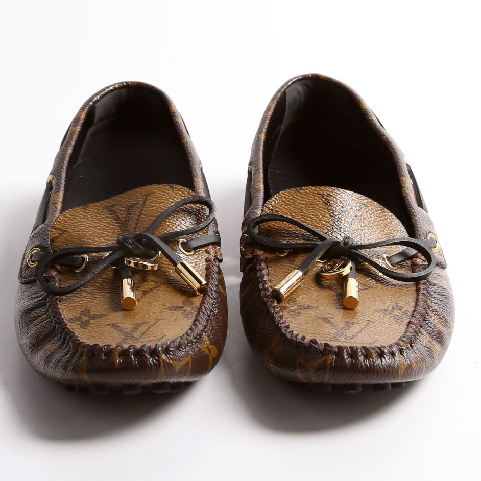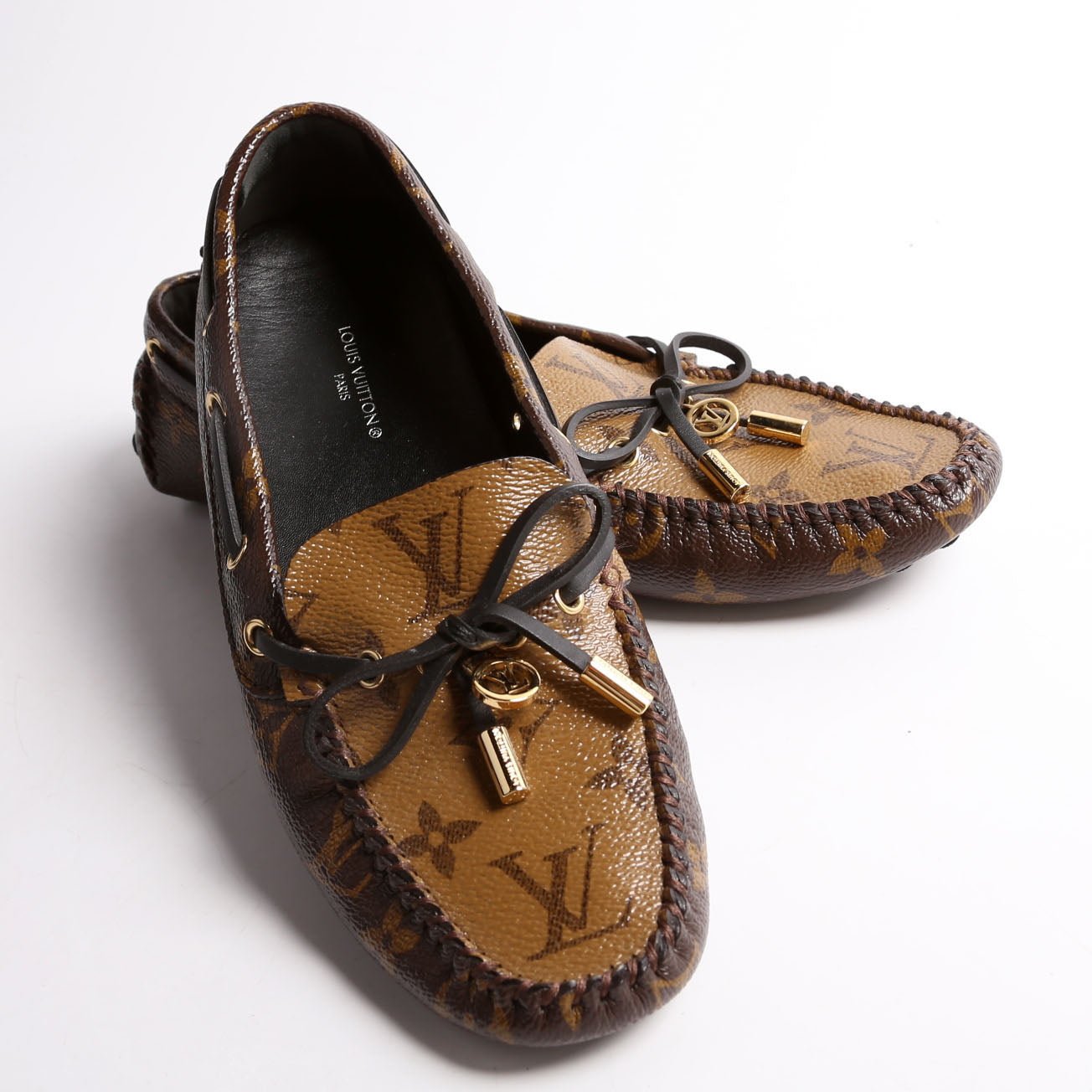 These pre-owned Louis Vuitton Gloria Loafer Reverse Monogram are guaranteed 100% authentic.