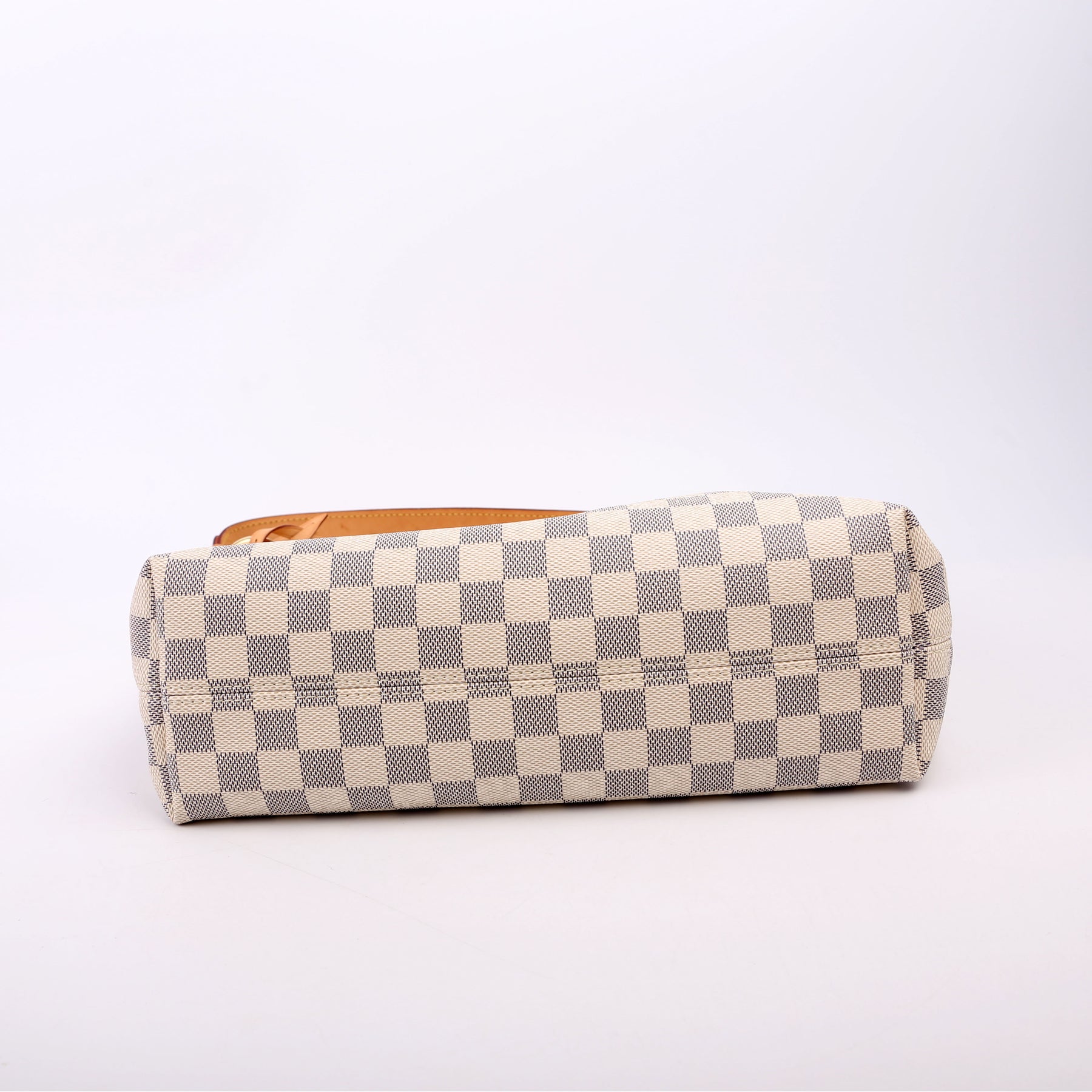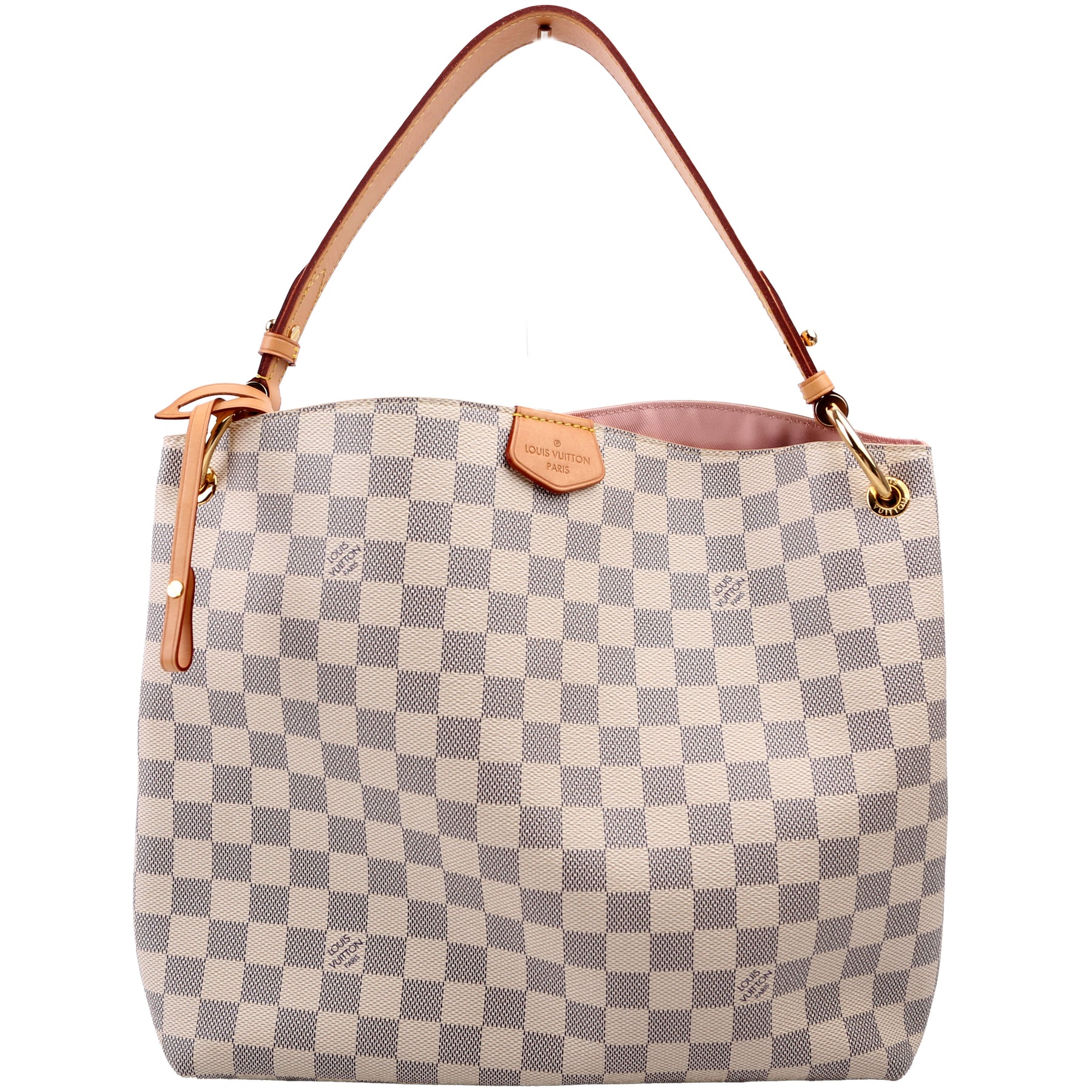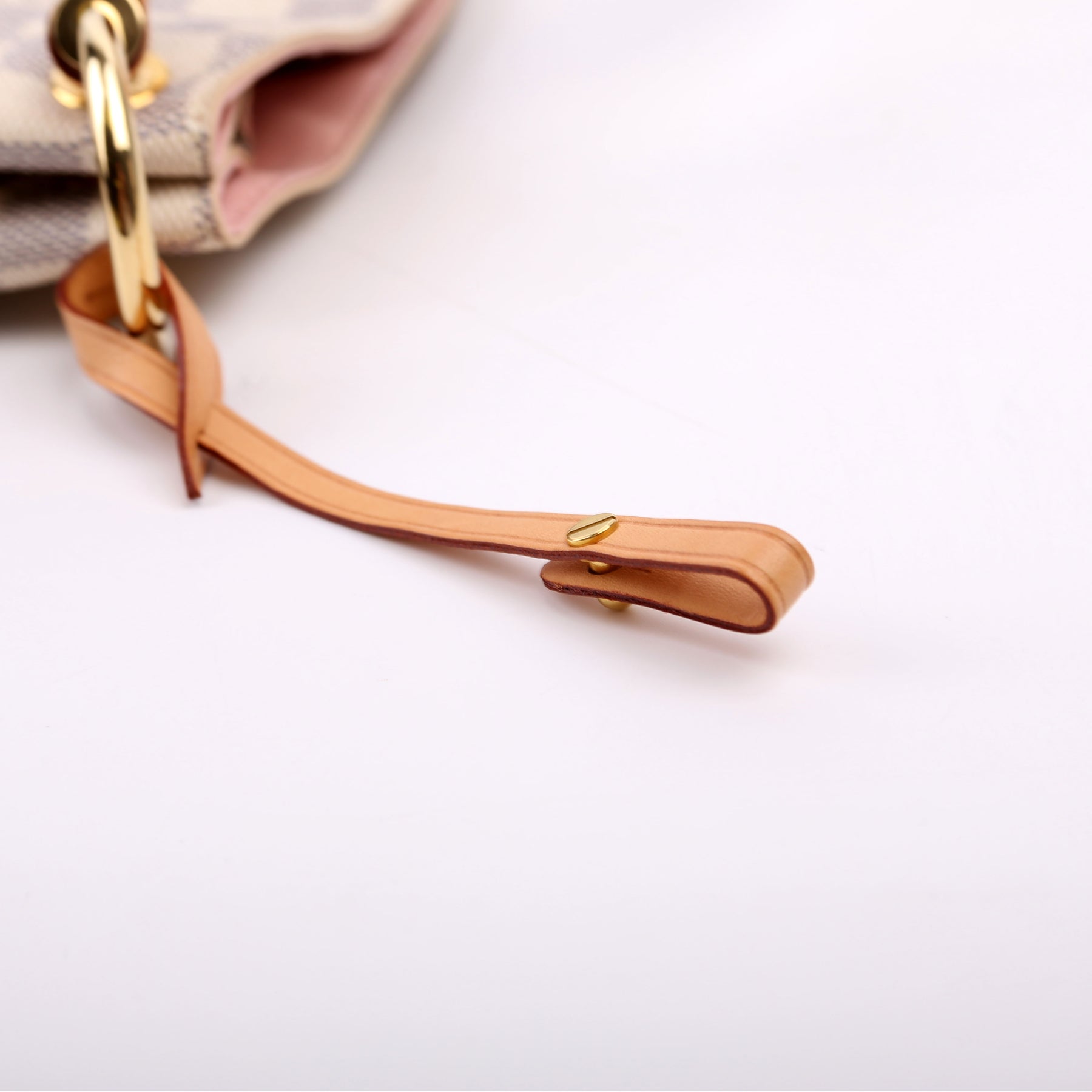 This pre-owned Louis Vuitton Graceful PM is guaranteed 100% authentic. The exterior is in the classic Louis Vuitton Damier Azur coated canvas.