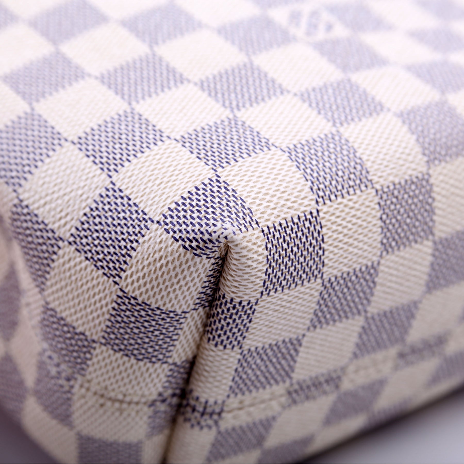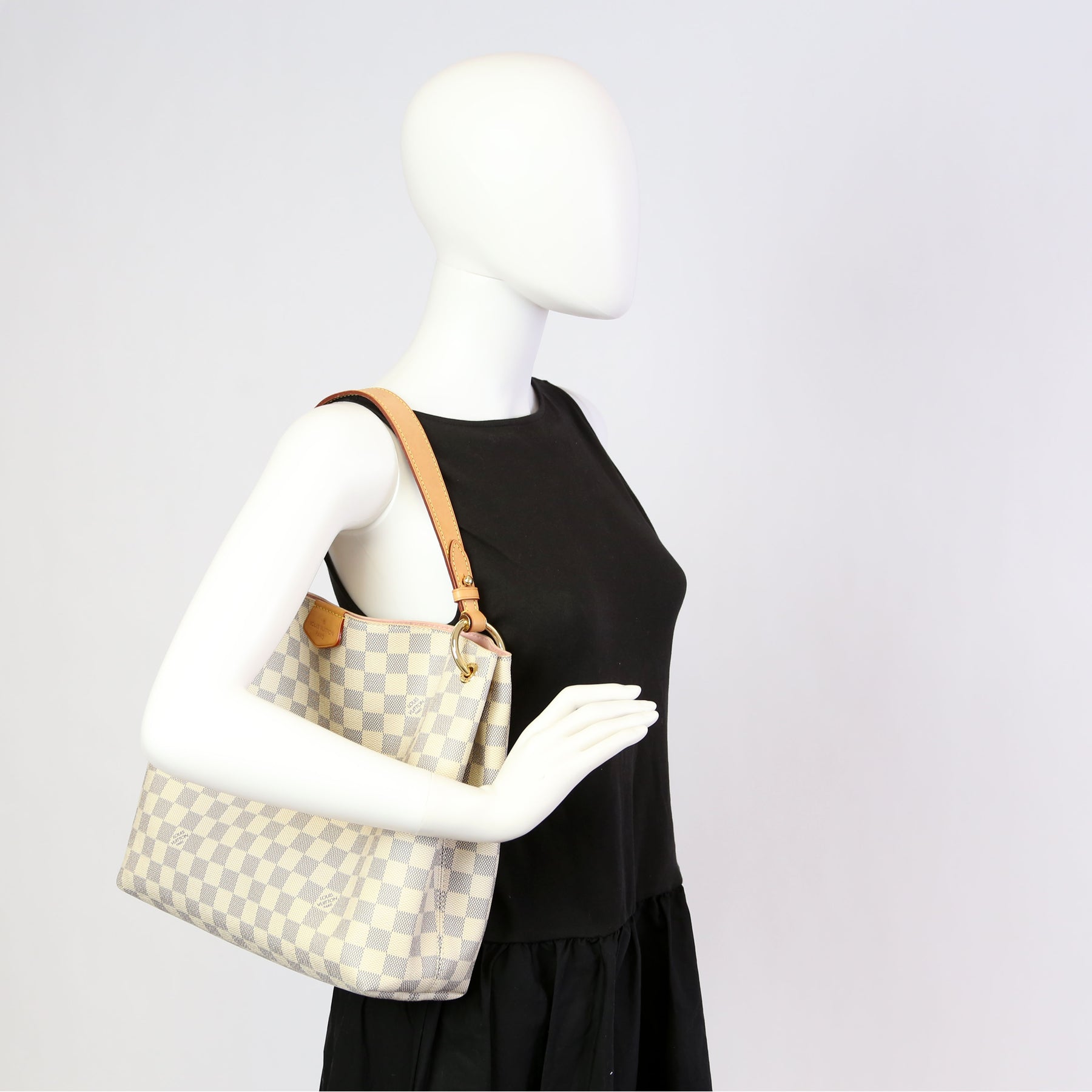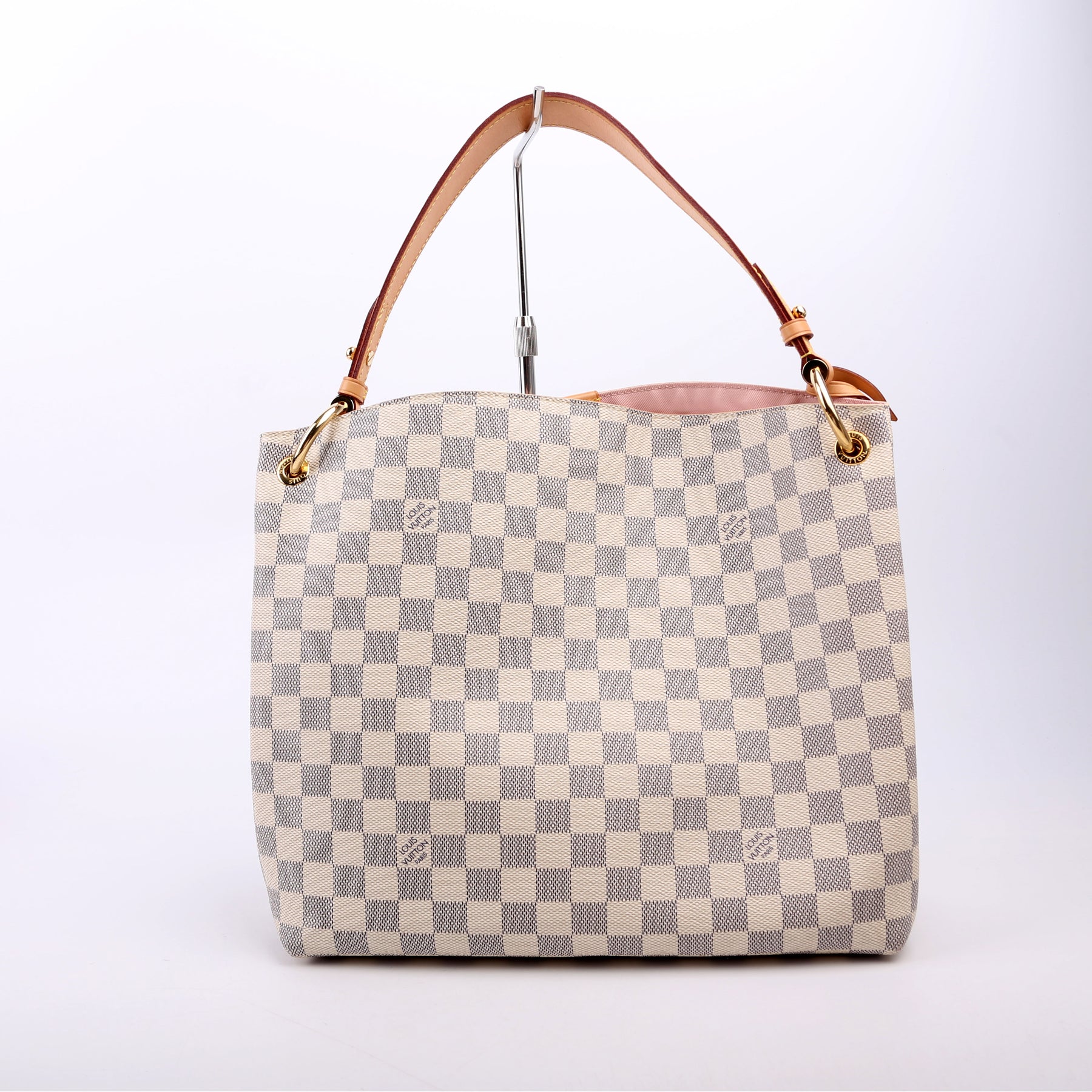 This pre-owned Louis Vuitton Graceful PM is guaranteed 100% authentic. The exterior is in the classic Louis Vuitton Damier Azur coated canvas.