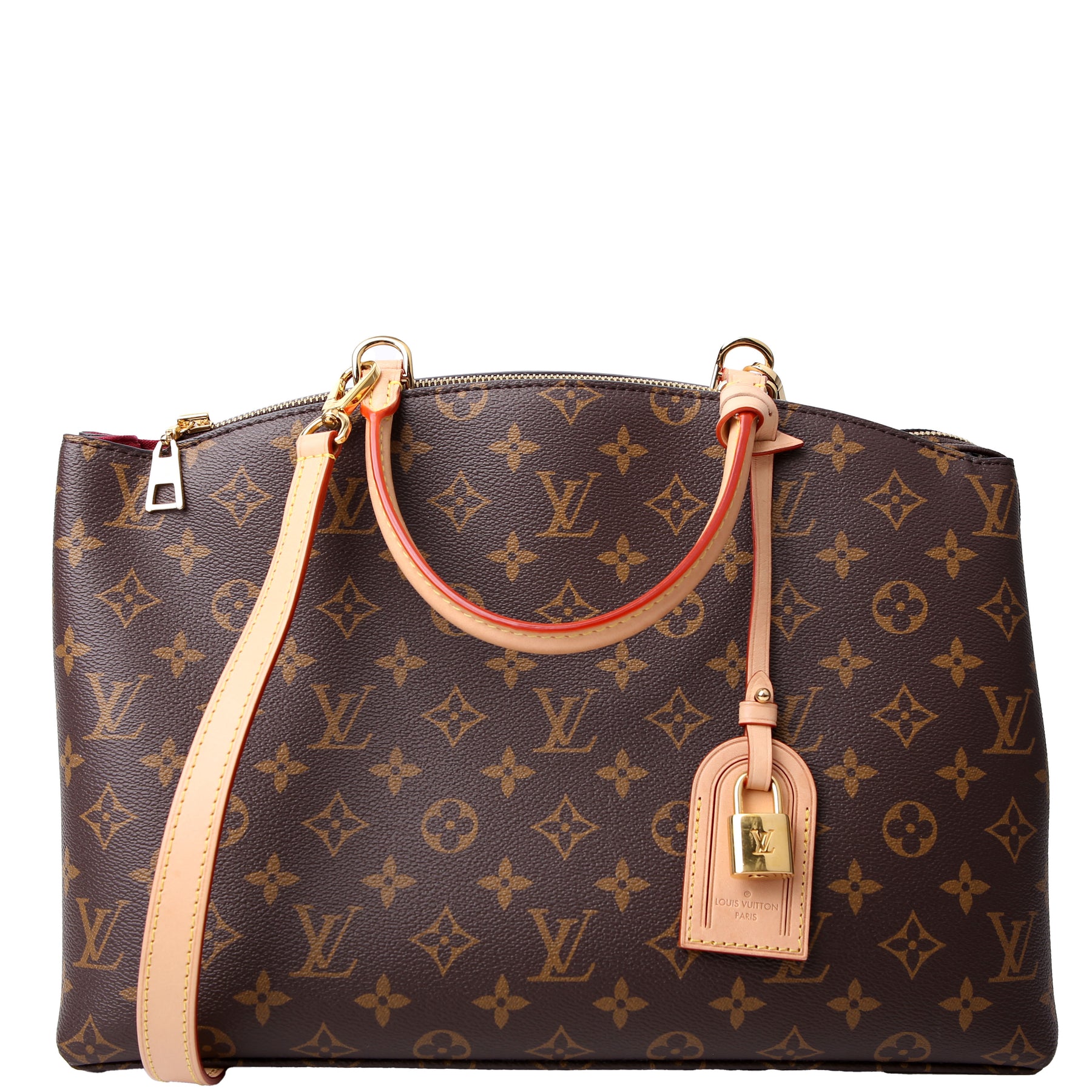 This pre-owned Louis Vuitton Grand Palais MM is guaranteed 100% authentic. The exterior is in the classic Louis Vuitton Monogram coated canvas.
