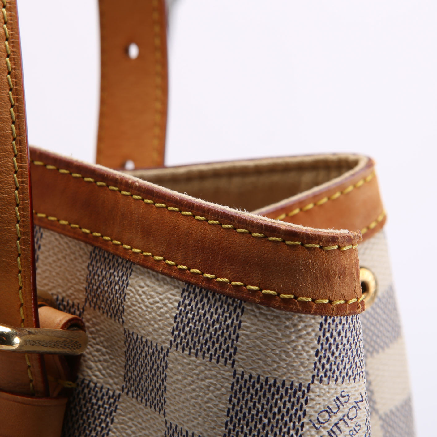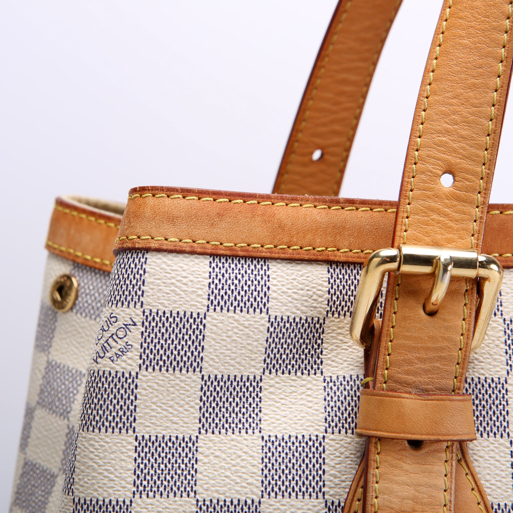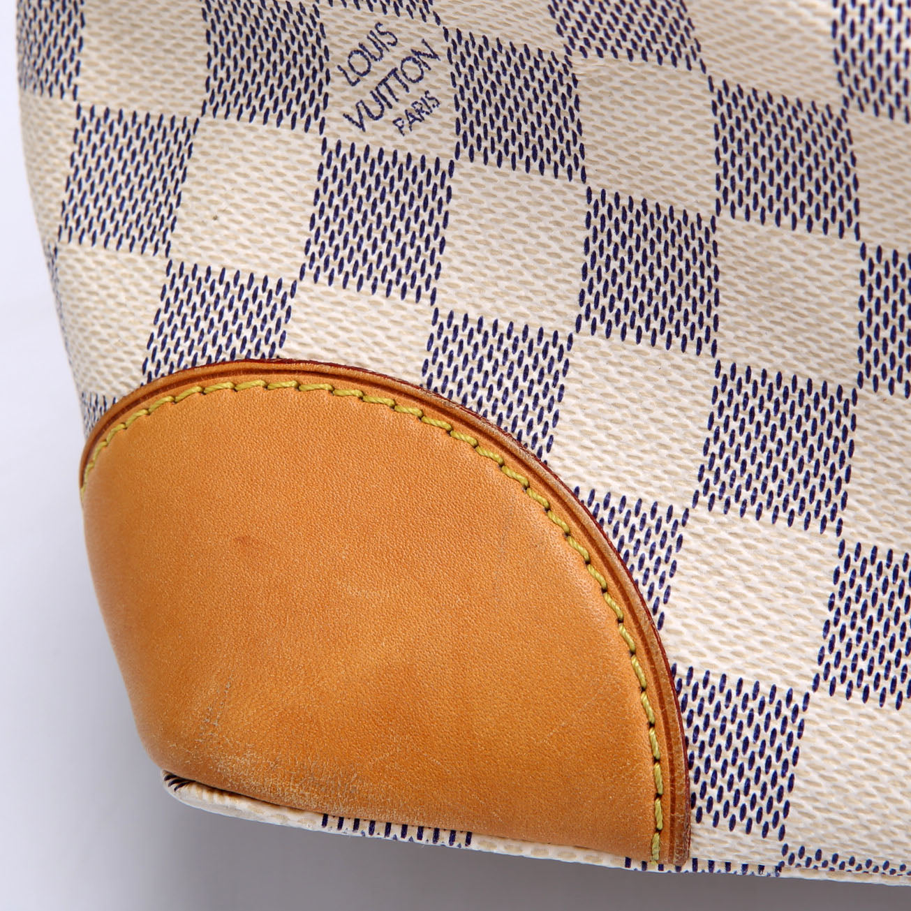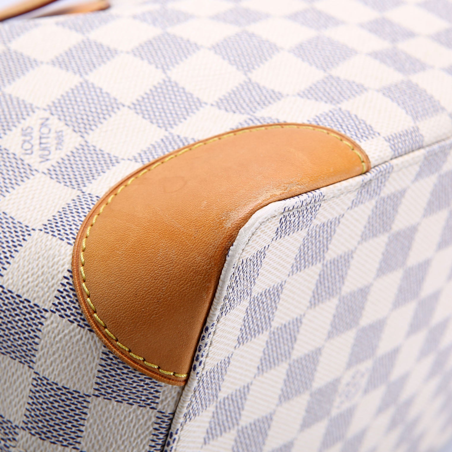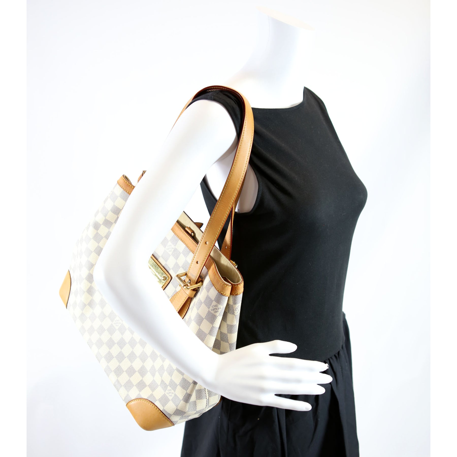 This pre-owned Louis Vuitton Hampstead MM Azur is guaranteed 100% authentic. The exterior is in the classic Louis Vuitton Azur coated canvas.