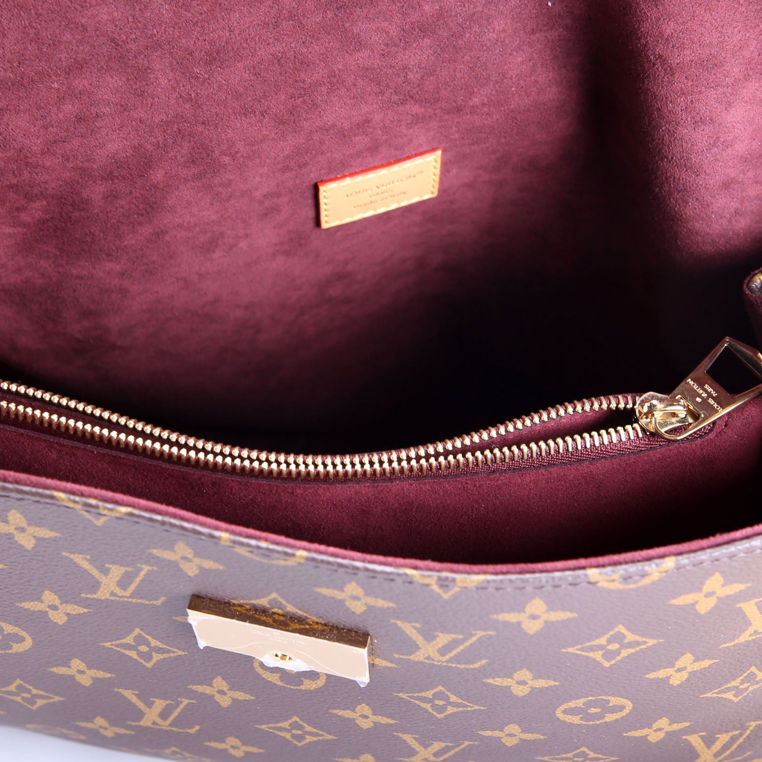 Interior: The interior suede is free from stains or rips. The interior features three open sections, an one zip closure pocket.