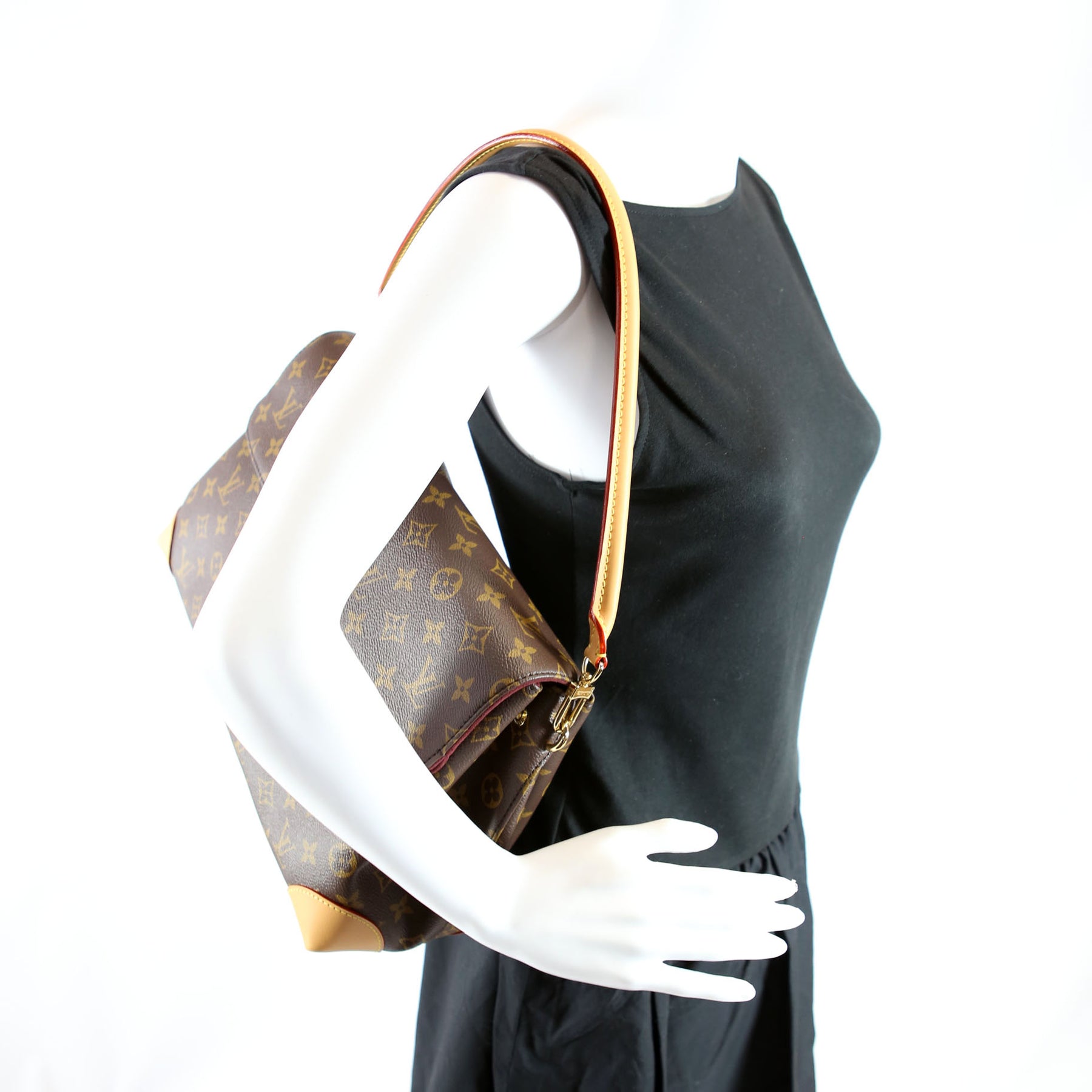This pre-owned Louis Vuitton Hide Away MM is guaranteed 100% authentic. The exterior is in the classic Louis Vuitton Coated Canvas Monogram
