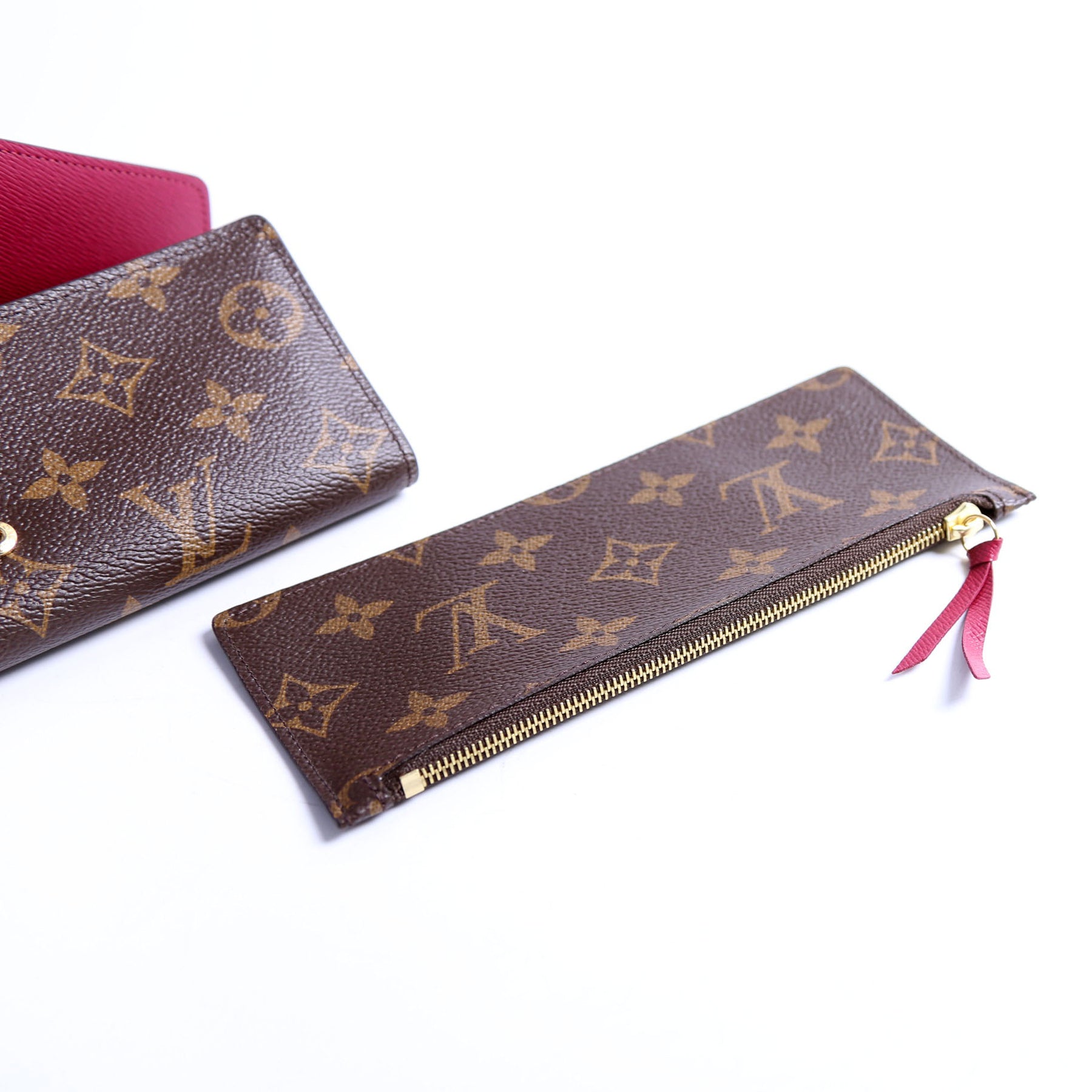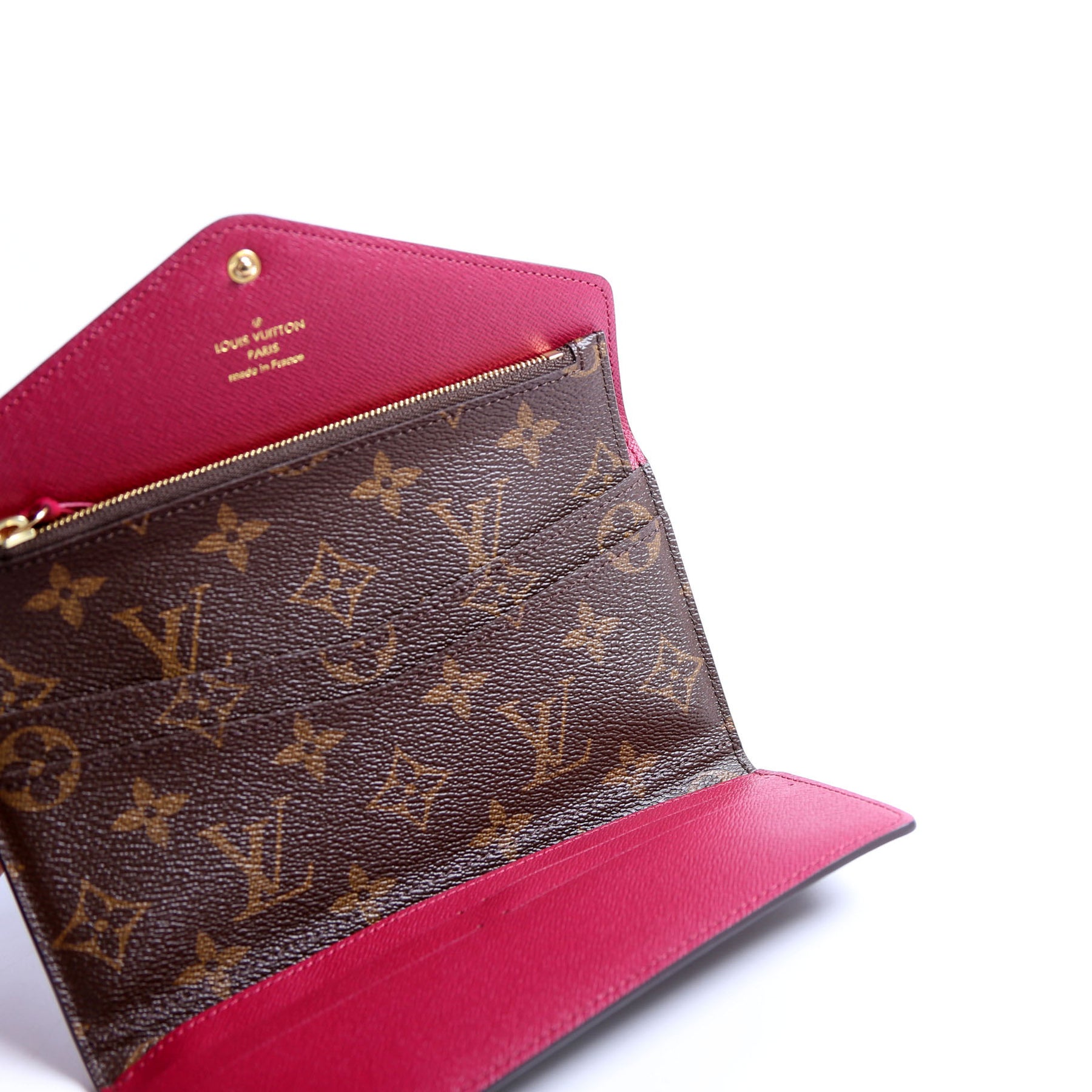 This pre-owned Louis Vuitton Josephine Wallet is guaranteed 100% authentic. The exterior is in the classic Louis Vuitton Monogram coated canvas.