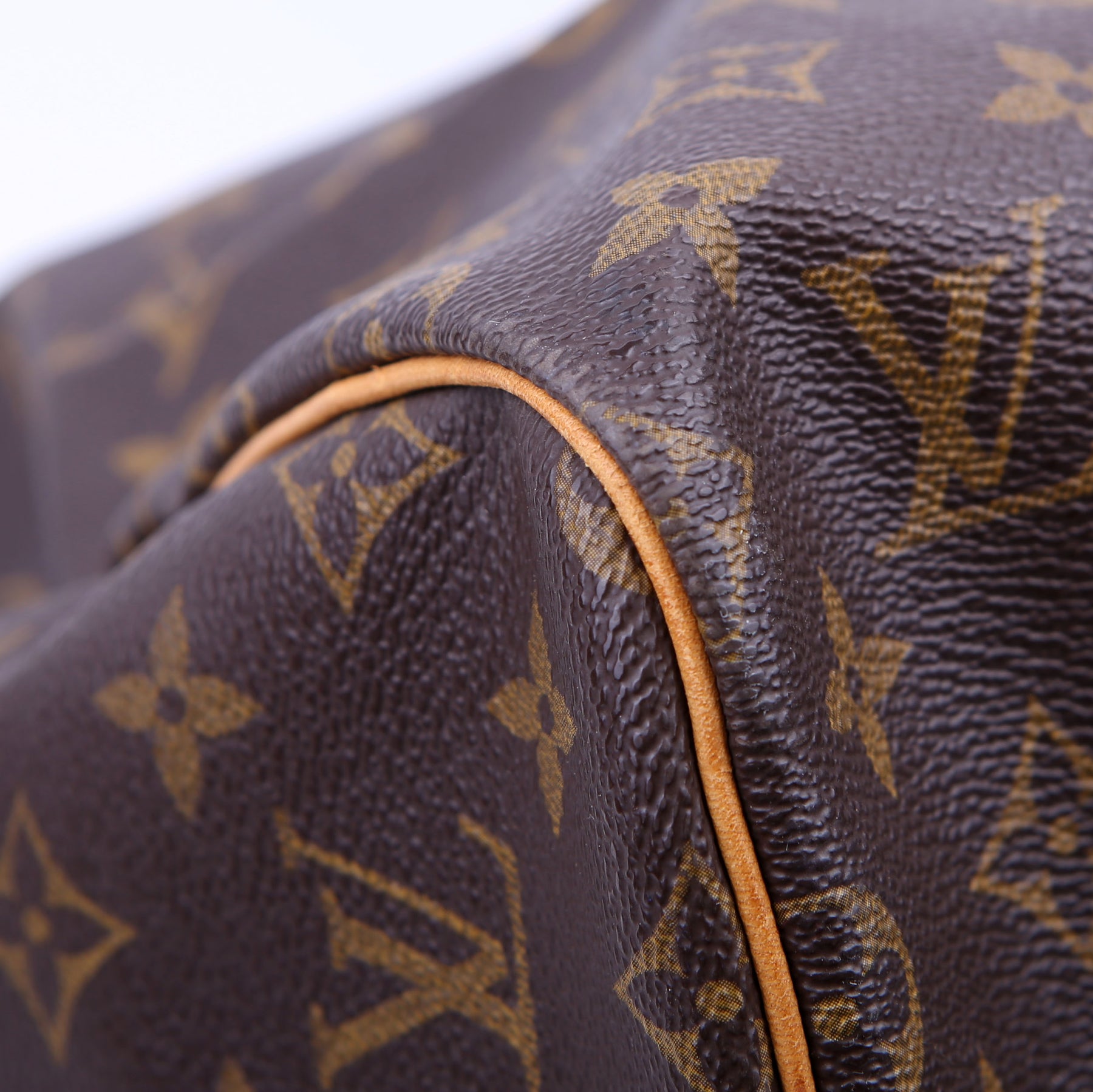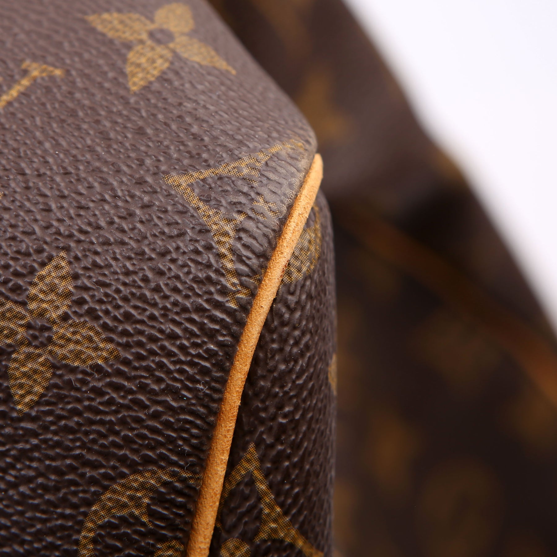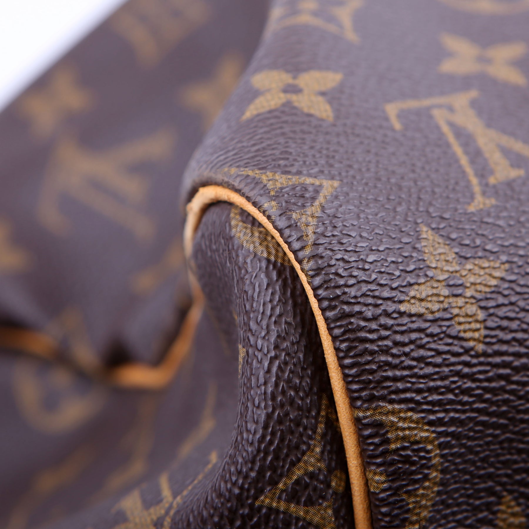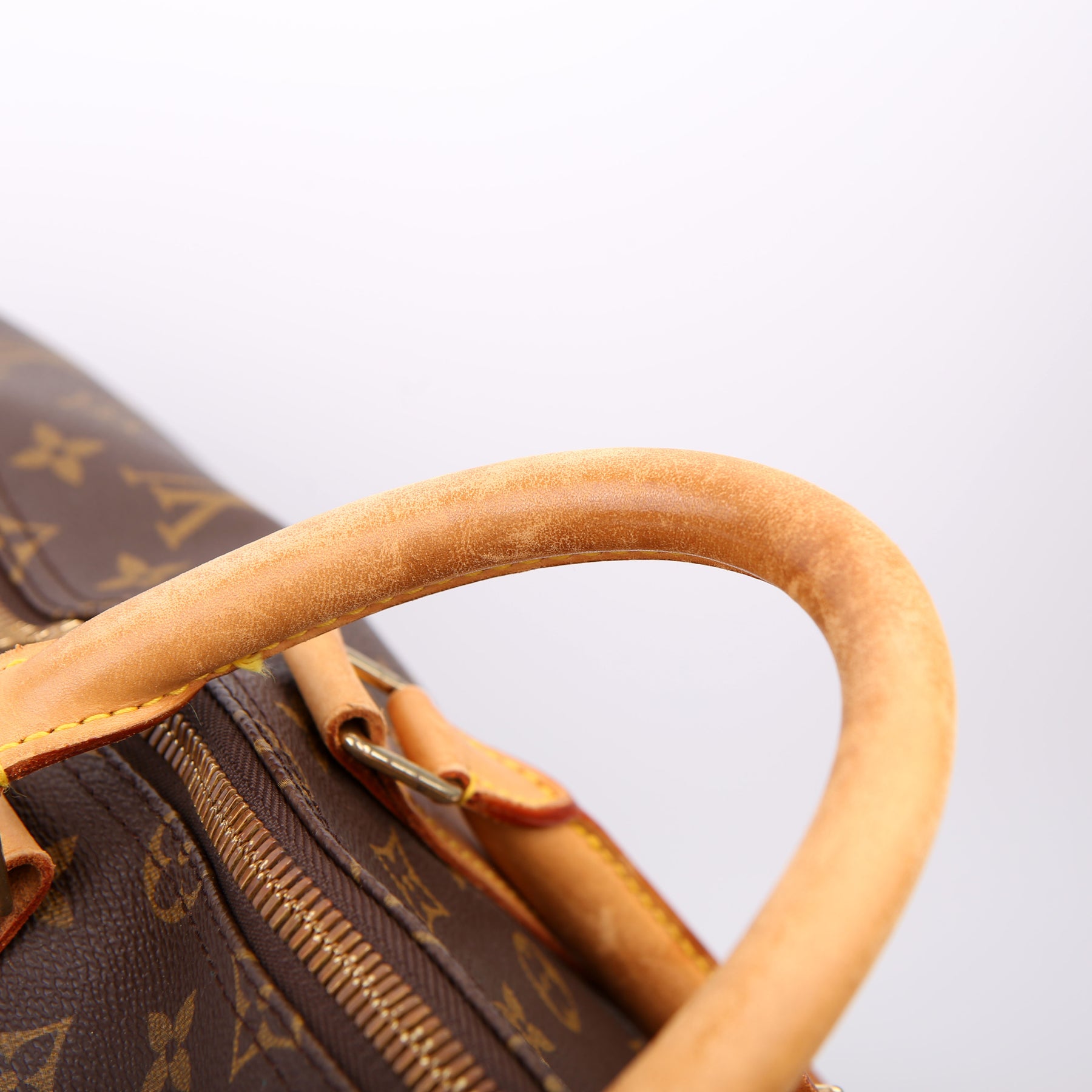 This pre-owned Louis Vuitton Keepall 55 Bandouliere is guaranteed 100% authentic. The exterior is in the classic Louis Vuitton Monogram coated canvas.