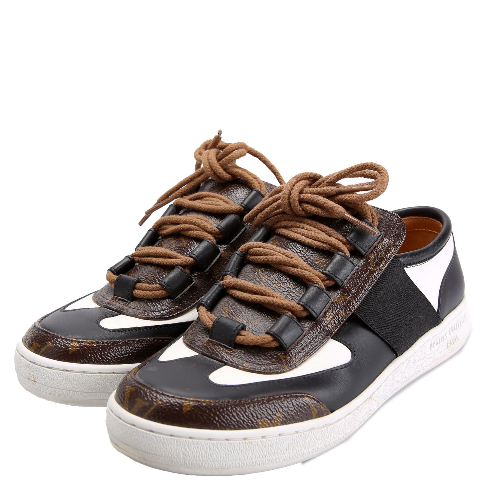 Leather Monogram Lous Sneakers Size 37.5 Brown/Black