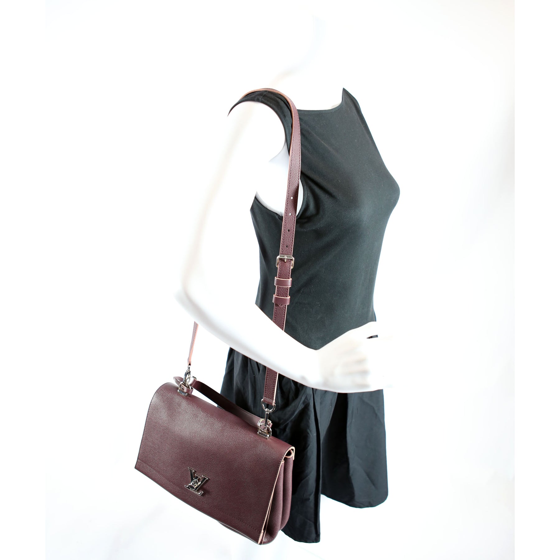 This pre-owned Louis Vuitton Lockme II is guaranteed 100% authentic. The exterior is in the classic Louis Vuitton Calfskin Leather.
