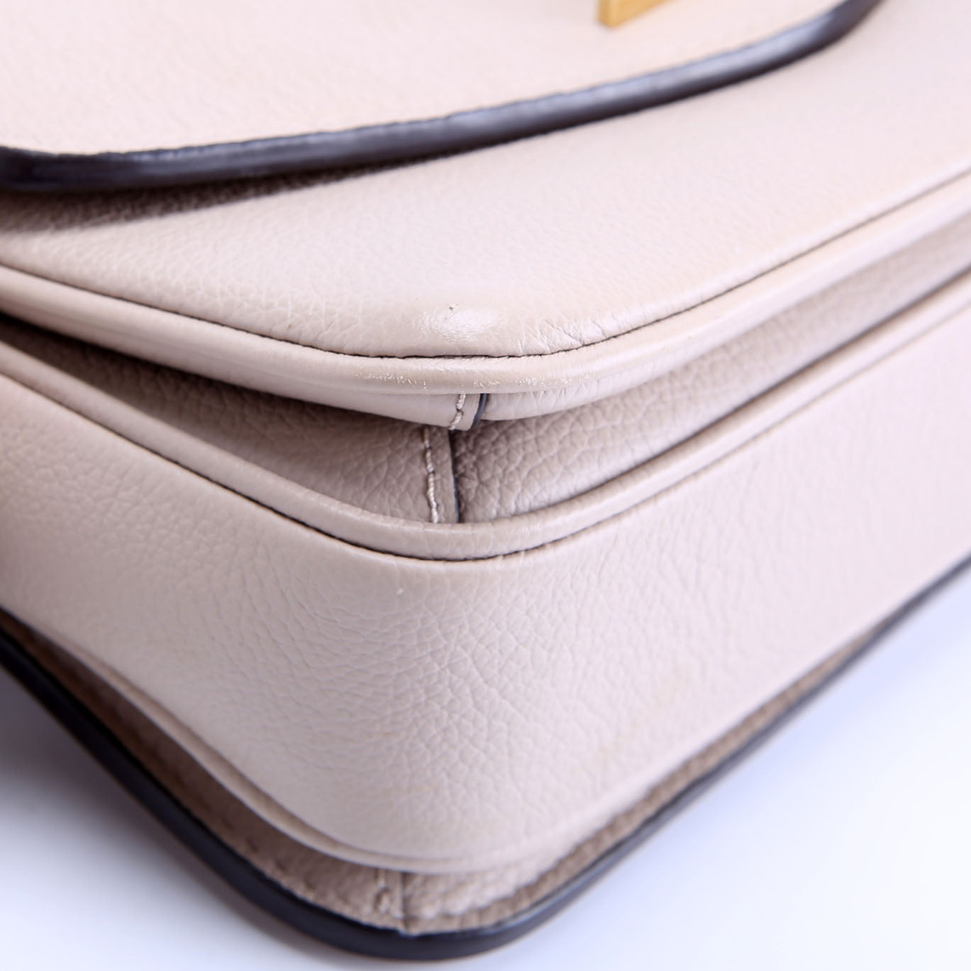 Handle: The leather handle is free from wear. The chain handle shows light scratches.