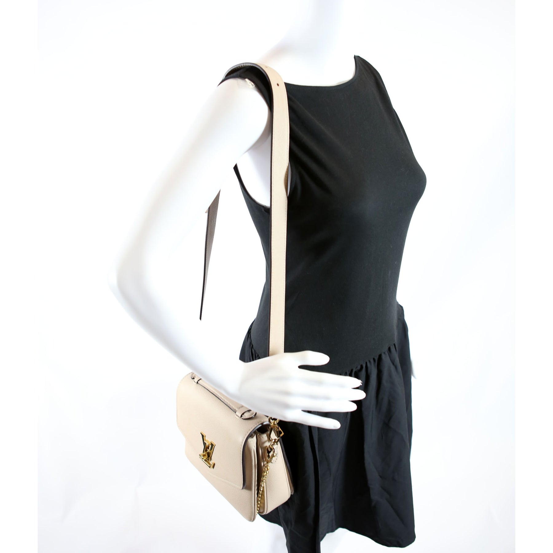 This pre-owned Louis Vuitton Lockme Oxford is guaranteed 100% authentic. The exterior is in the Louis Vuitton Calfskin leather.