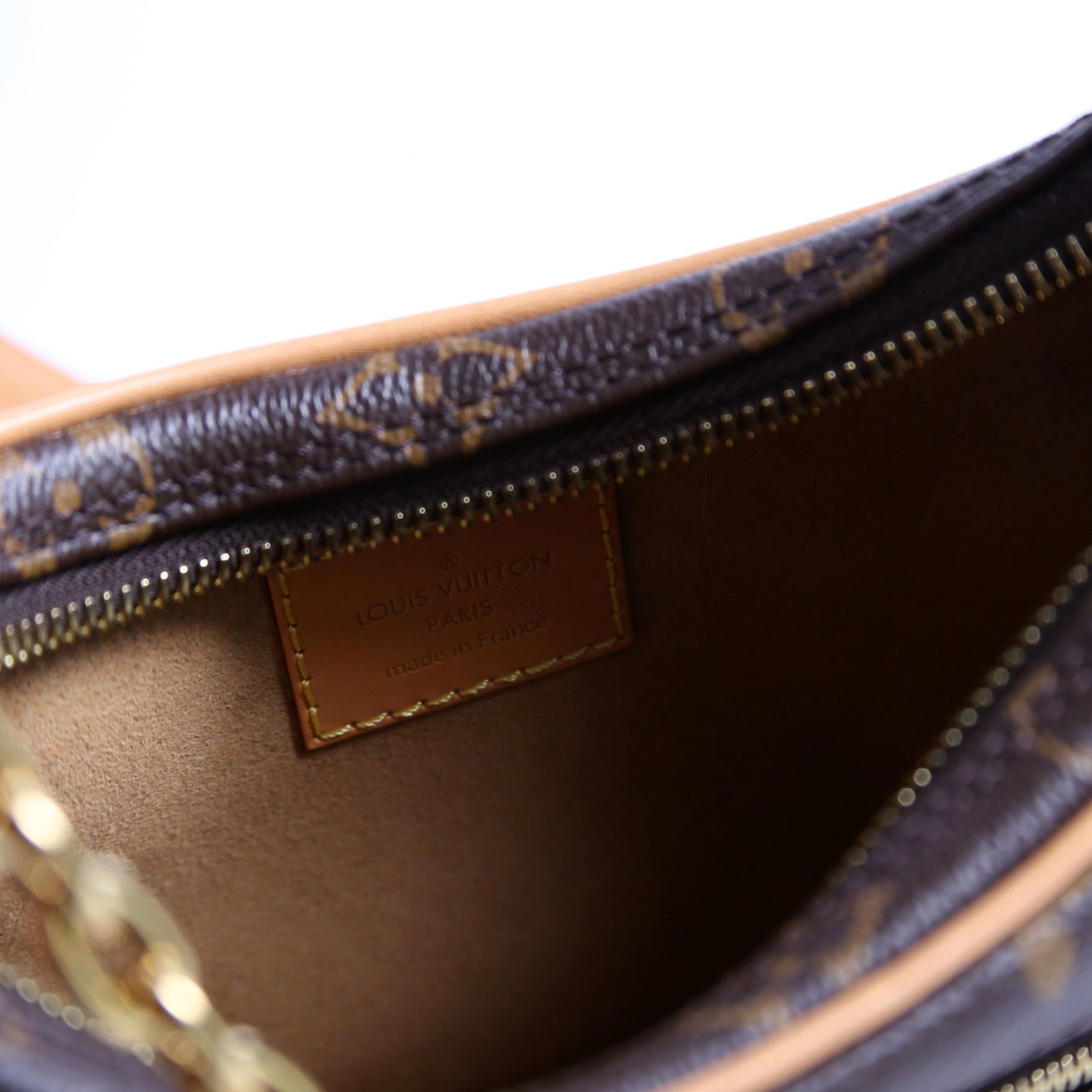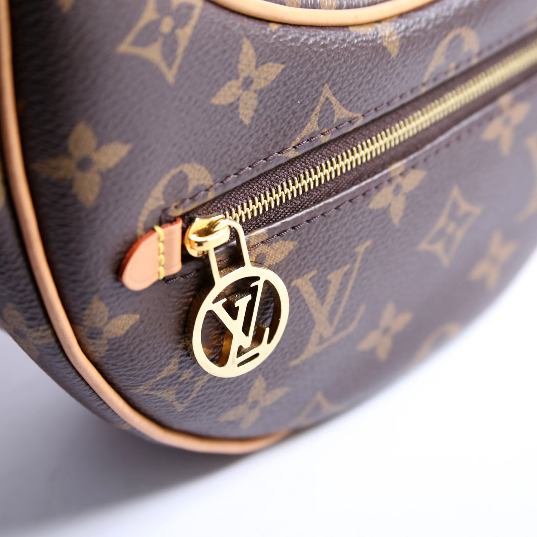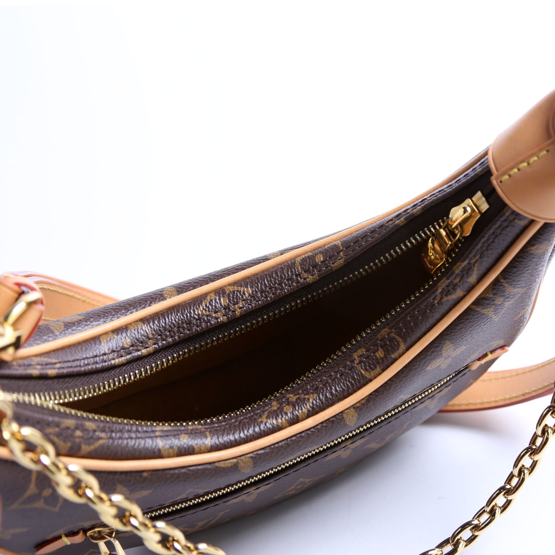 This pre-owned Louis Vuitton Loop is guaranteed 100% authentic. The exterior is in the classic Louis Vuitton Monogram coated canvas.