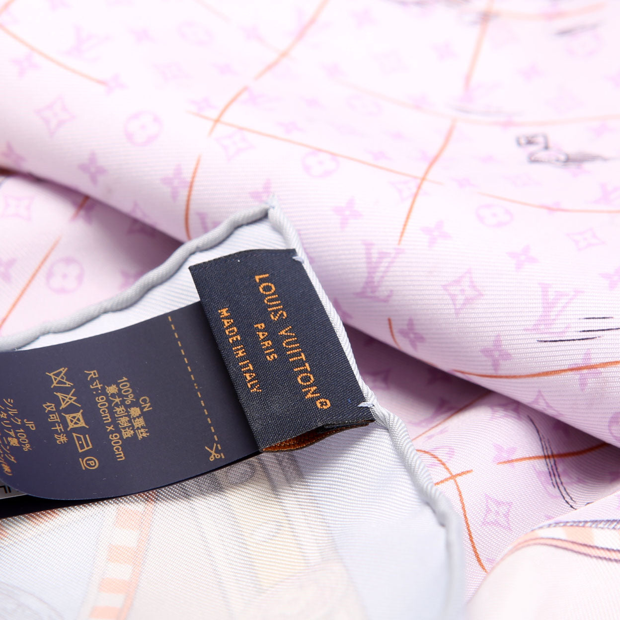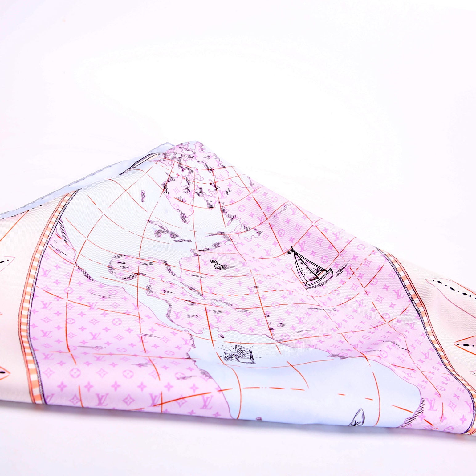 This pre-owned Louis Vuitton LV Map Square 90 Silk Scarf is guaranteed 100% authentic.
