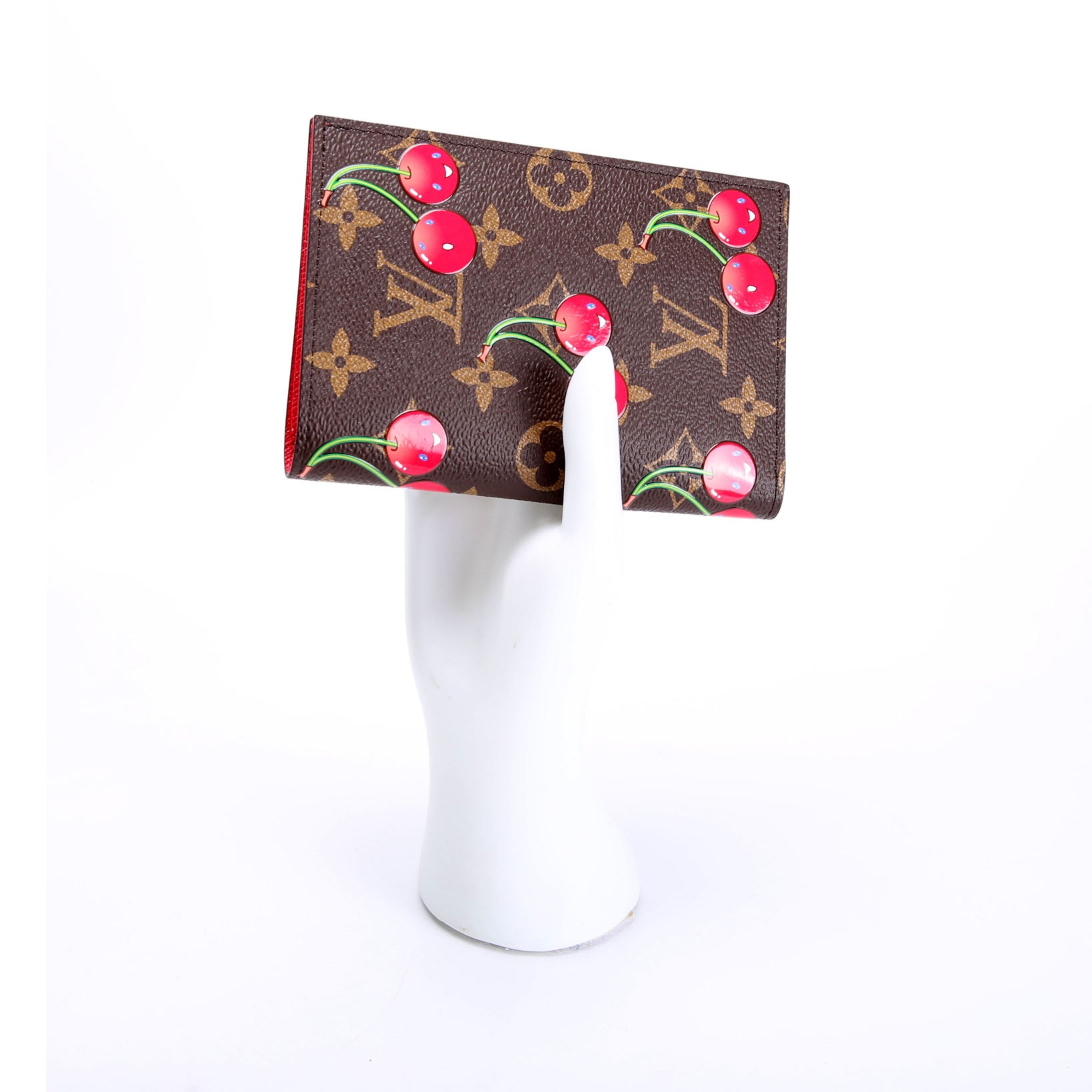 This pre-owned Louis Vuitton LV X TM Passport Cover Cerises is guaranteed 100% authentic. The exterior is in the classic Louis Vuitton Monogram Coated Canvas.