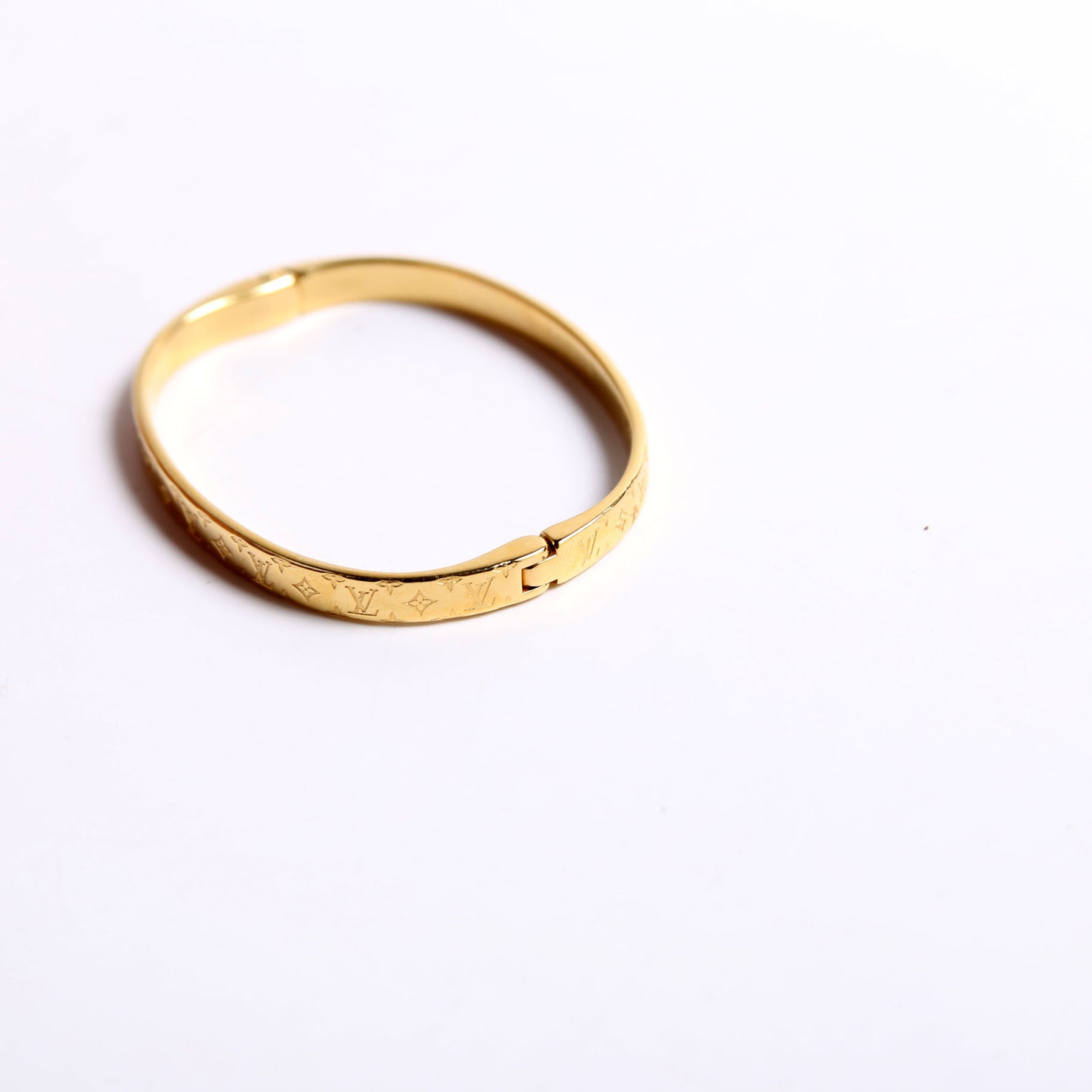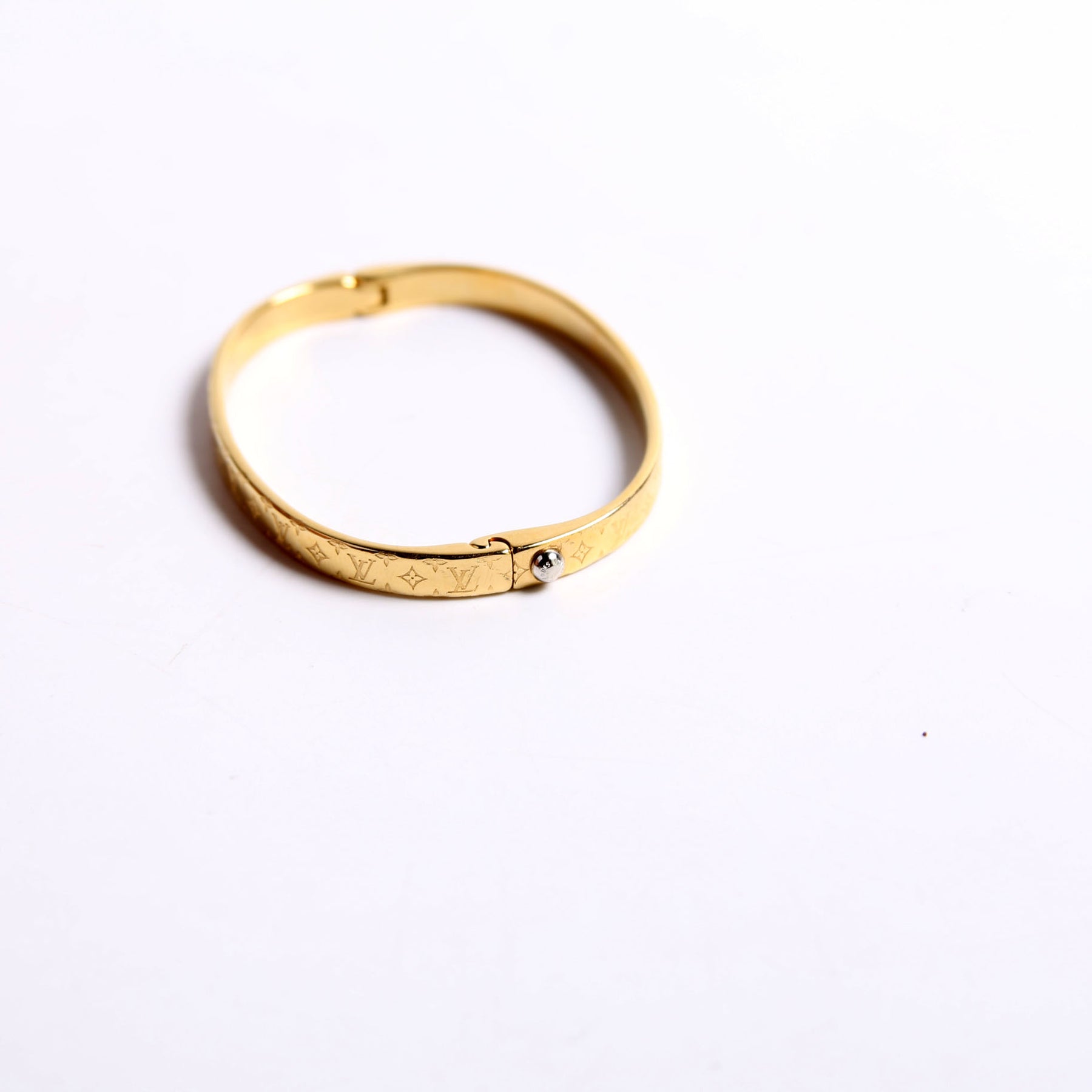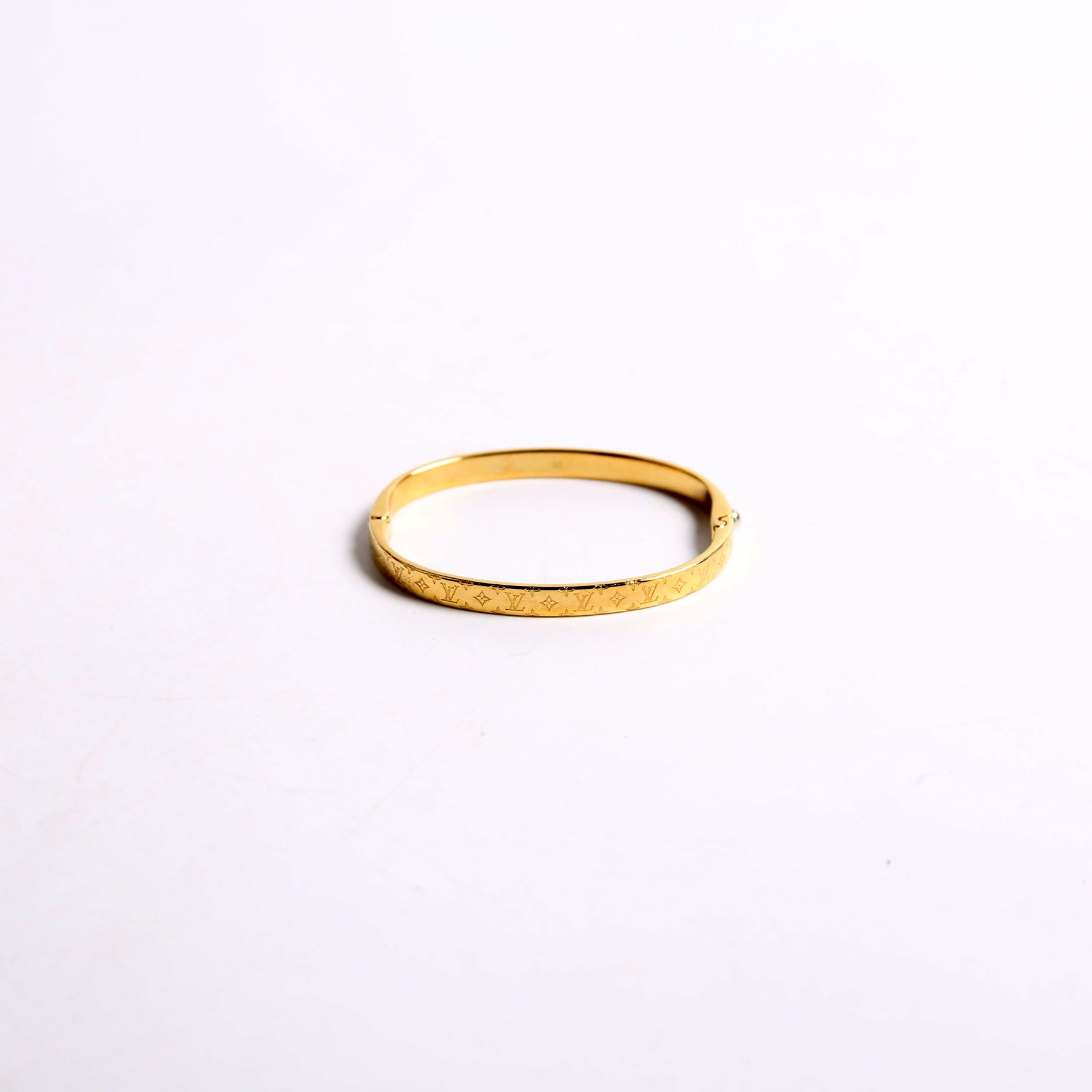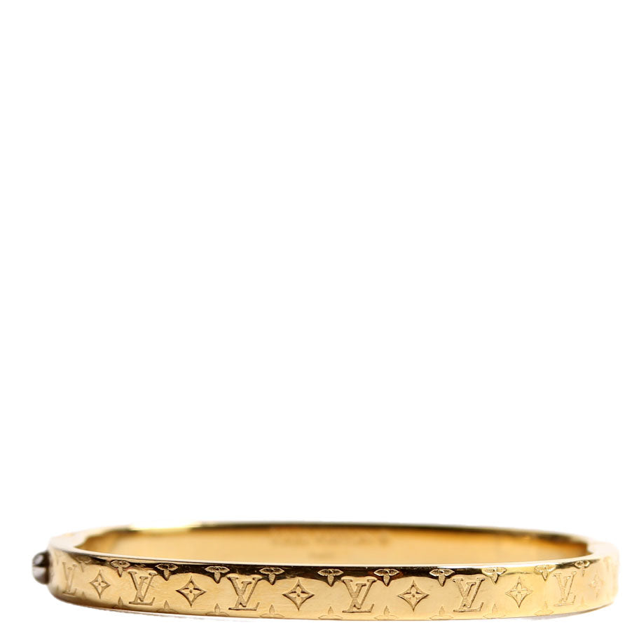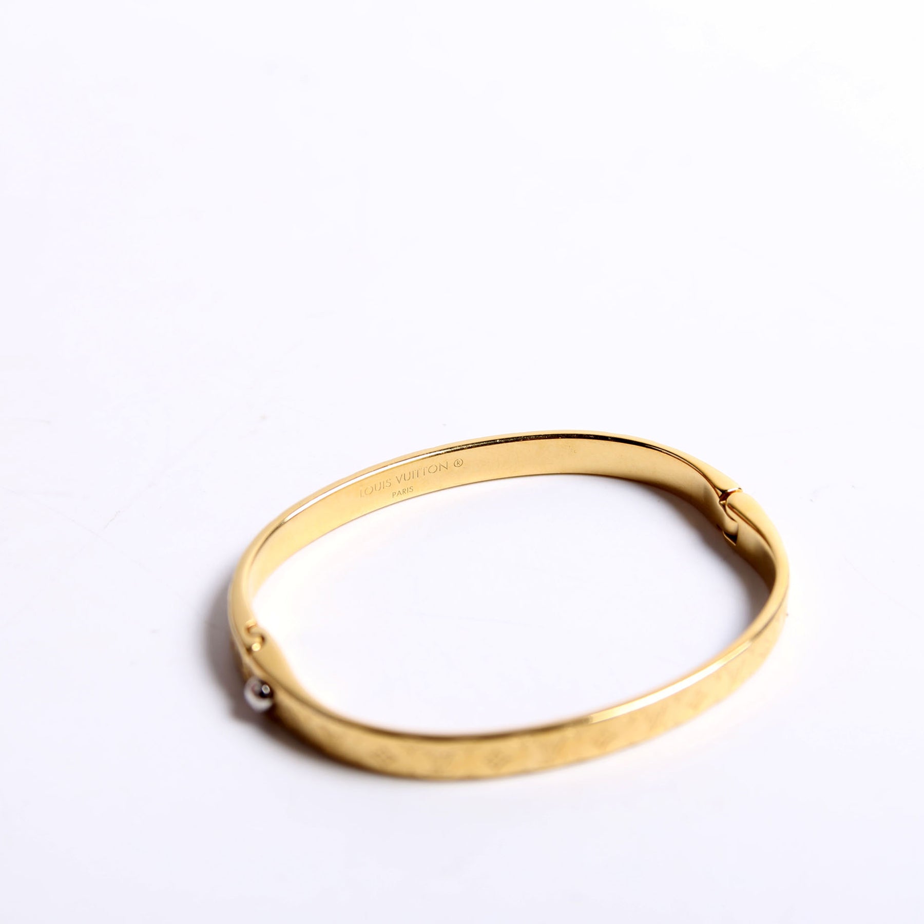 This pre-owned Louis Vuitton Nanogram Cuff Bracelet Size Medium 100% guaranteed authentic.