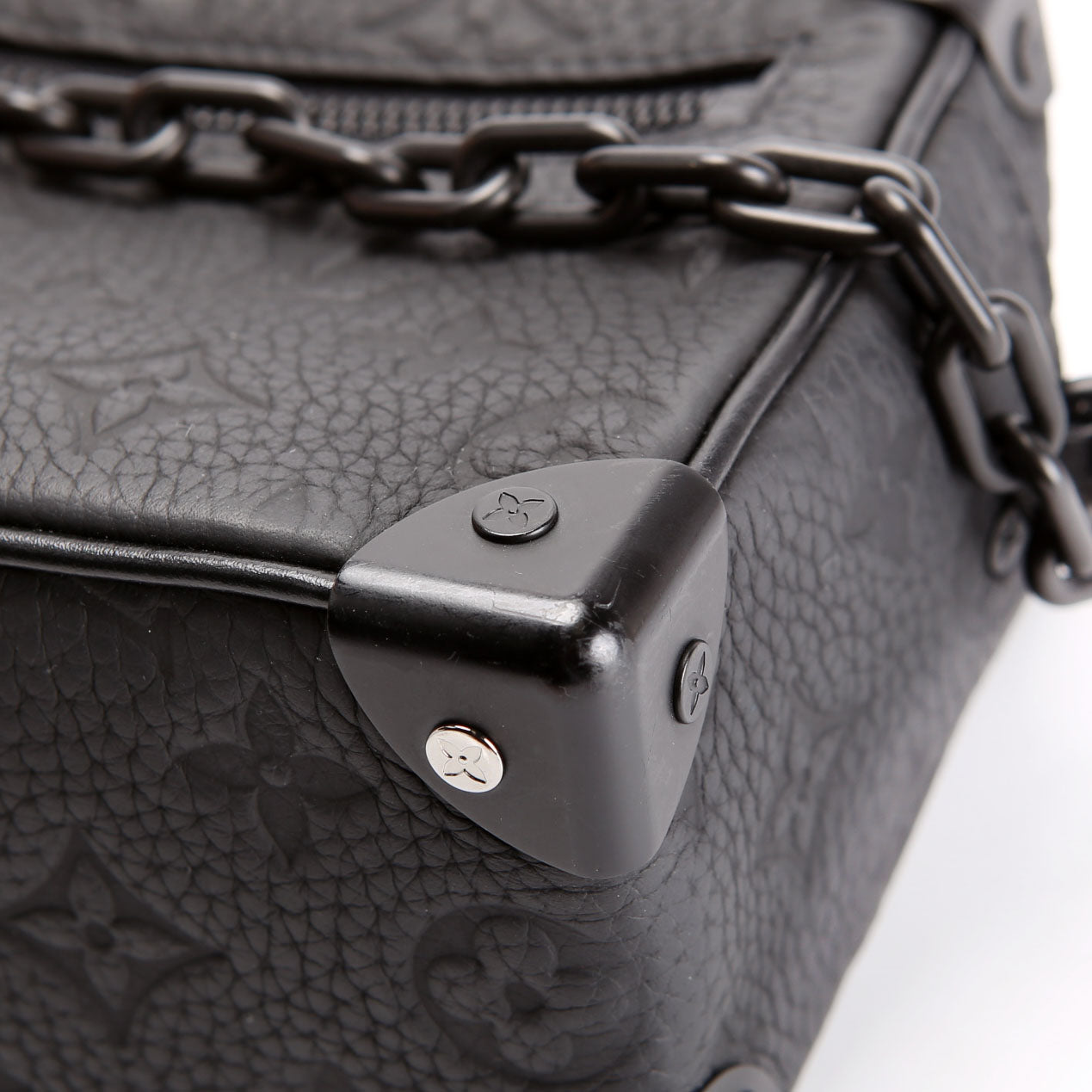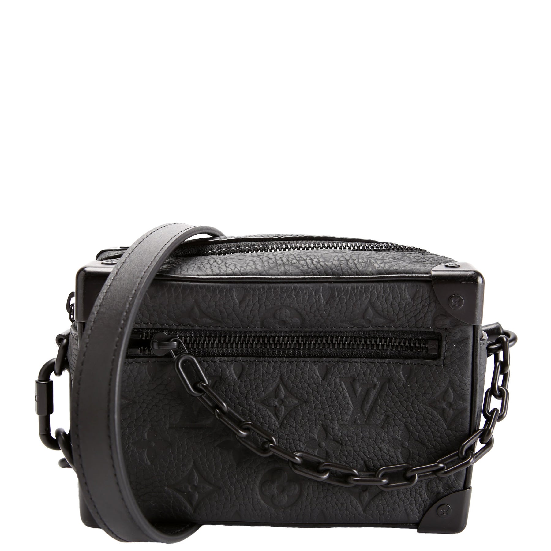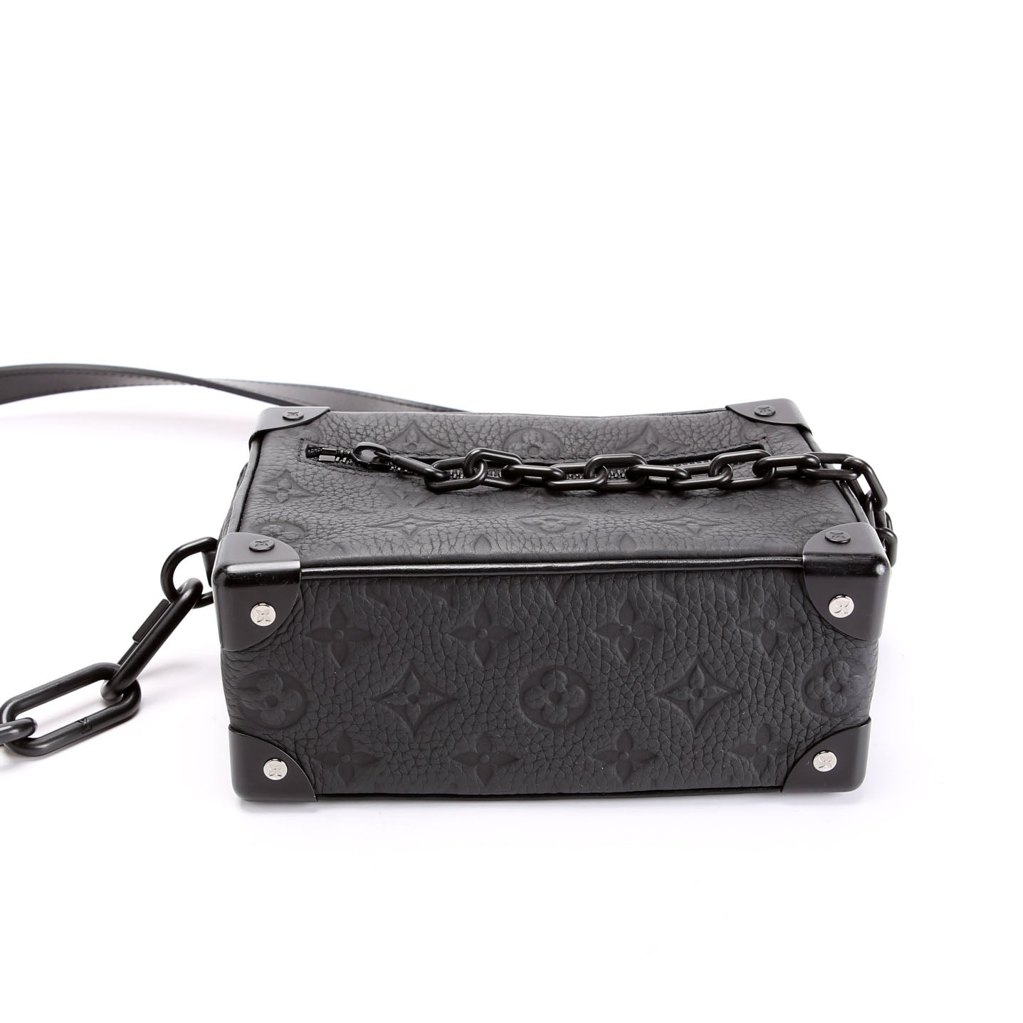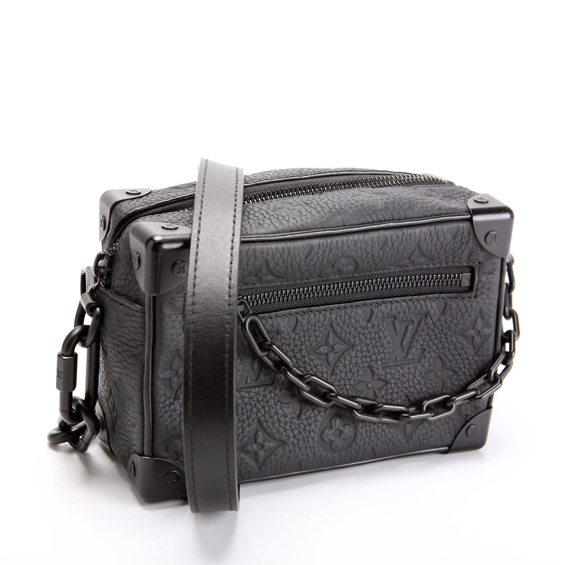 This pre-owned Louis Vuitton Mini Soft Trunk Taurillon is guaranteed 100% authentic. The exterior is in the classic Empreinte.