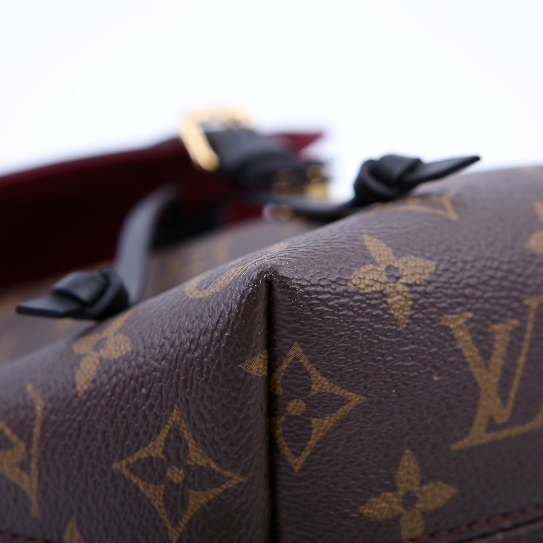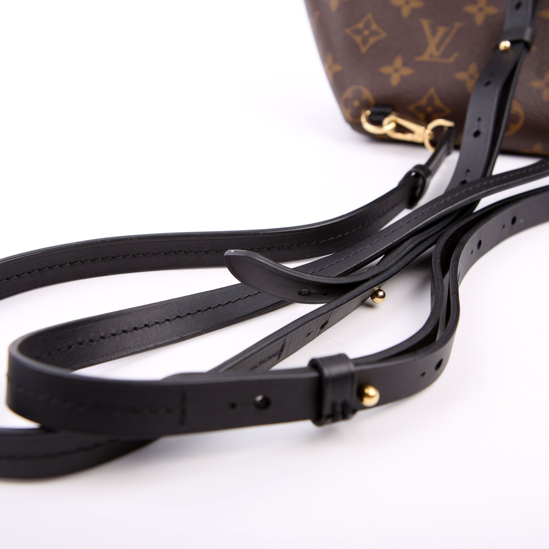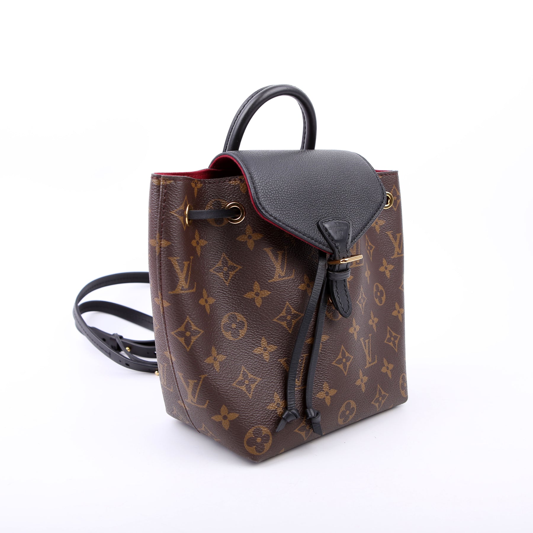 This pre-owned Louis Vuitton Montsouris BB is guaranteed 100% authentic. The exterior is in the classic Louis Vuitton Monogram coated canvas.