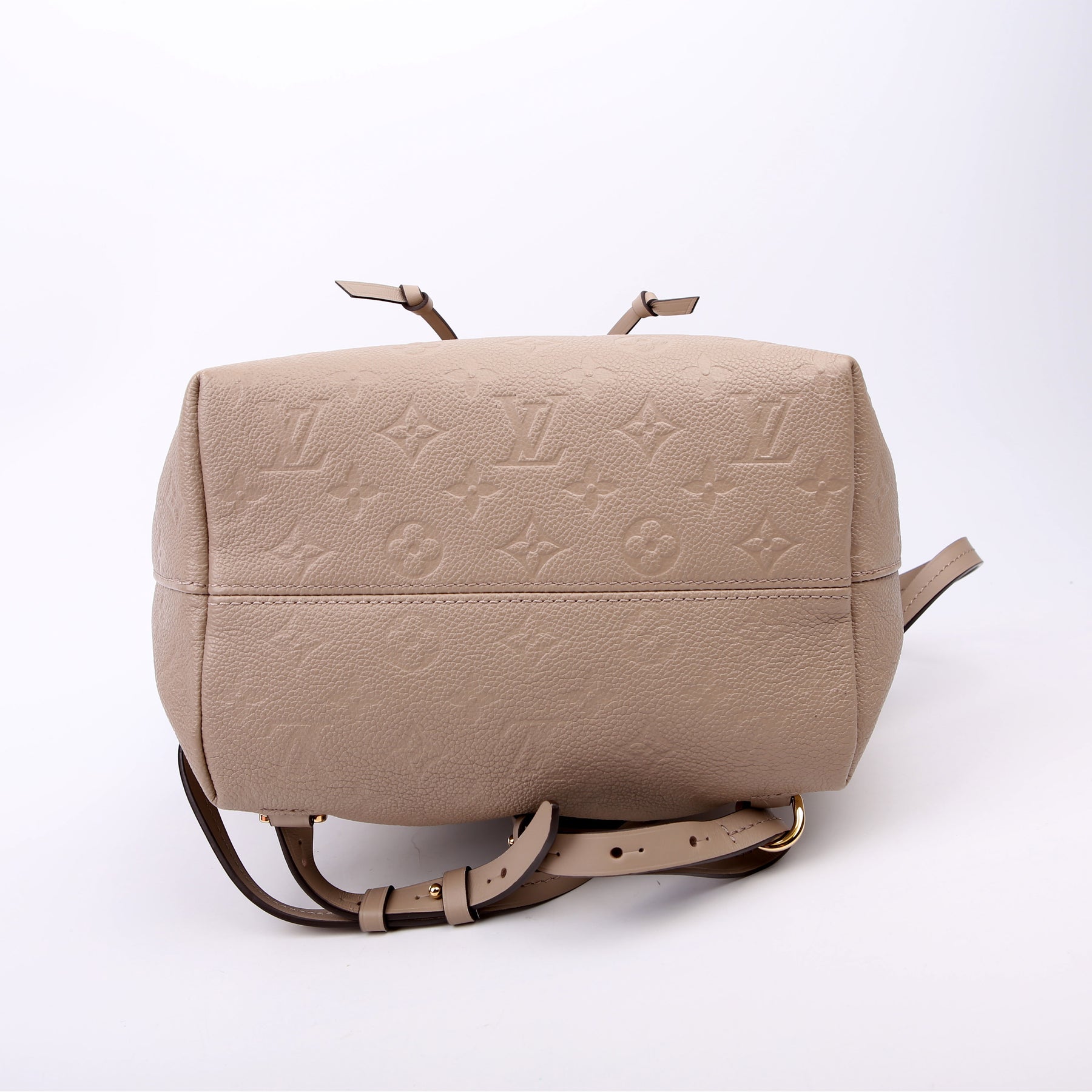 This pre-owned Louis Vuitton Montsouris PM NM is guaranteed 100% authentic. The exterior is in the classic Louis Vuitton Empreinte leather.