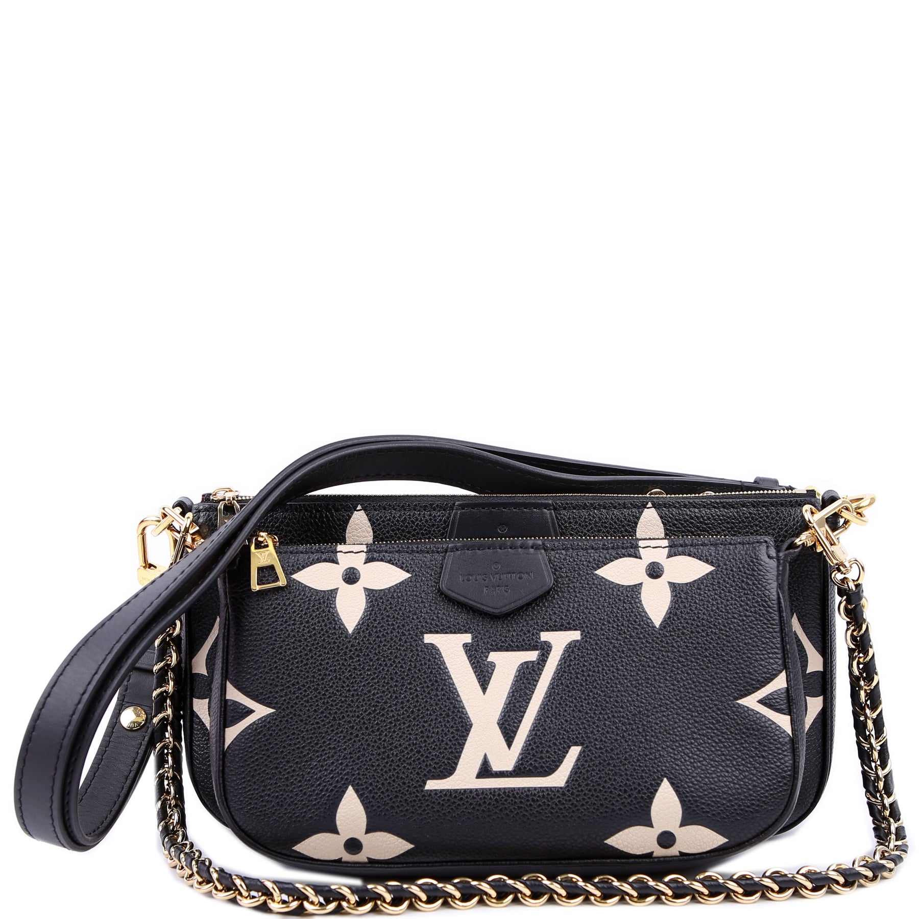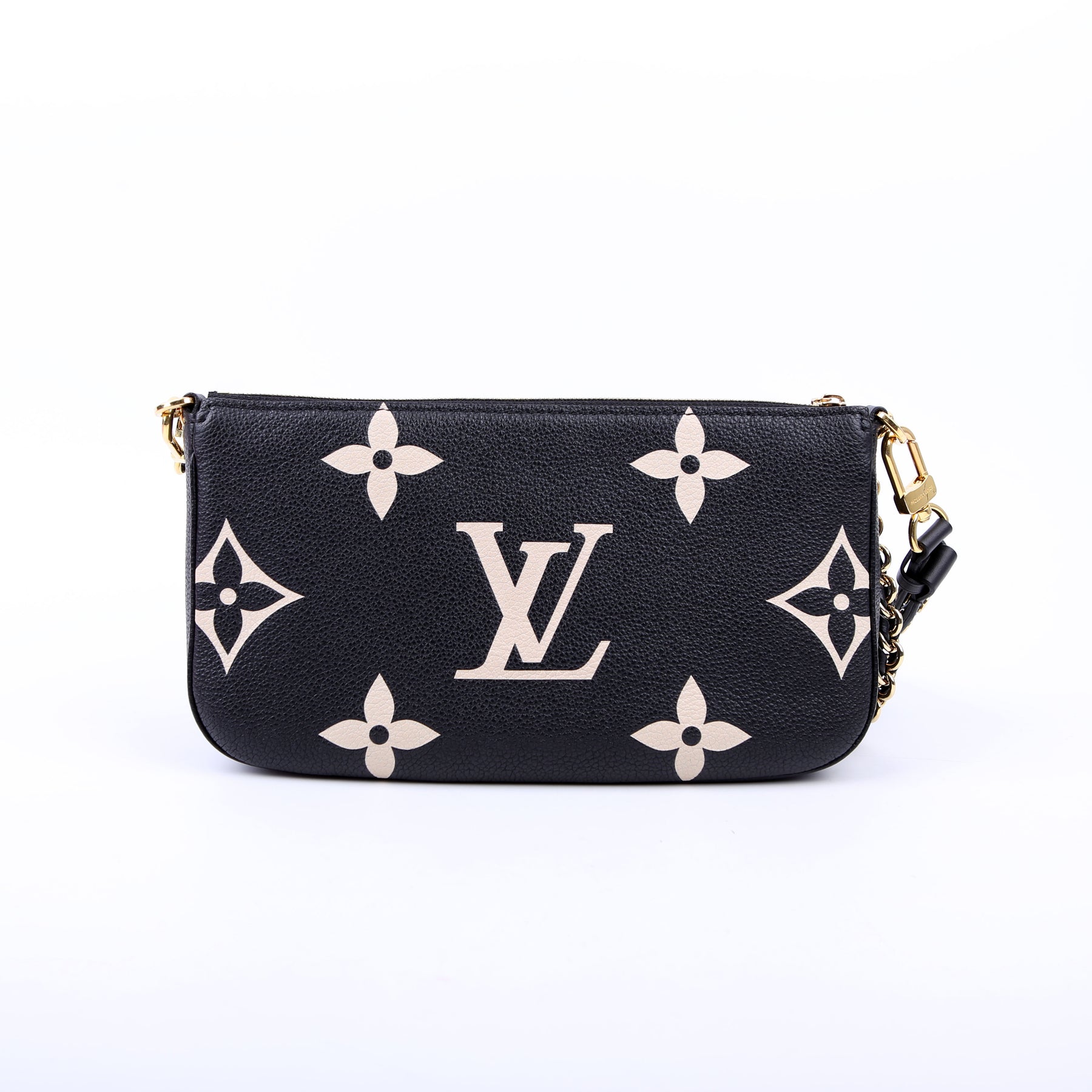 This pre-owned Louis Vuitton Multi Pochette is guaranteed 100% authentic. The exterior is in the classic Louis Vuitton Empreinte Bicolor leather.