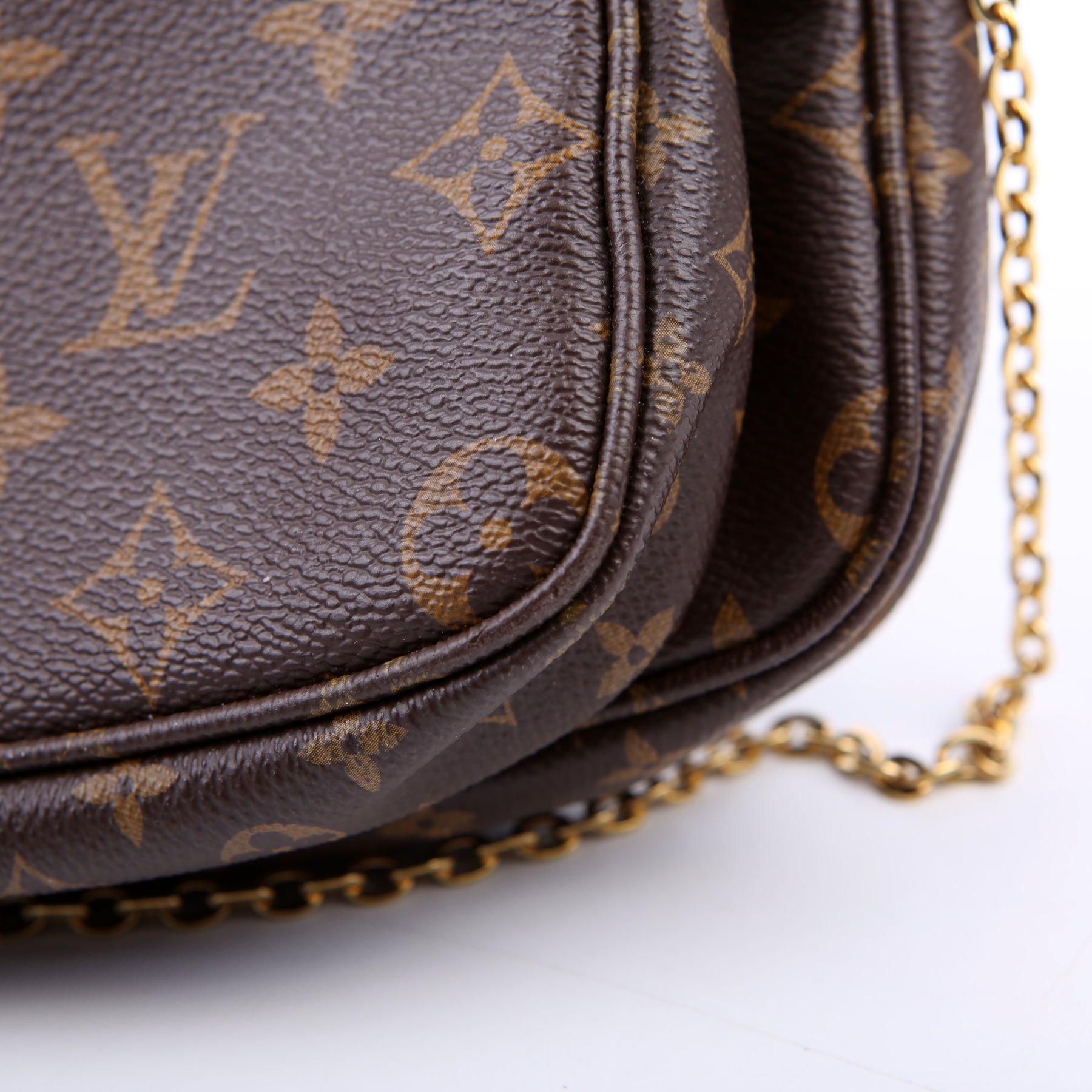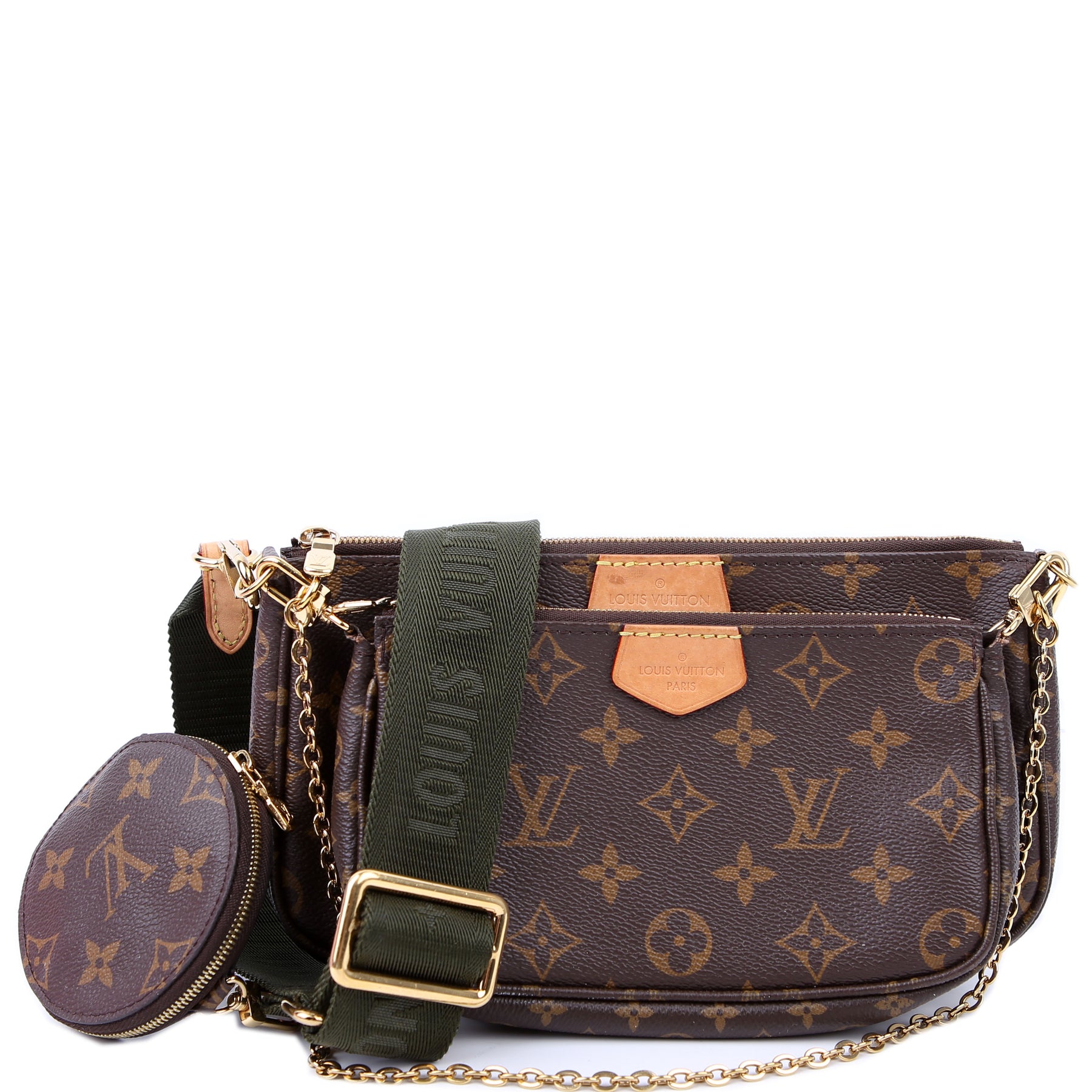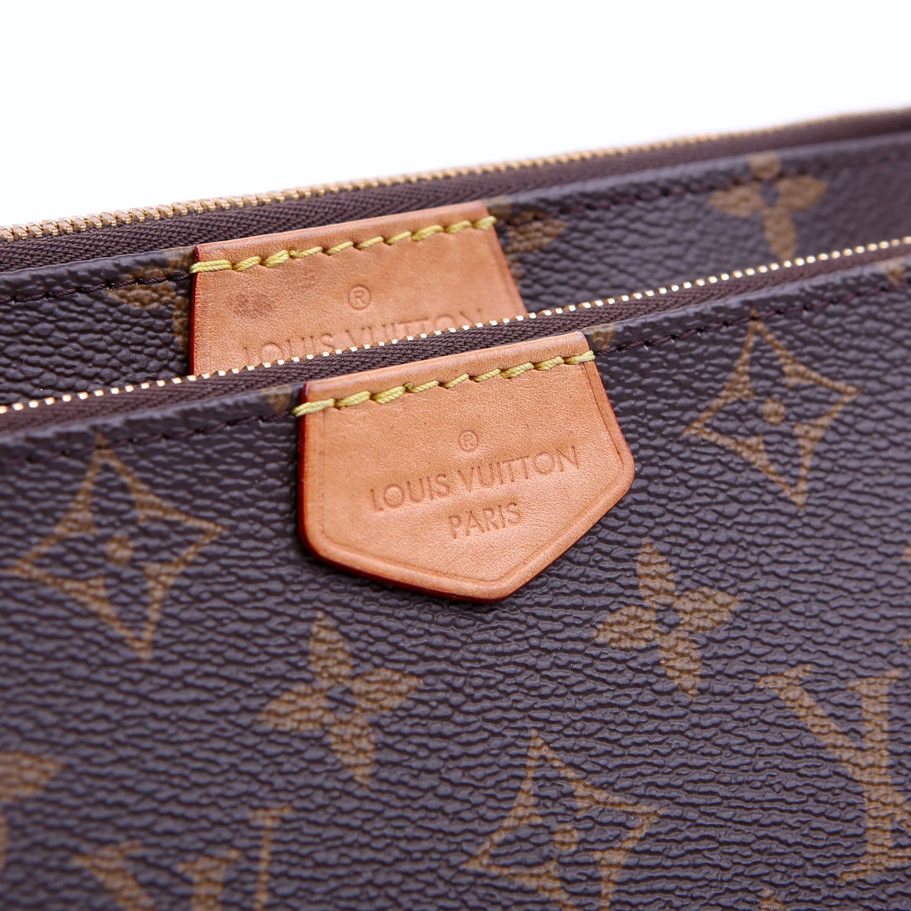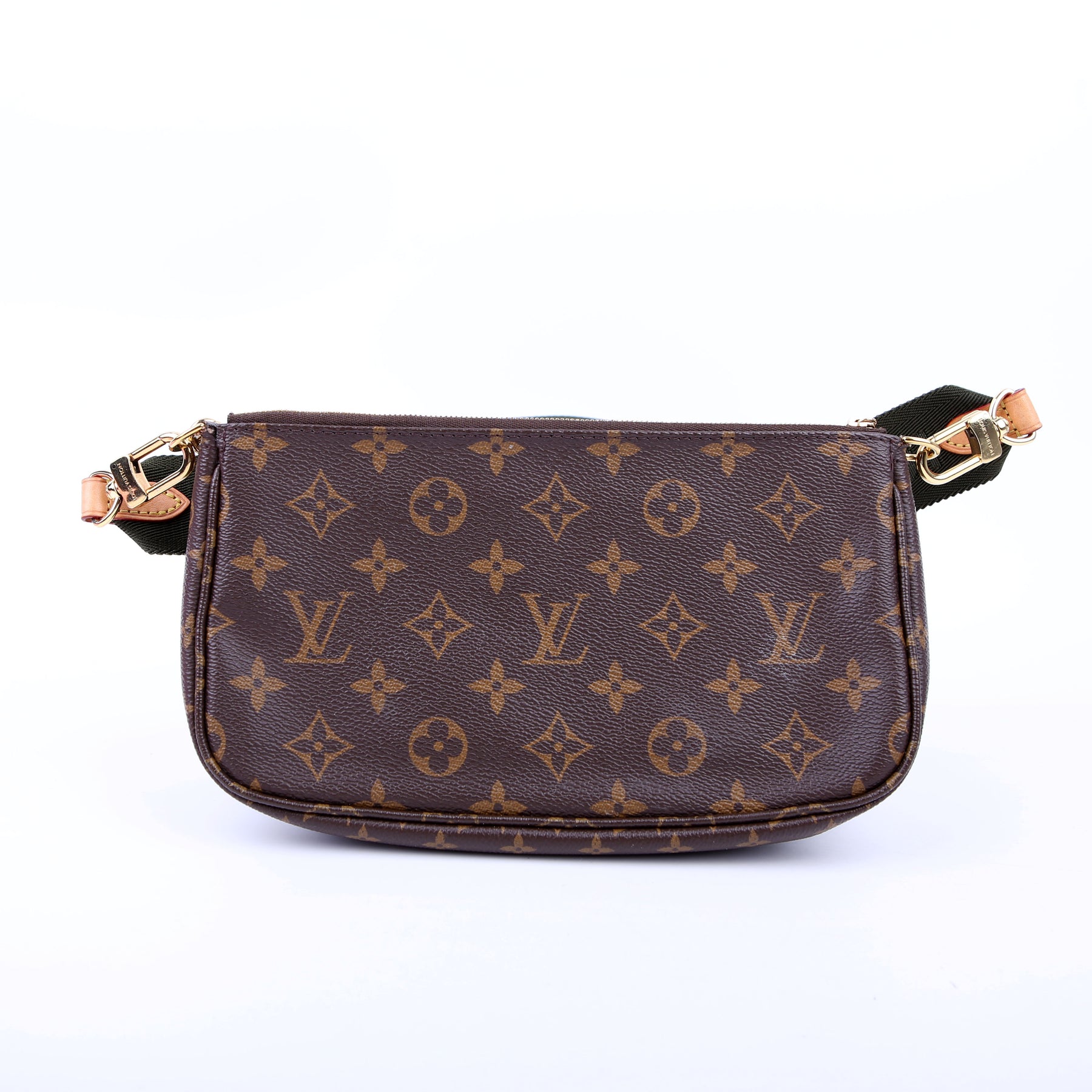 This pre-owned Louis Vuitton Multi Pochette is guaranteed 100% authentic. The exterior is in the classic Louis Vuitton Monogram Coated Canvas.