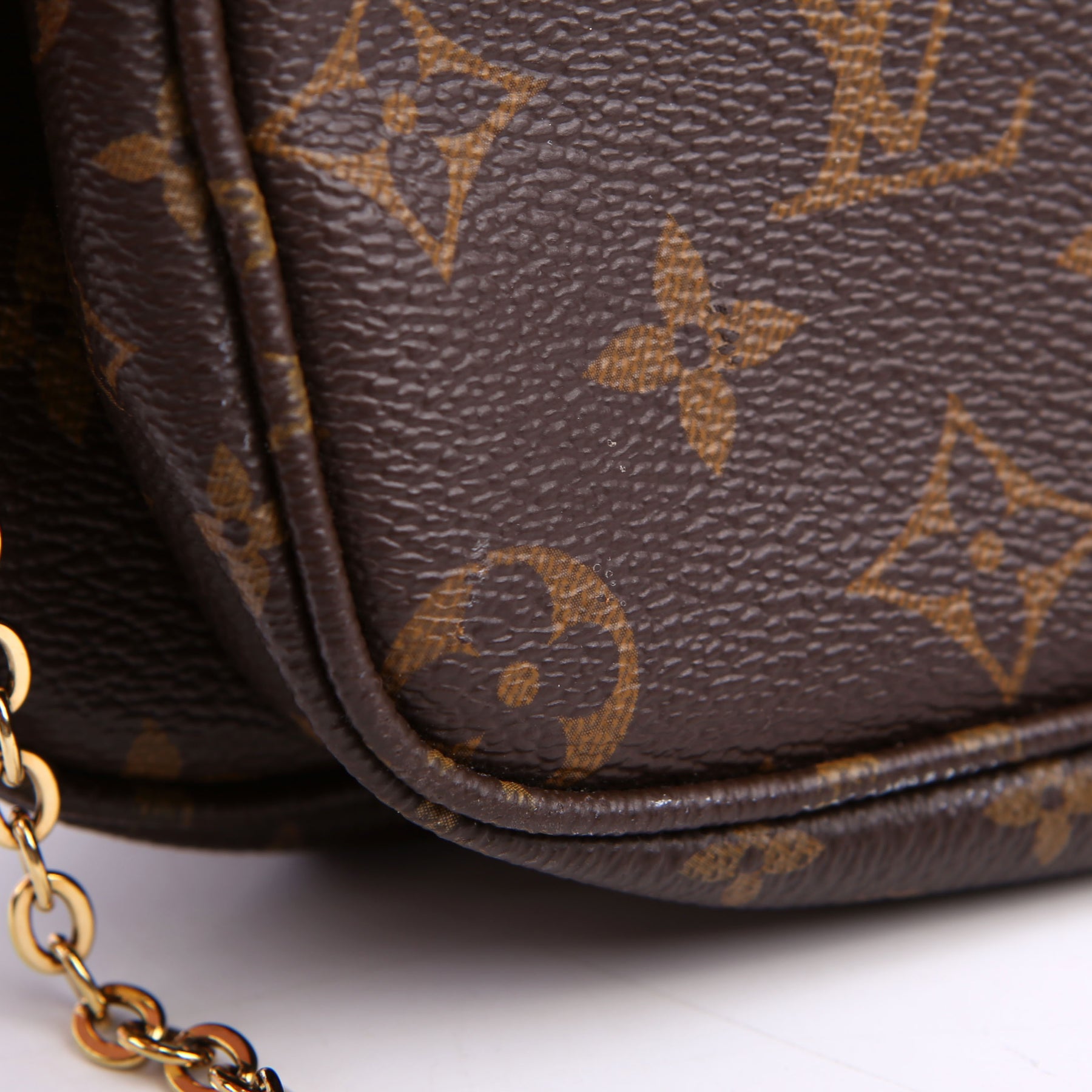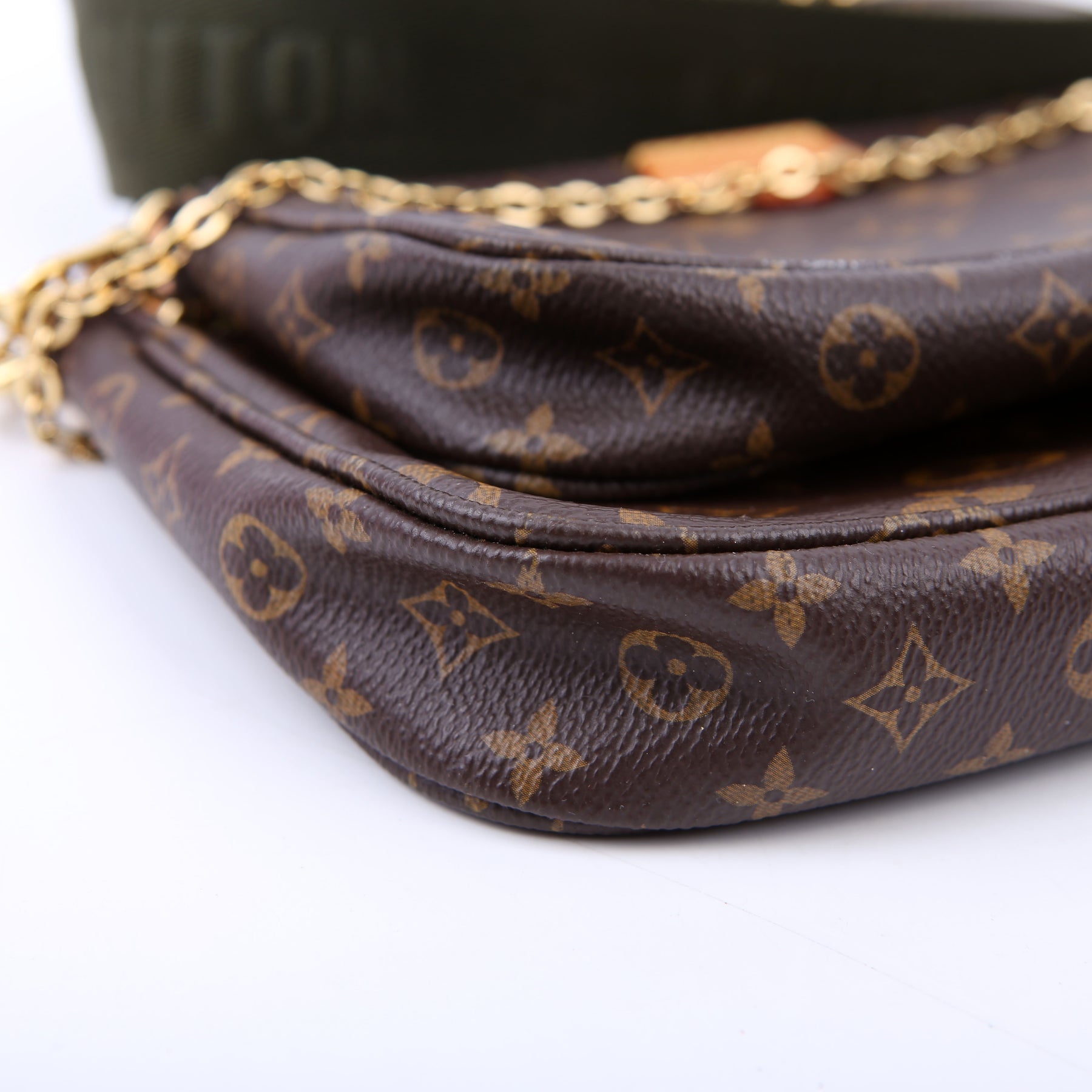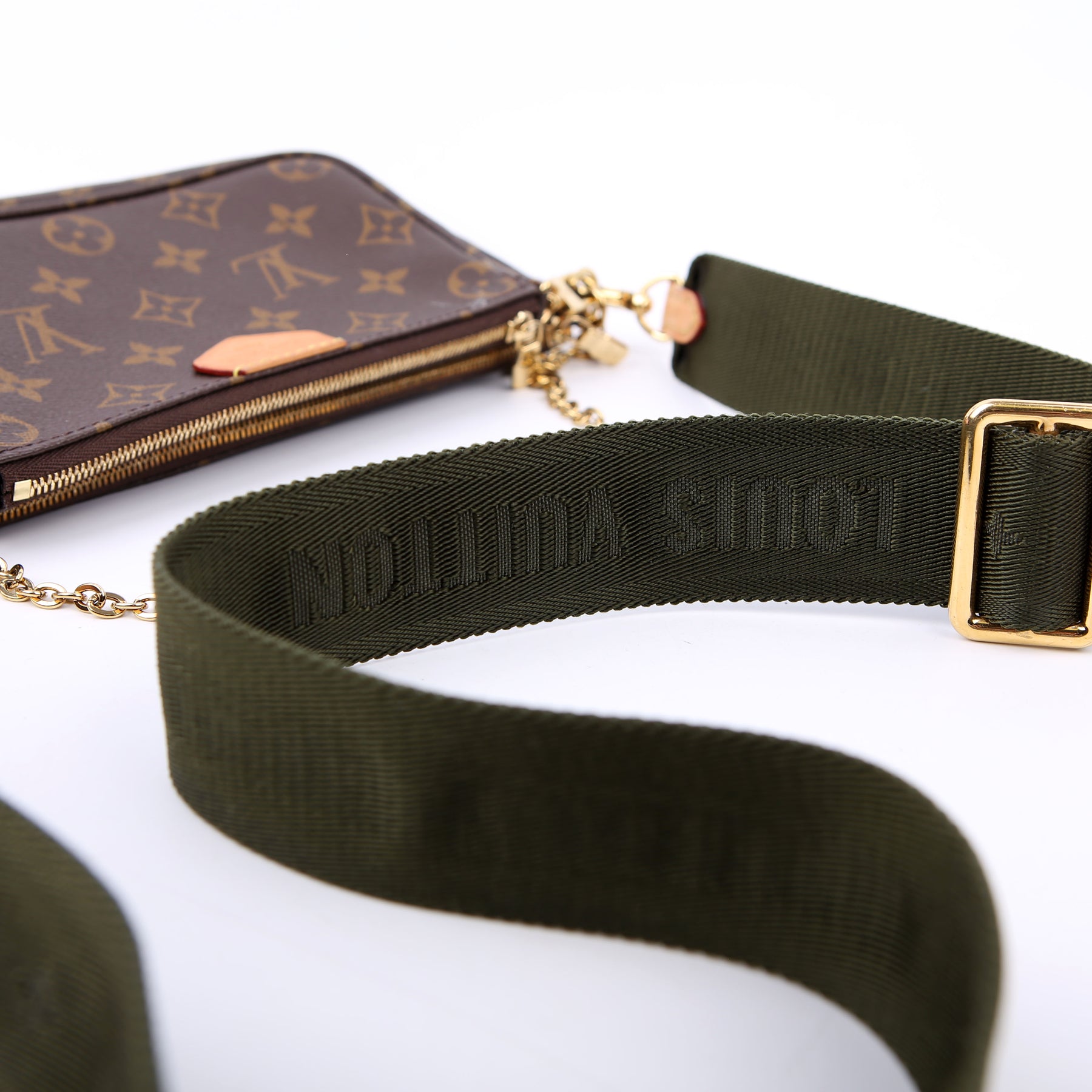 This pre-owned Louis Vuitton Multi Pochette is guaranteed 100% authentic. The exterior is in the classic Louis Vuitton Monogram Coated Canvas.