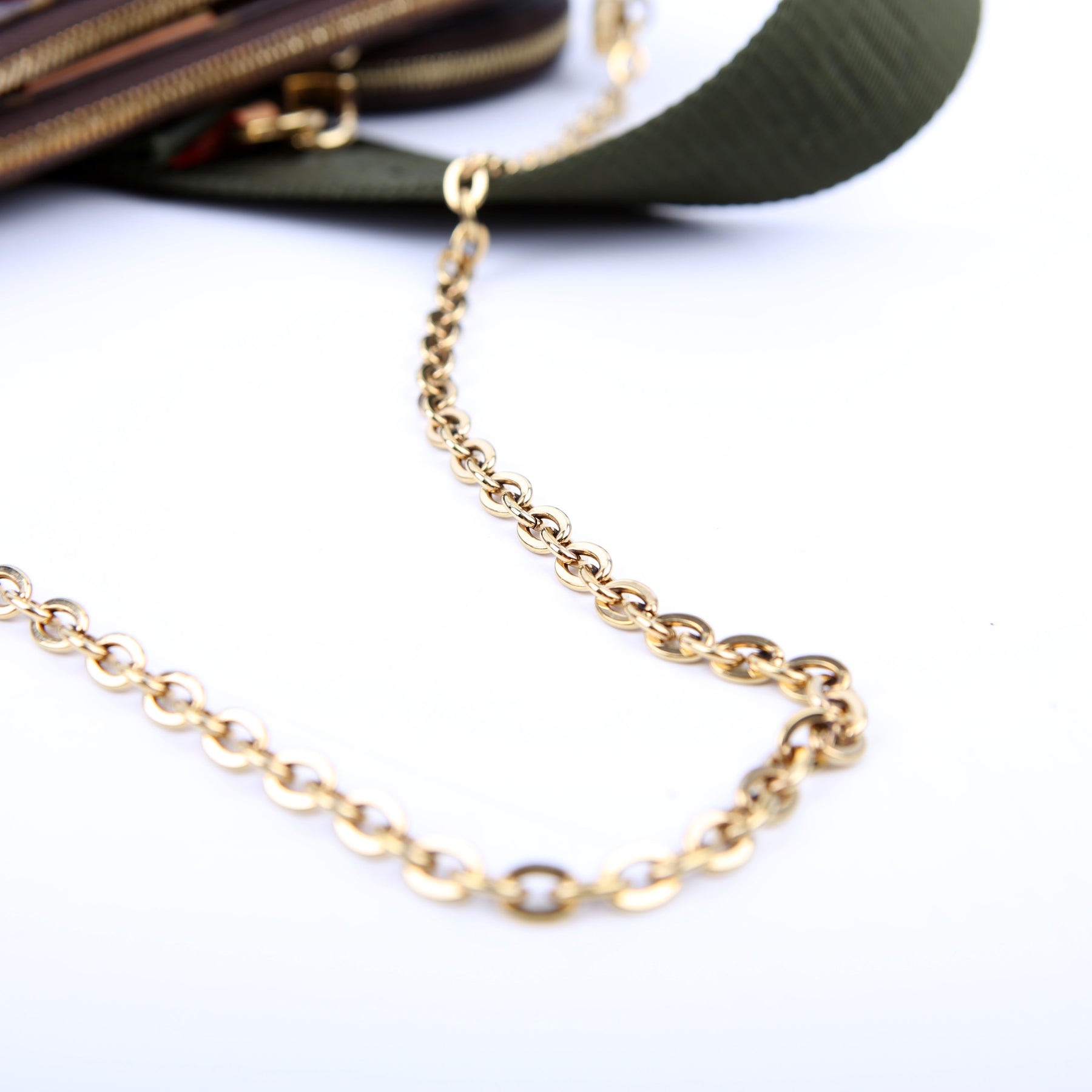 Strap: The strap shows minor wear and discoloration along the leather tabs. The strap features one removable zipper pouch.