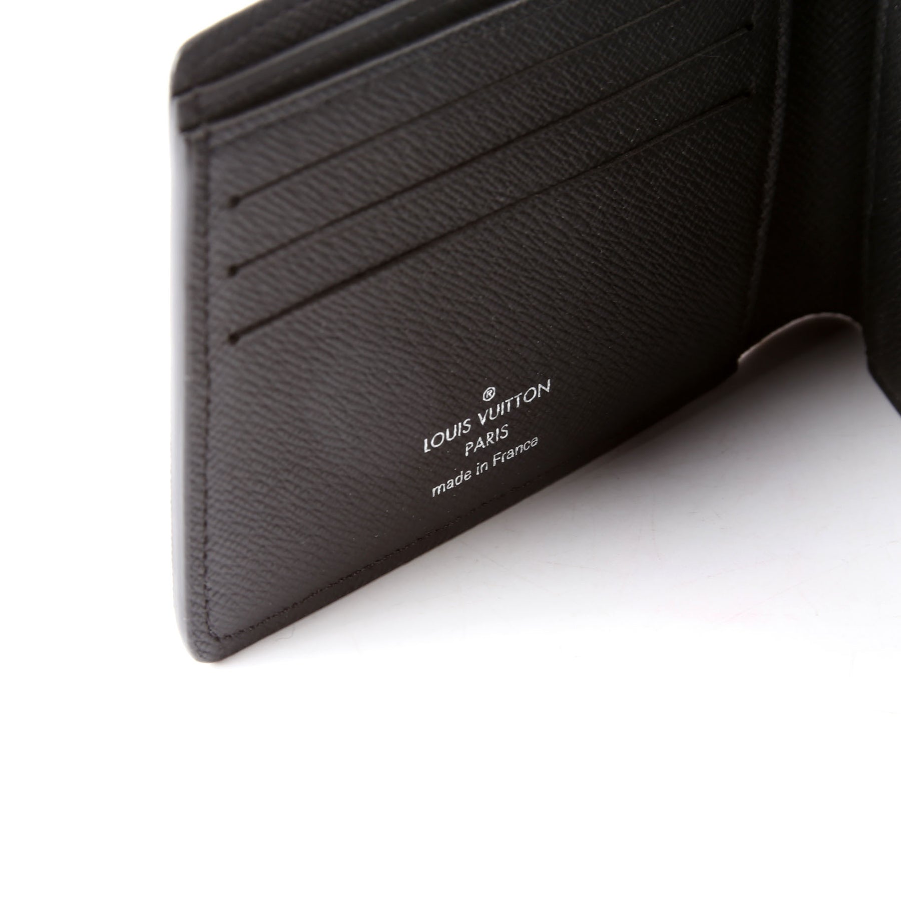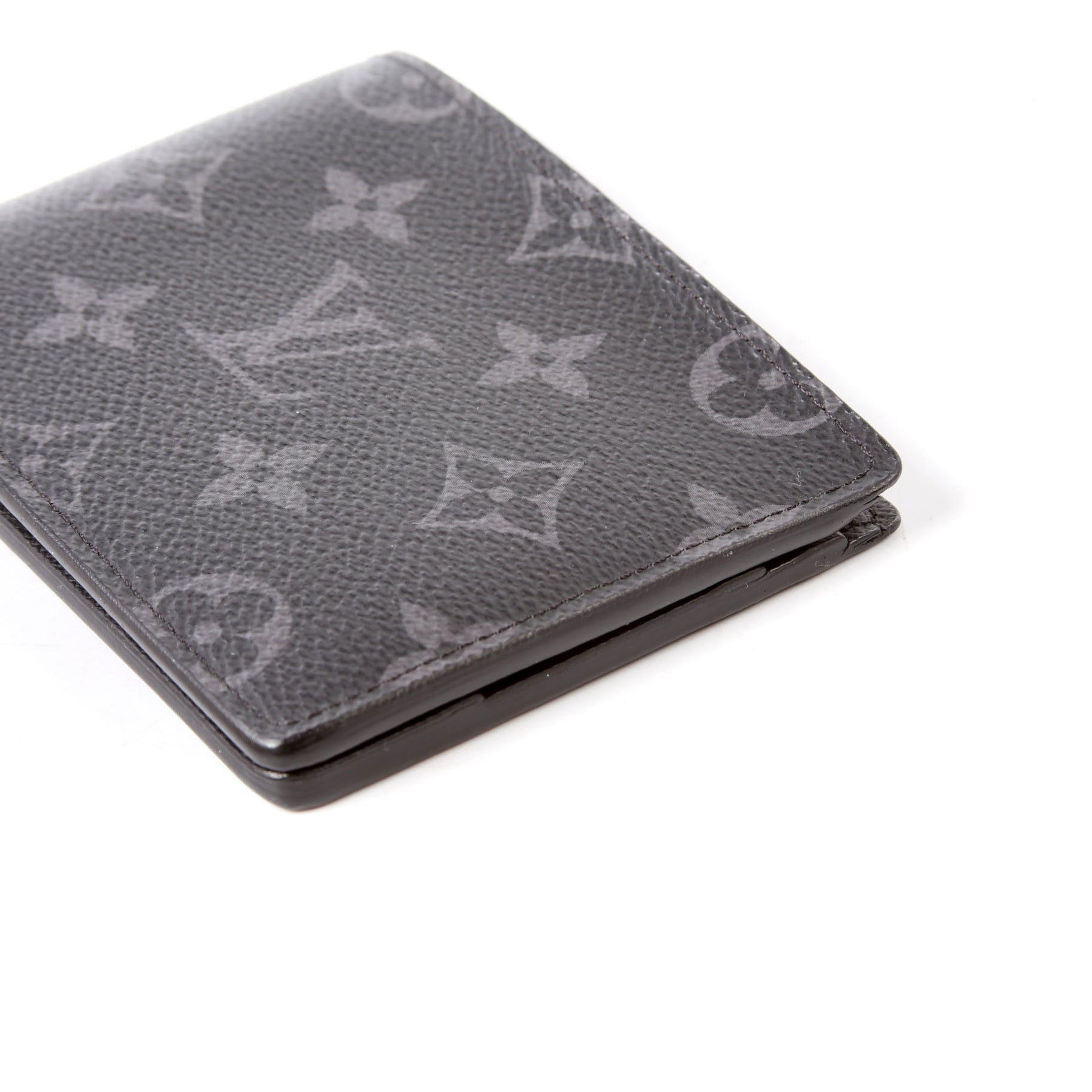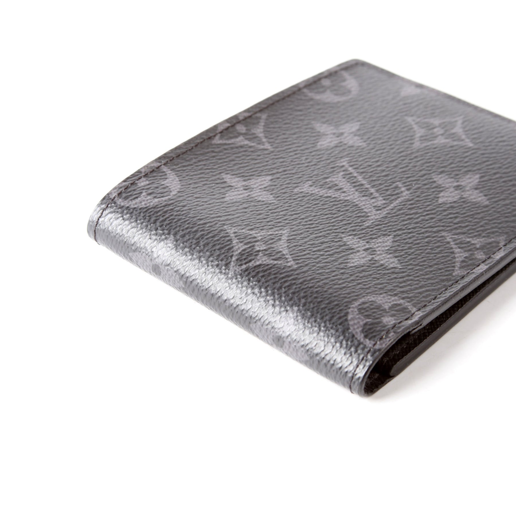 This pre-owned Louis Vuitton Multiple Wallet is guaranteed 100% authentic. The exterior is in the classic Louis Vuitton Eclipse Monogram coated canvas.