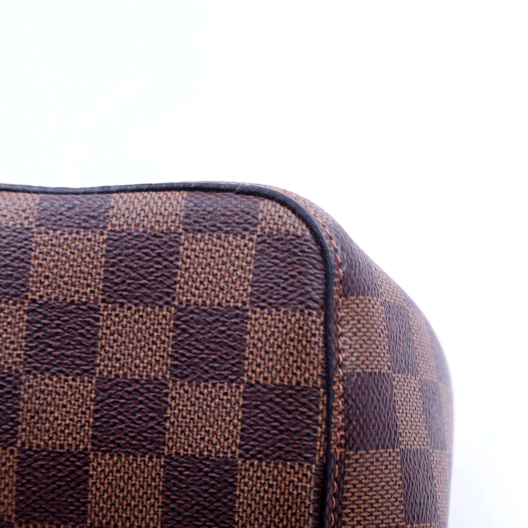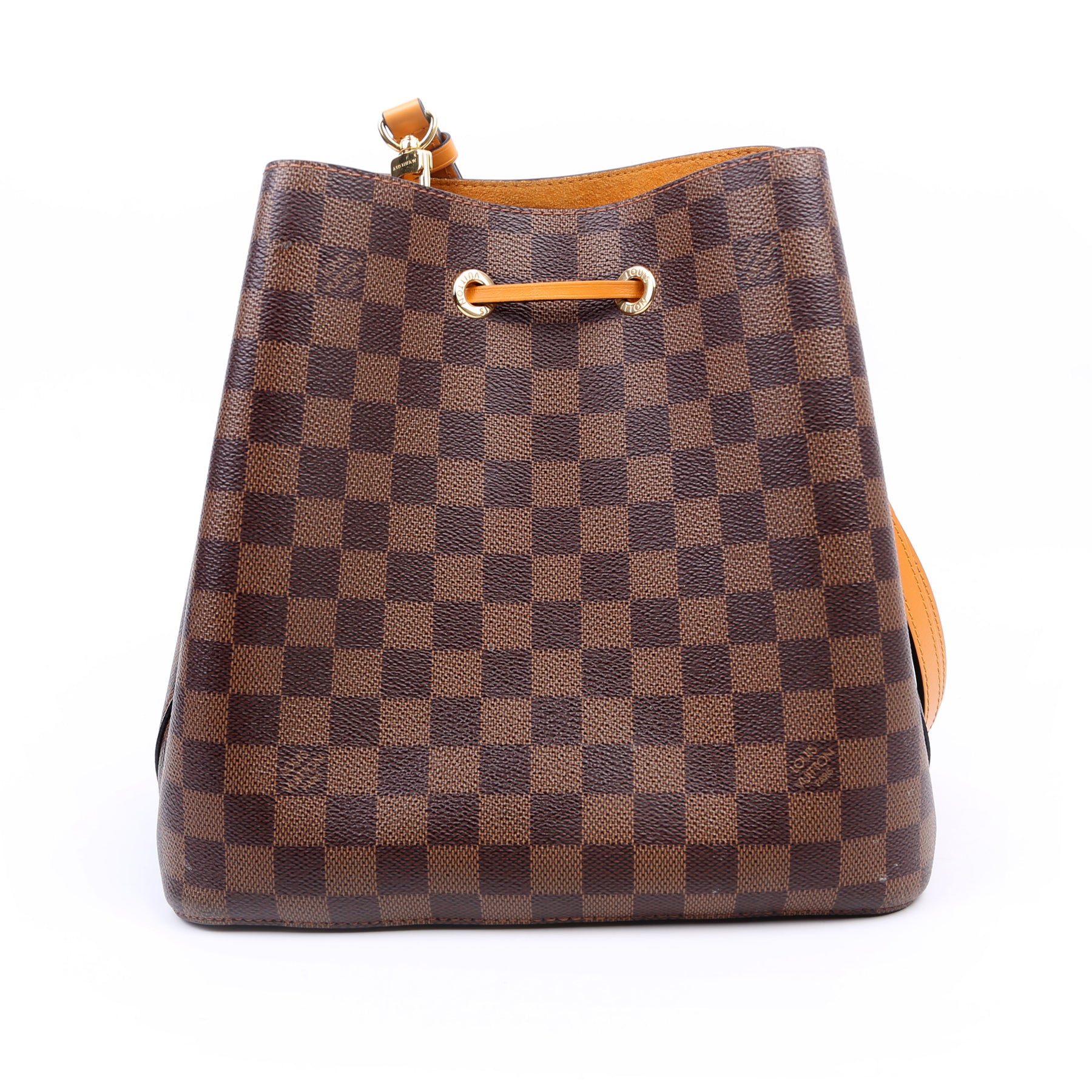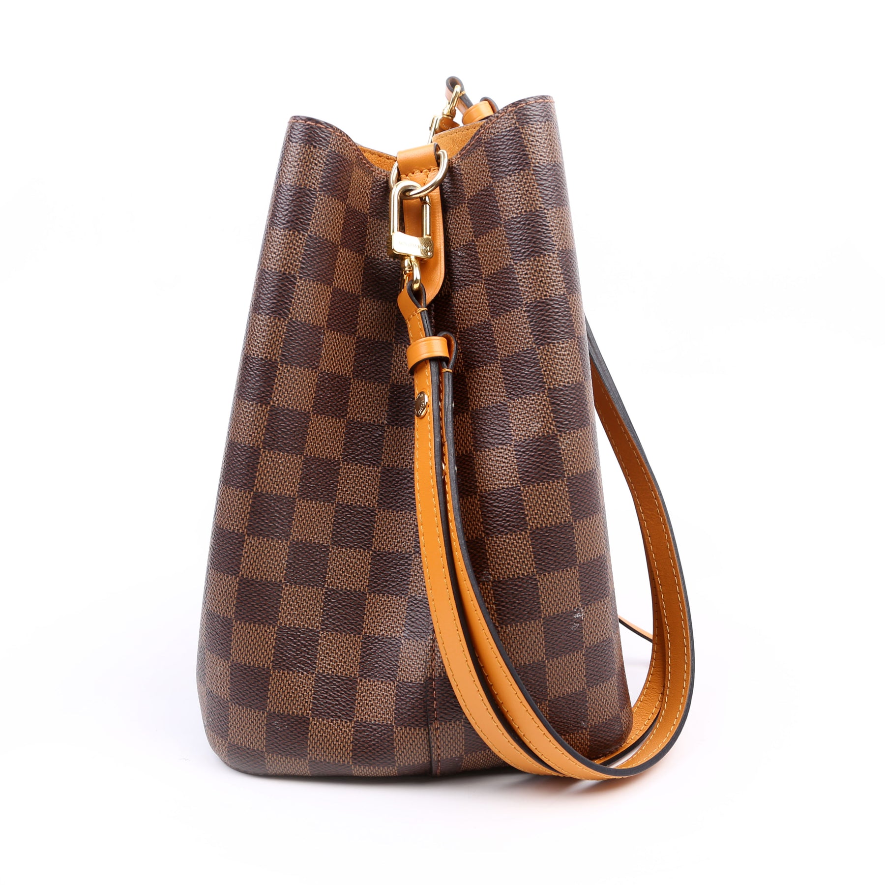 This pre-owned Louis Vuitton Neonoe is guaranteed 100% authentic. The exterior is in the classic Louis Vuitton Damier Ebene coated canvas.