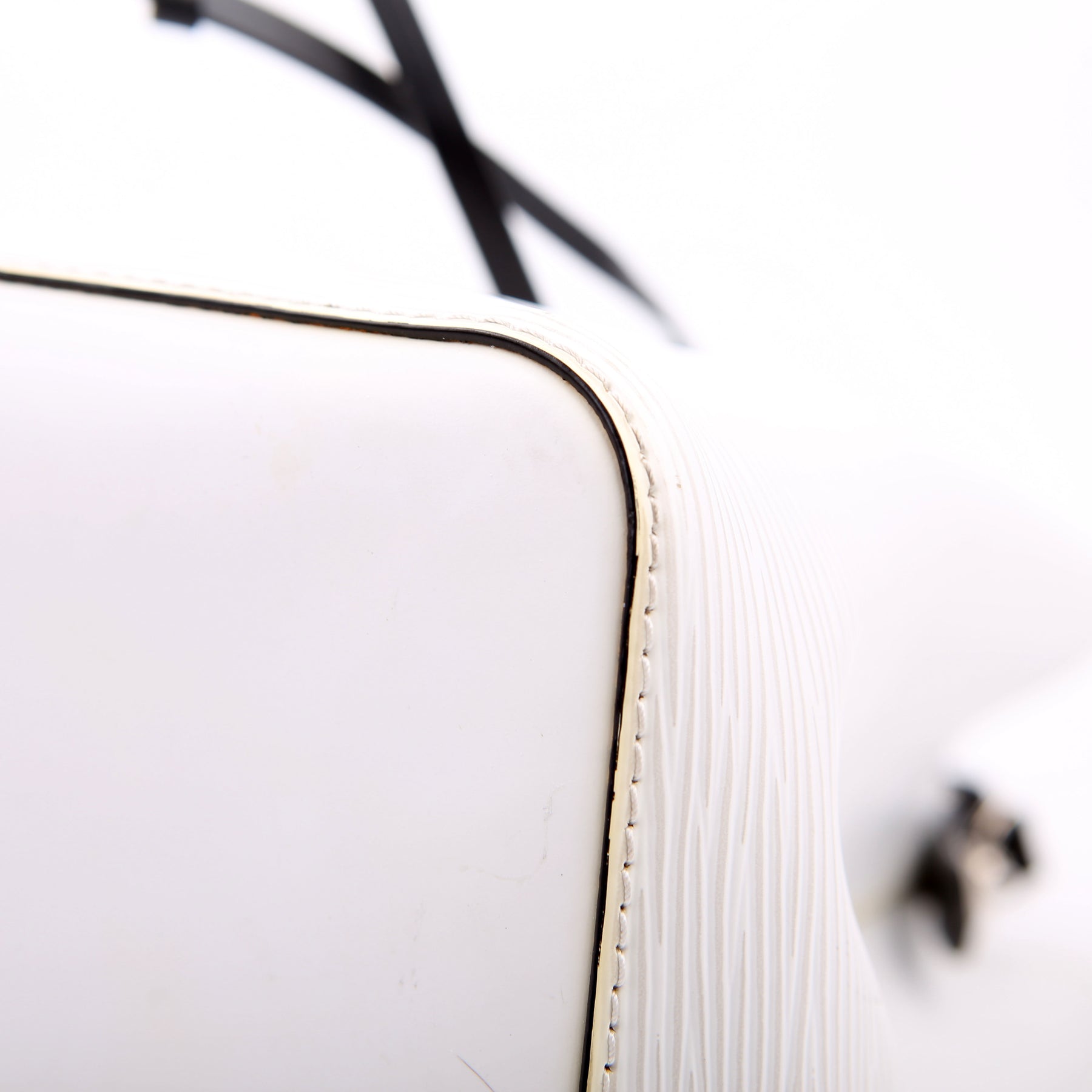 Hardware: The leather drawstring operates properly. The hardware shows light wear.