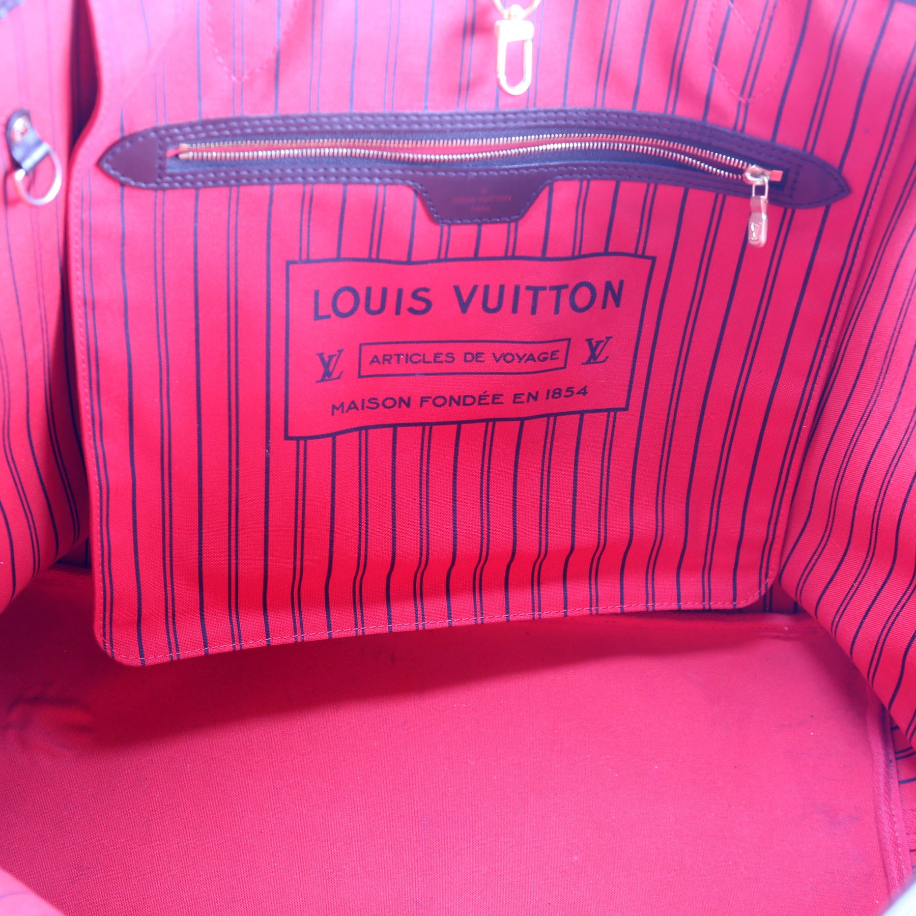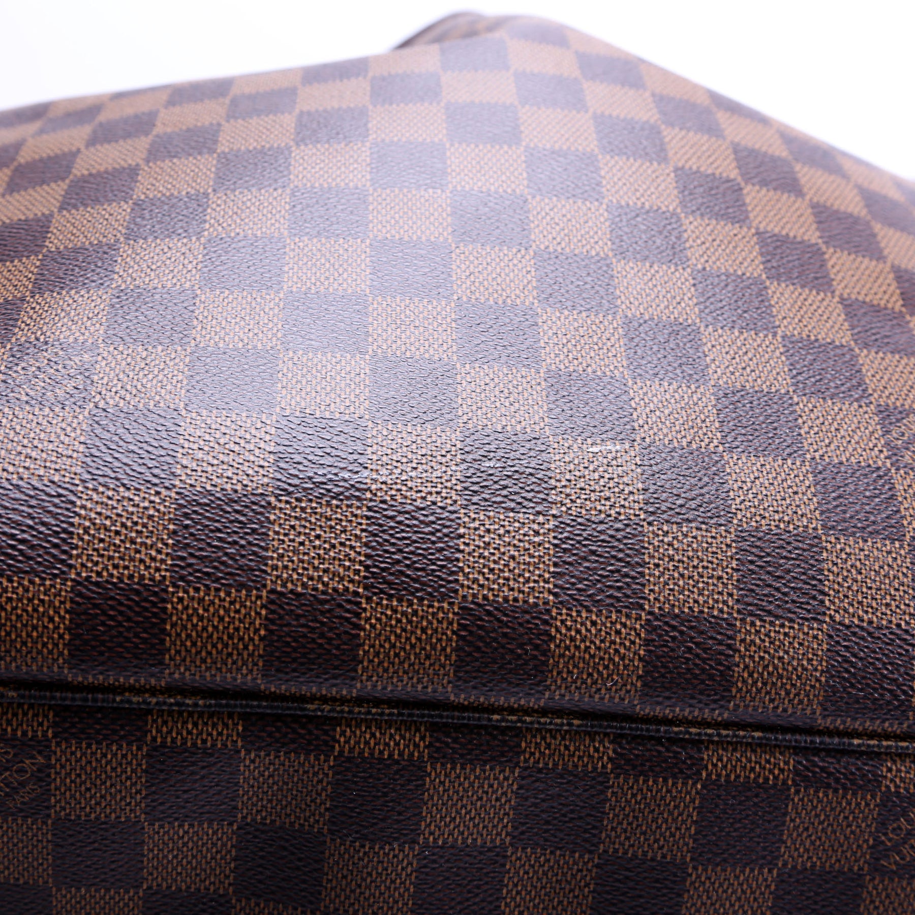 This pre-owned Louis Vuitton Neverfull W/Wallet GM is guaranteed 100% authentic. The exterior is in the classic Louis Vuitton Damier Ebene coated canvas.