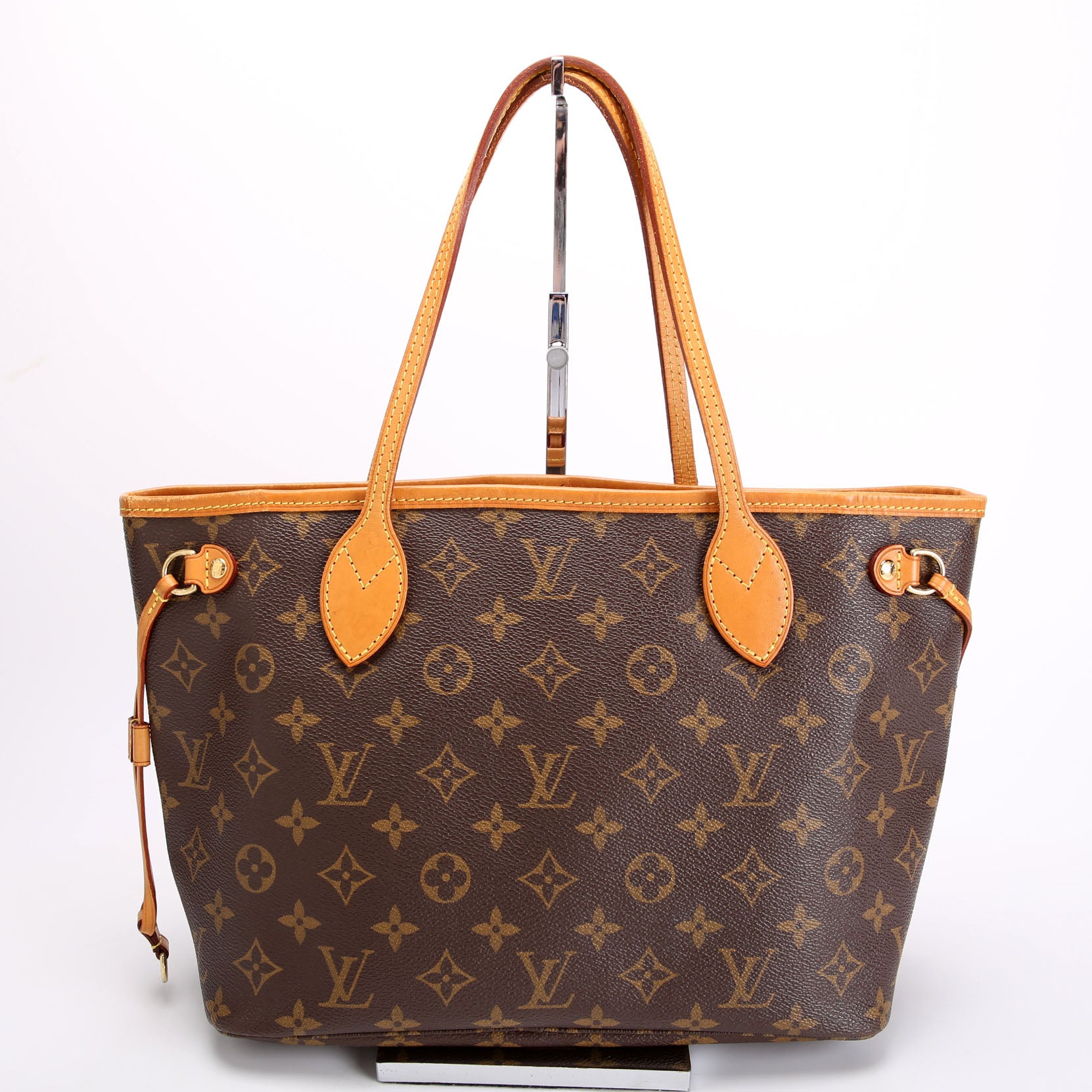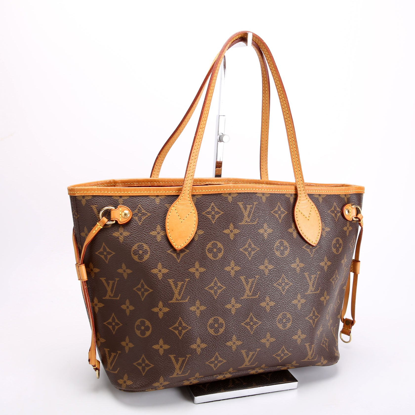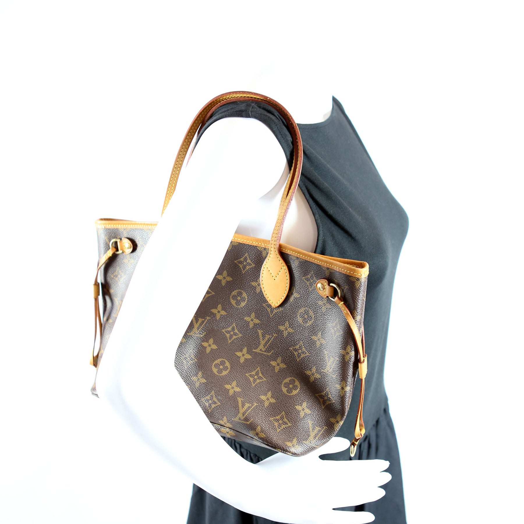 This pre-owned Louis Vuitton Neverfull PM is guaranteed 100% authentic. The exterior is in the classic Louis Vuitton Monogram coated canvas.