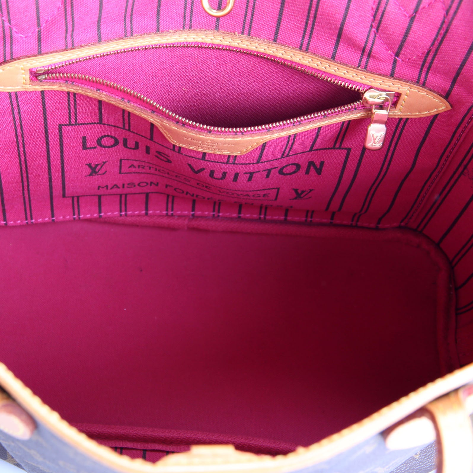 Interior: The interior is free from wear. It features one zip closure pocket.