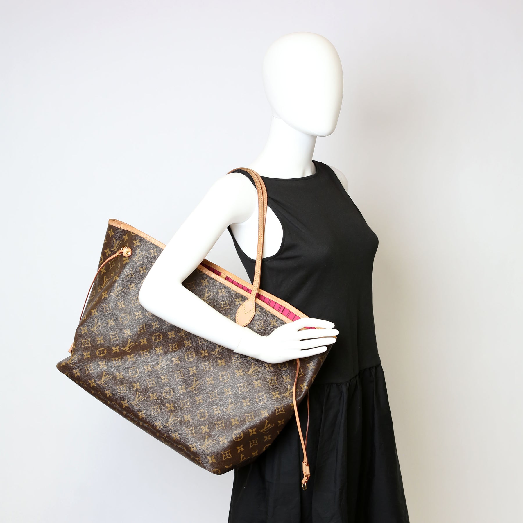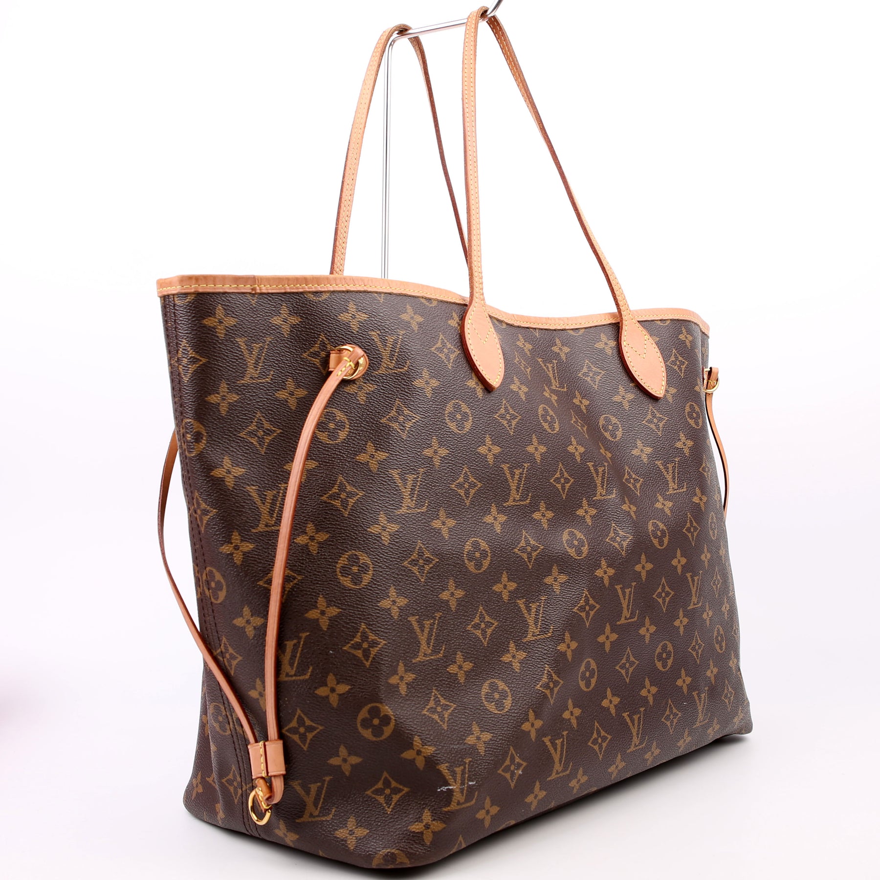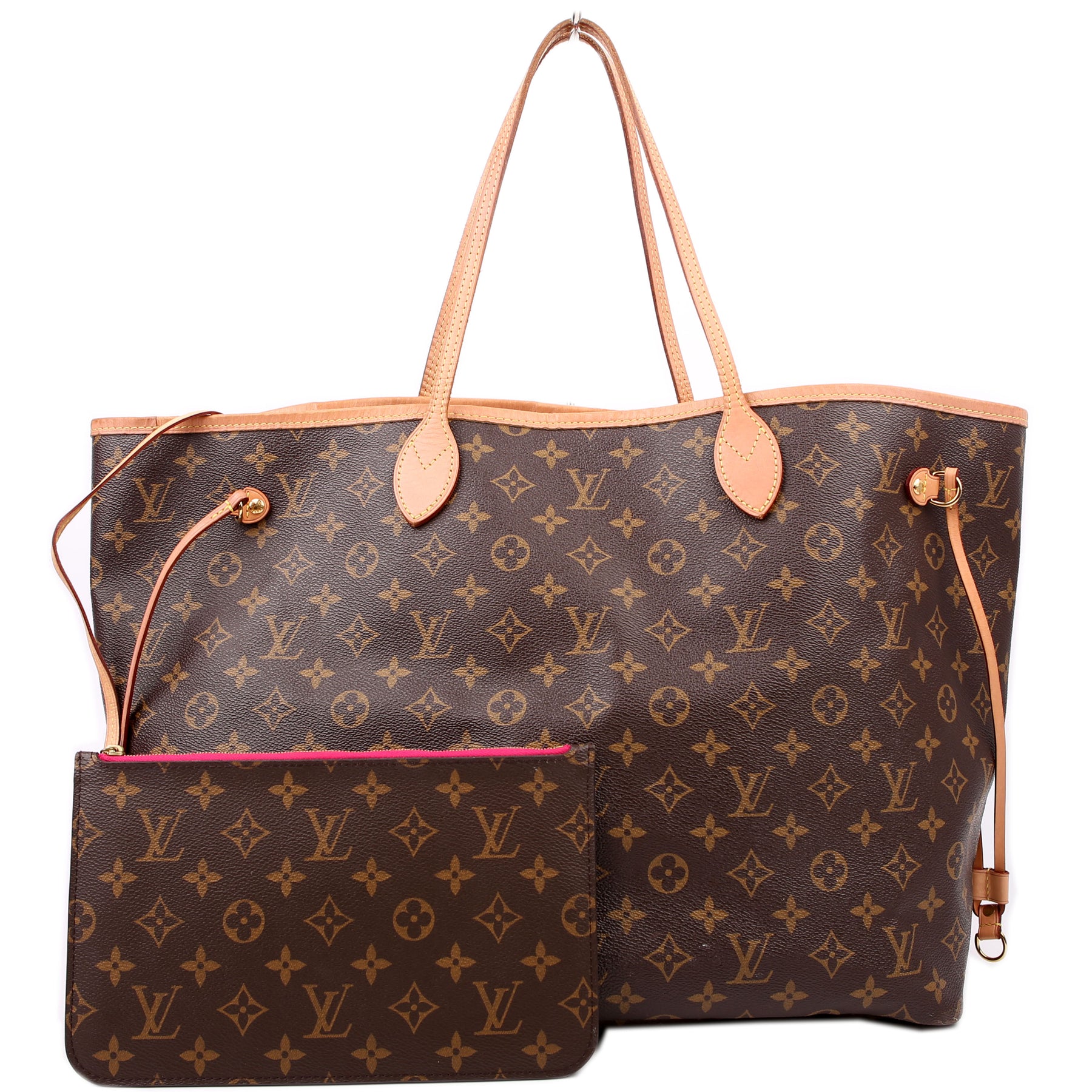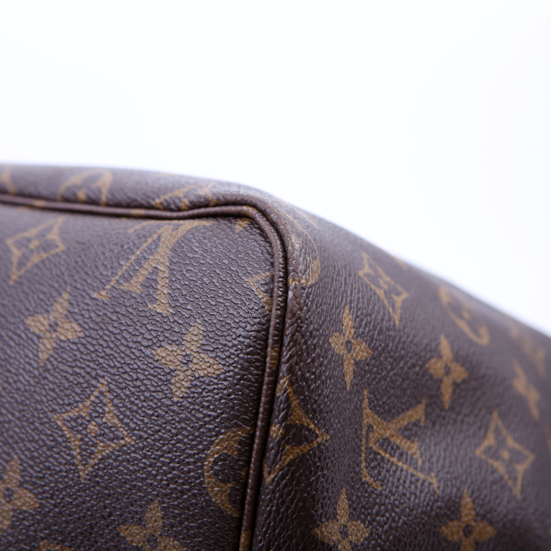 This pre-owned Louis Vuitton Neverfull With Wallet GM is guaranteed 100% authentic. The exterior is in the classic Louis Vuitton Monogram coated canvas.