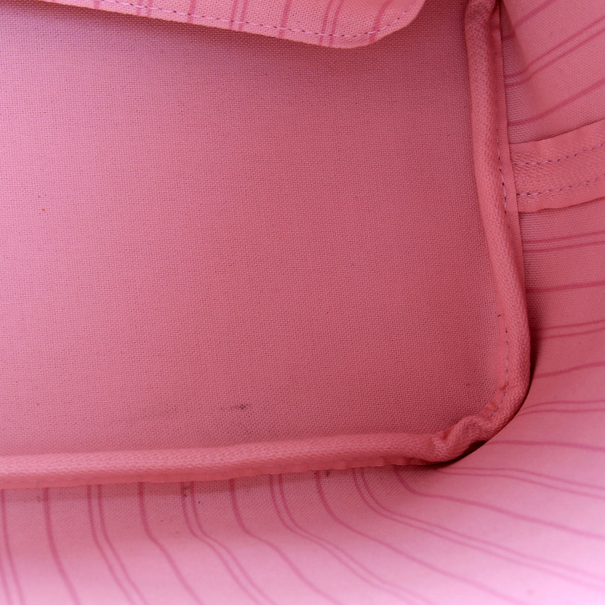Exterior: The exterior coated canvas is free from wear. The corners show light wear and rubbing. The leather piping shows light wear and rubbing.