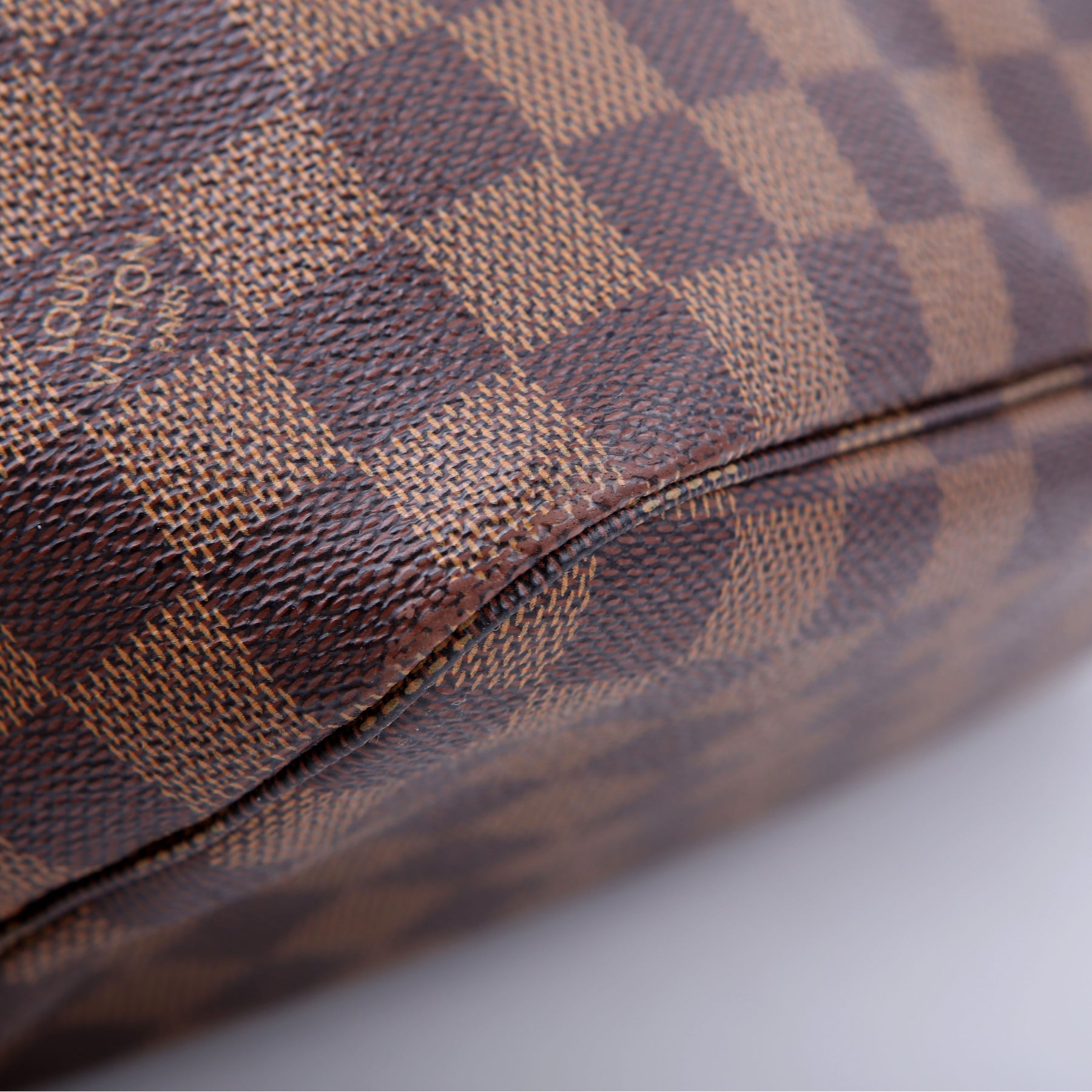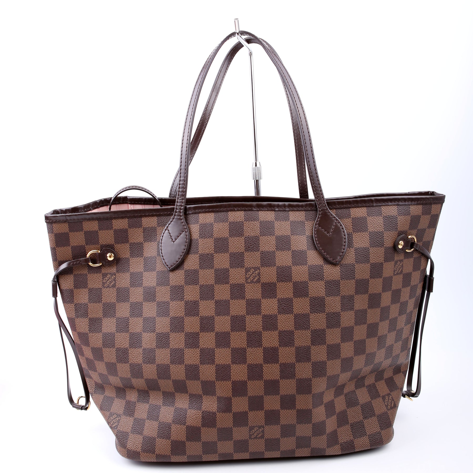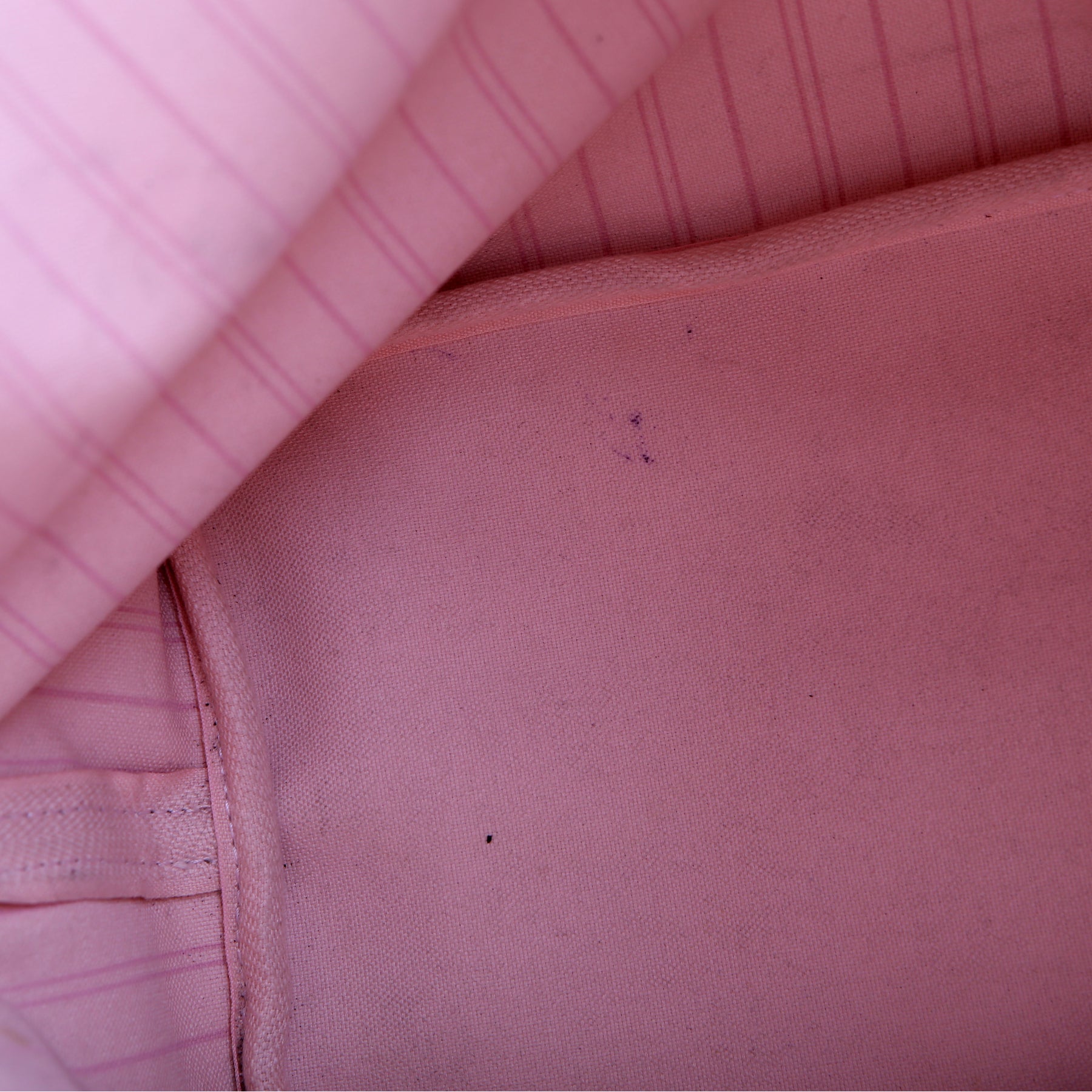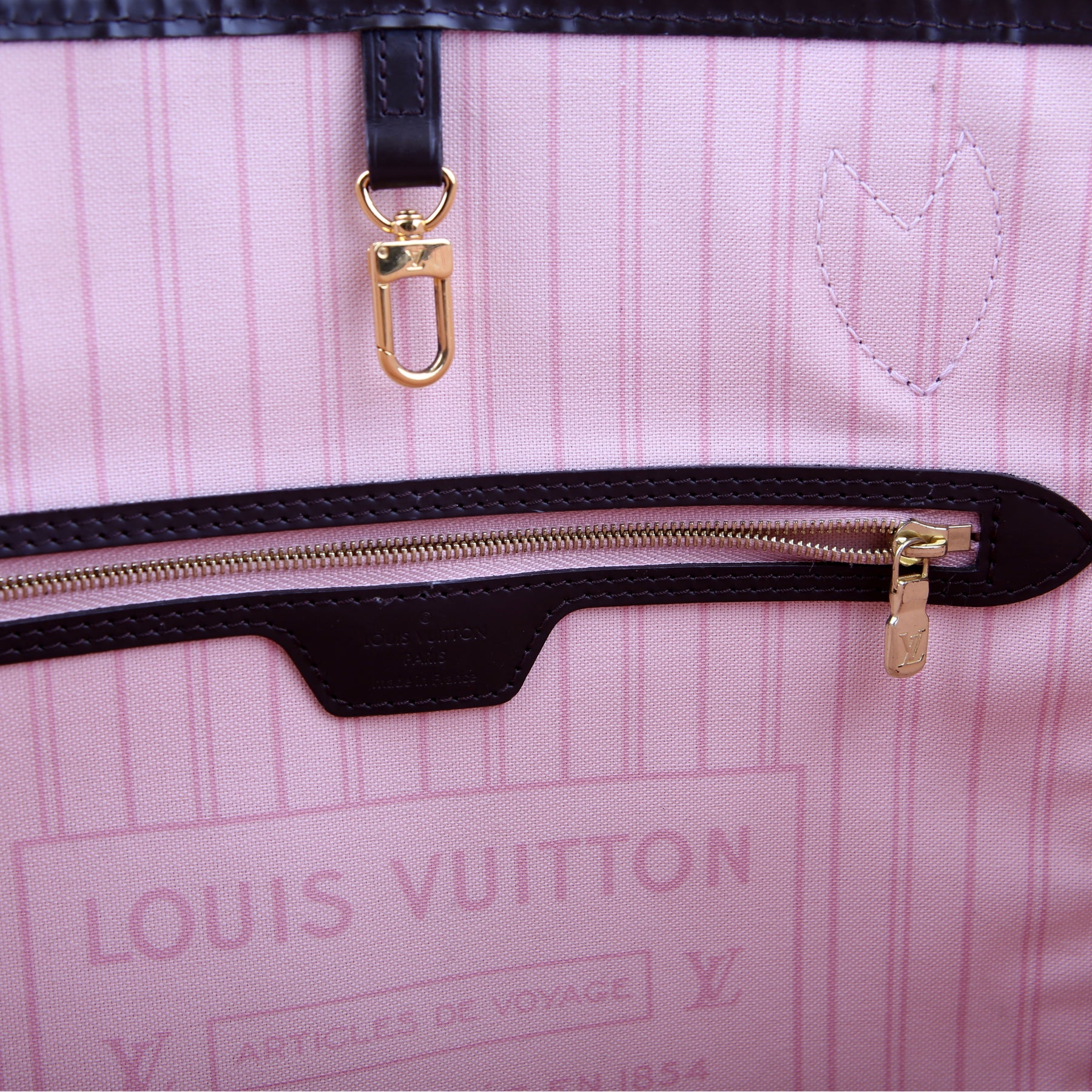 This pre-owned Louis Vuitton Neverfull MM W/Wallet is guaranteed 100% authentic. The exterior is in the classic Louis Vuitton Damier Ebene coated canvas.