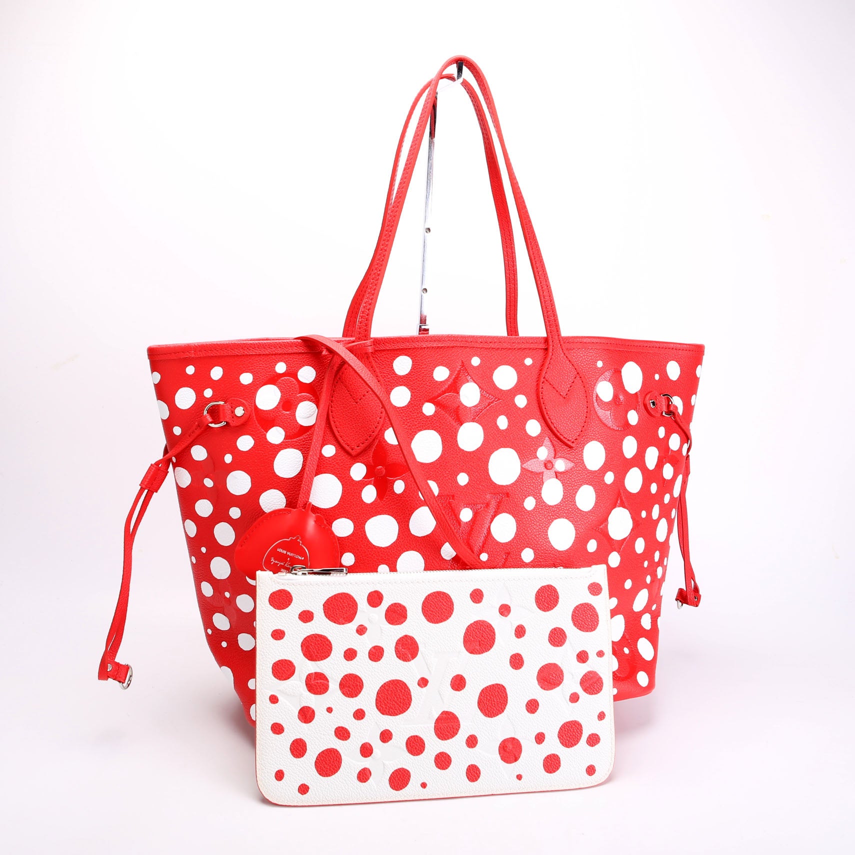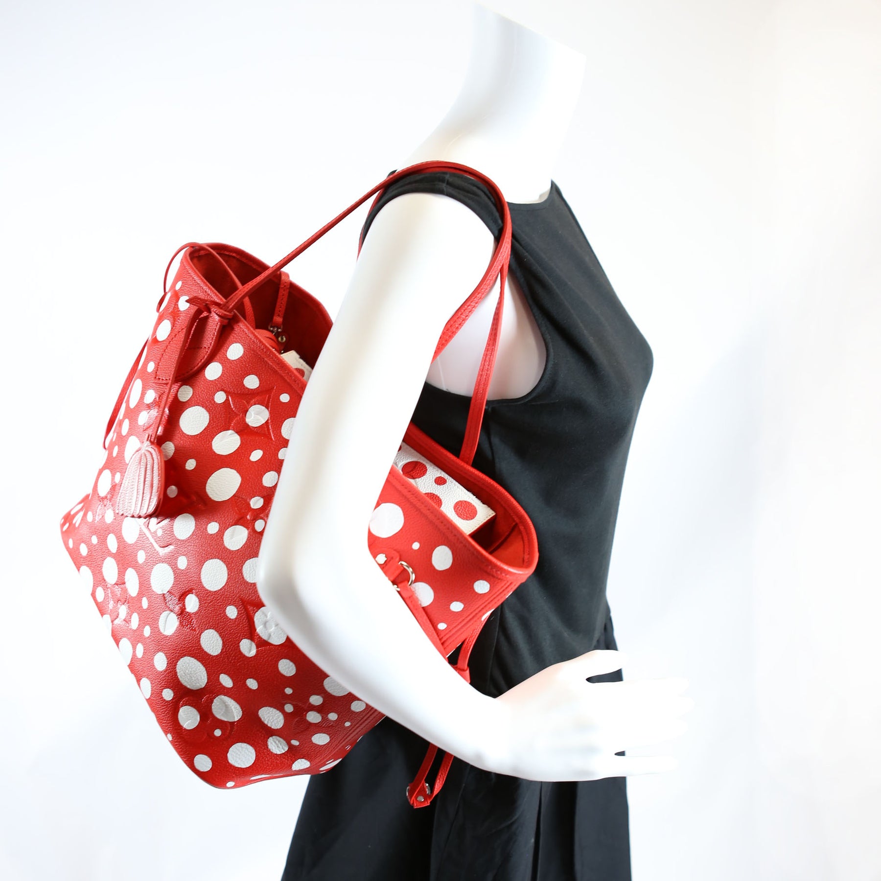 This pre-owned Louis Vuitton Infinity Dots Neverfull is guaranteed 100% authentic. The exterior is in the classic Louis Vuitton LV x YK Inifinity Dots Empreinte.