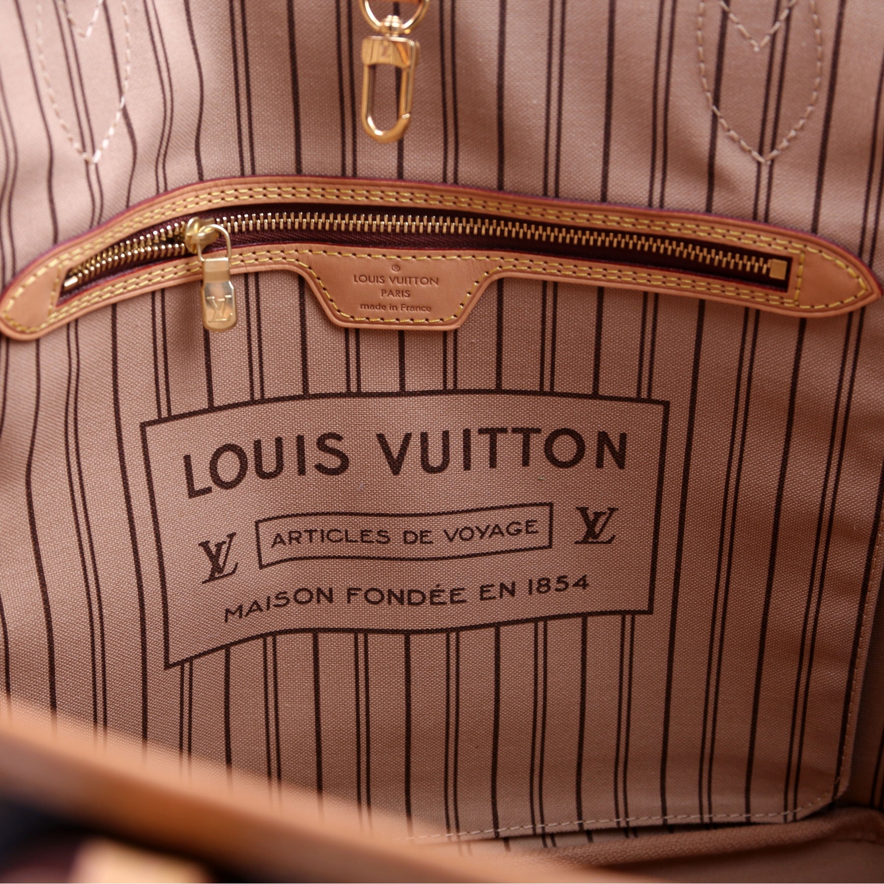 This pre-owned Louis Vuitton Neverfull MM With Wallet is guaranteed 100% authentic. The exterior is in the classic Louis Vuitton Monogram coated canvas.