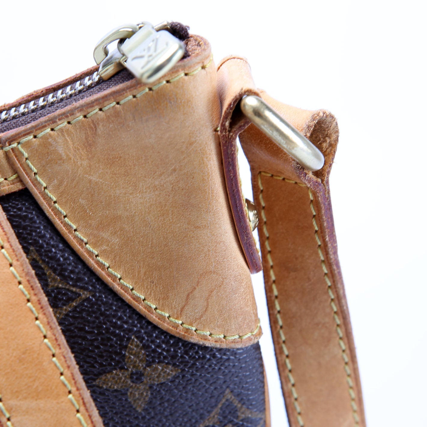 Hardware: The zipper operates properly and runs smoothly. The hardware shows scratches and light discoloration.
