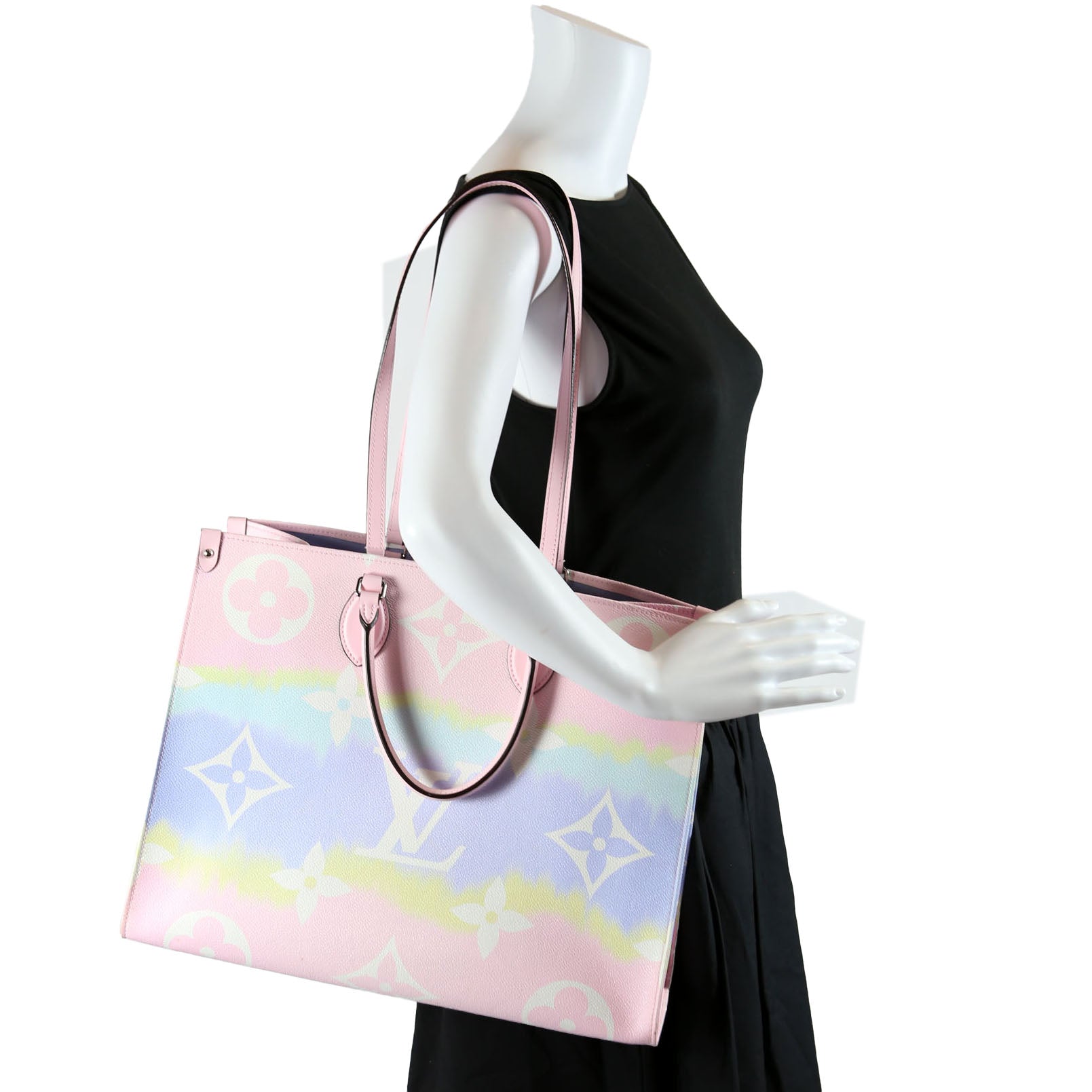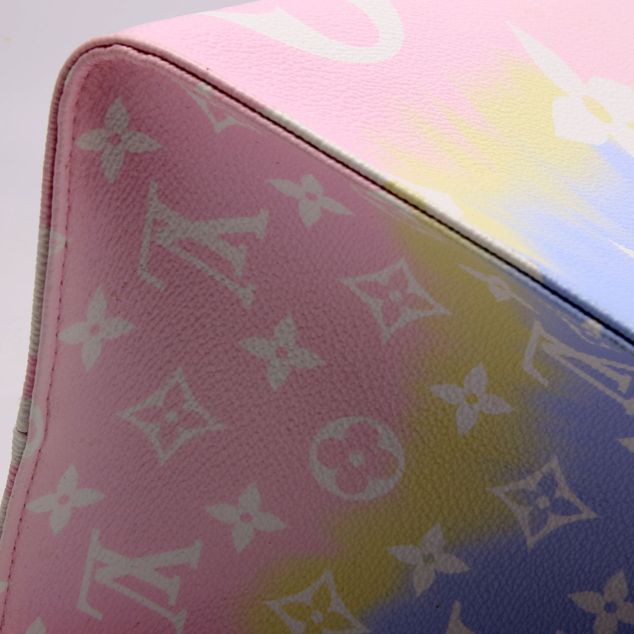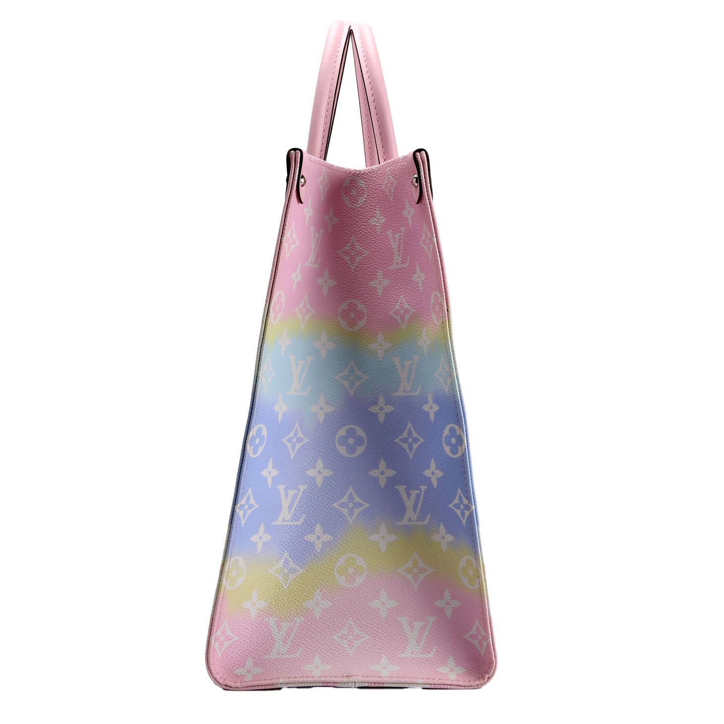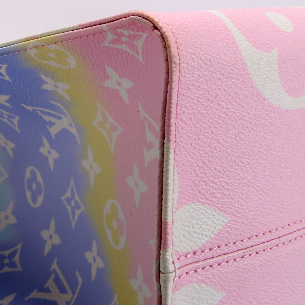 This pre-owned Louis Vuitton ONTHEGO GM Escale is guaranteed 100% authentic. The exterior is in the classic Louis Vuitton monogram coated canvas.