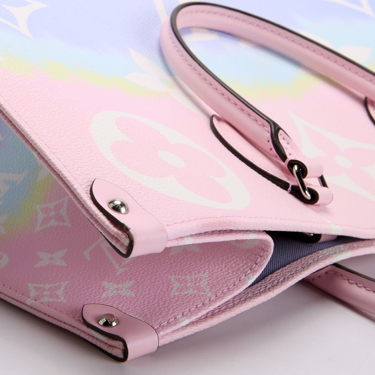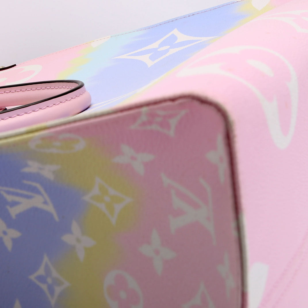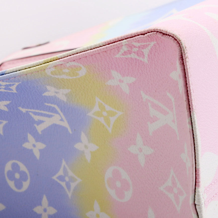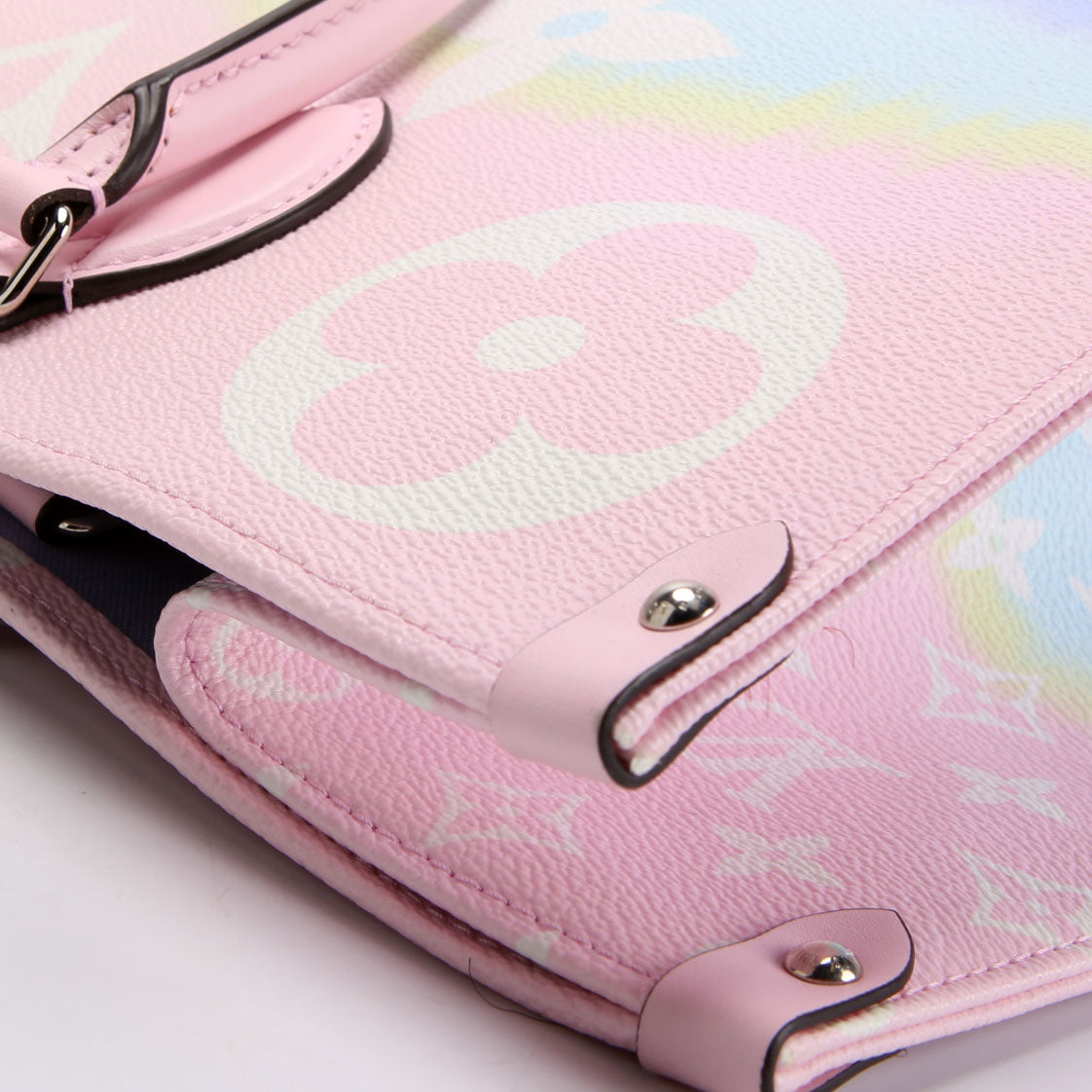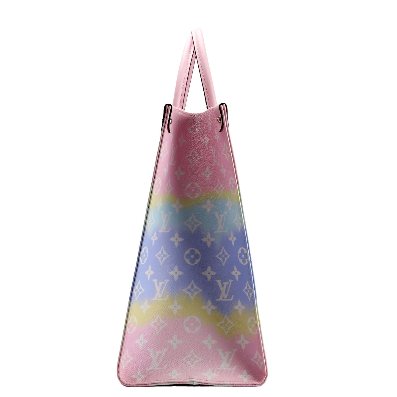 This pre-owned Louis Vuitton ONTHEGO GM Escale is guaranteed 100% authentic. The exterior is in the classic Louis Vuitton monogram coated canvas.