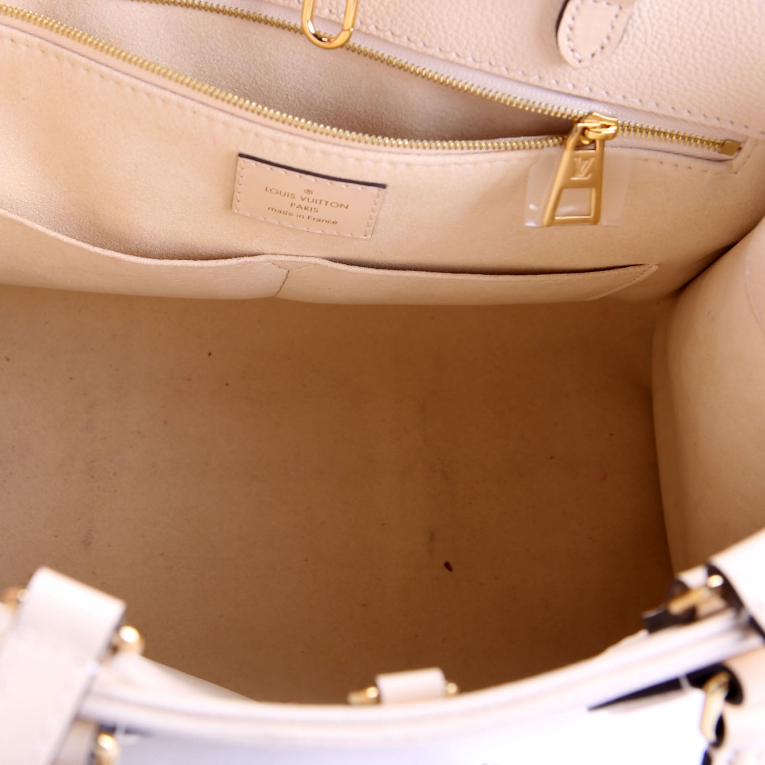 This pre-owned Louis Vuitton ONTHEGO MM is guaranteed 100% authentic. The exterior is in the classic Louis Vuitton Empreinte leather.