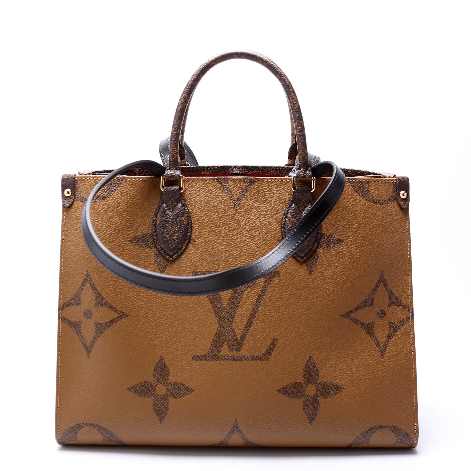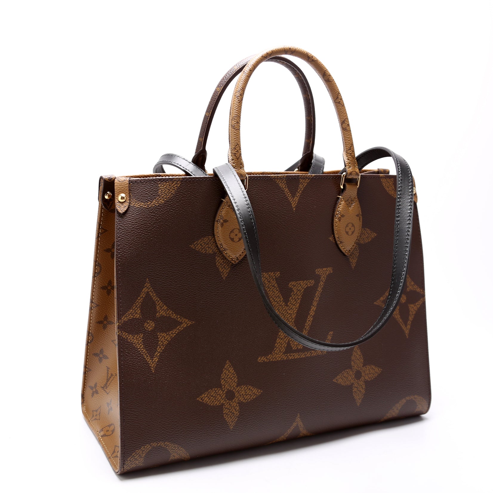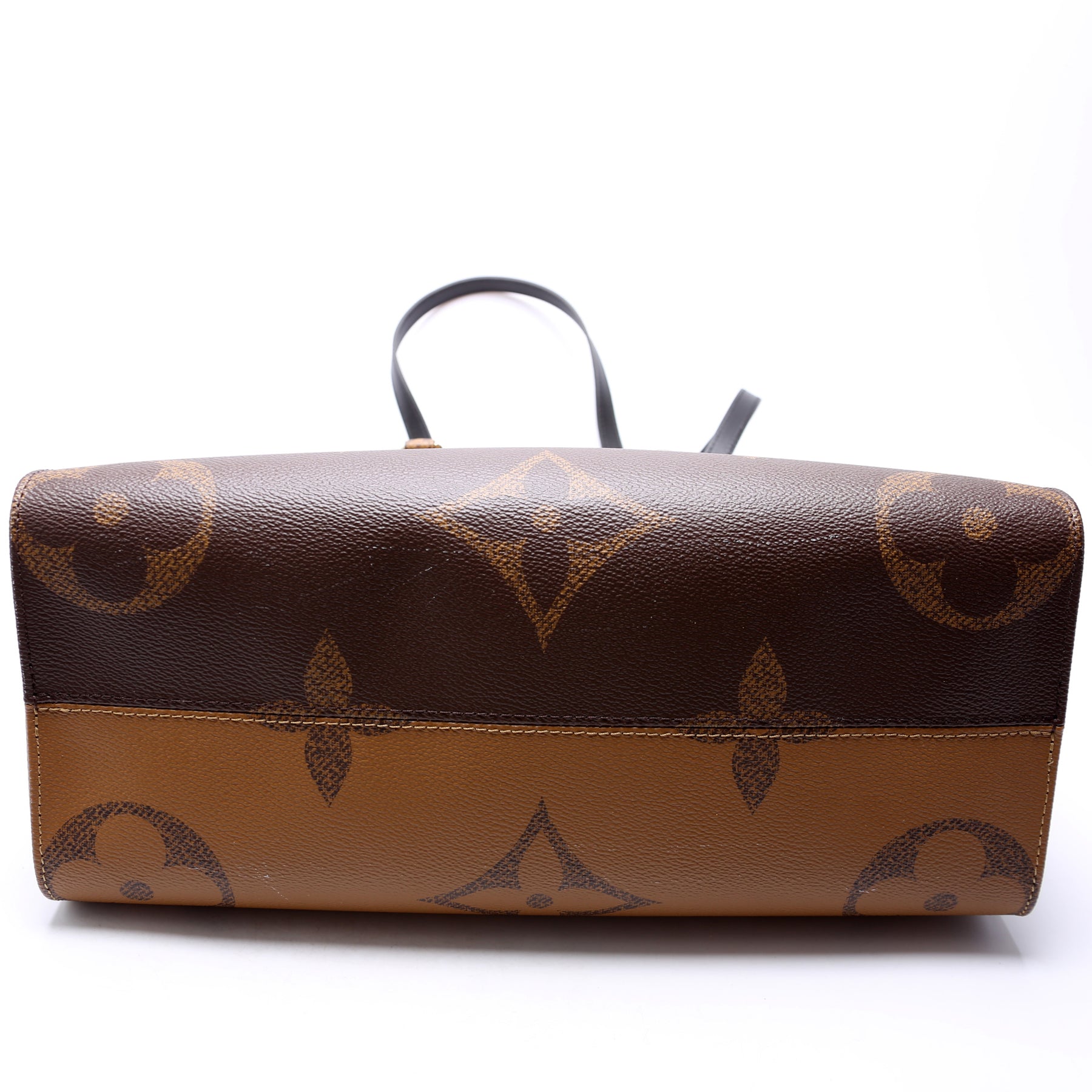 This pre-owned Louis Vuitton ONTHEGO MM is guaranteed 100% authentic. The exterior is in the classic Louis Vuitton Reverse Monogram coated canvas.