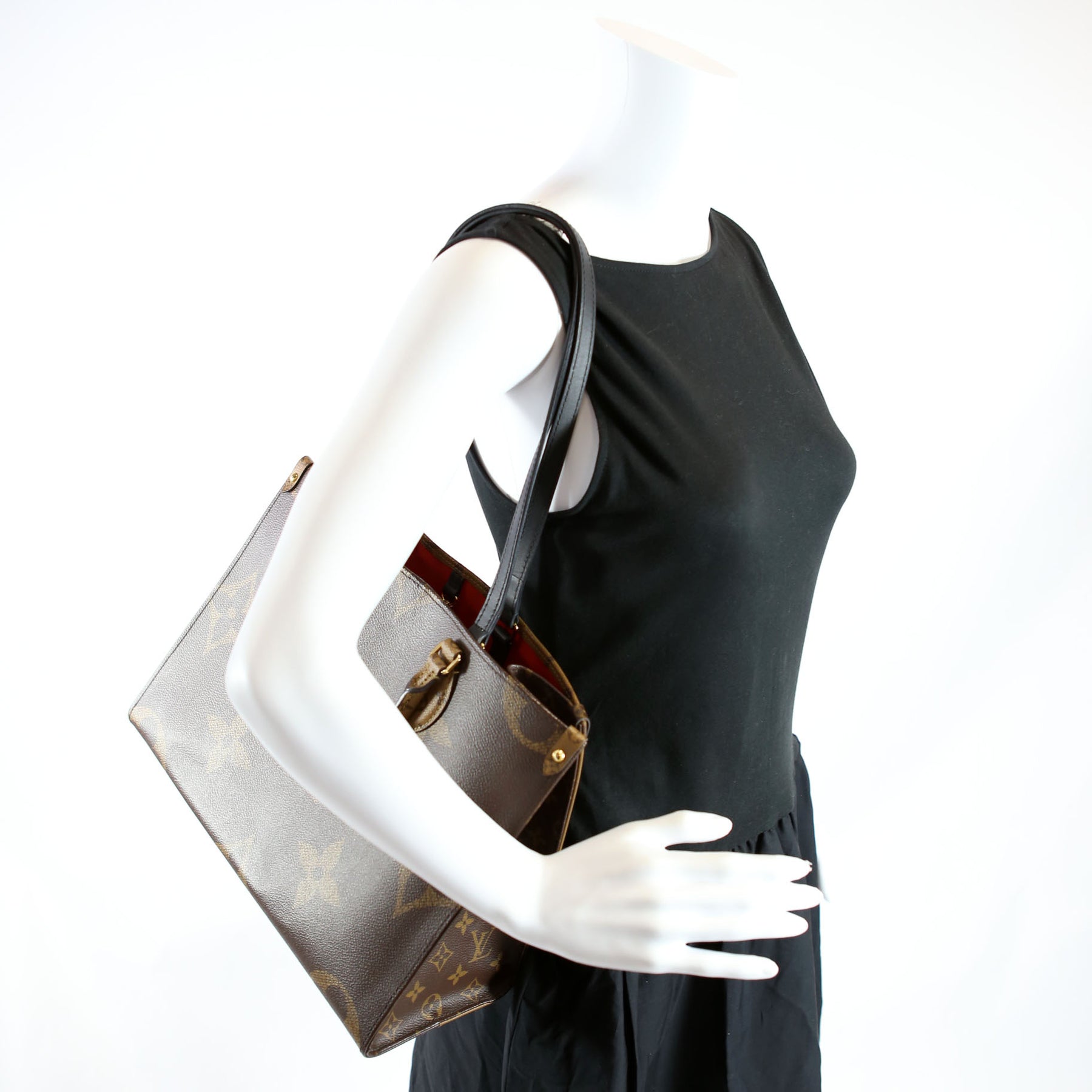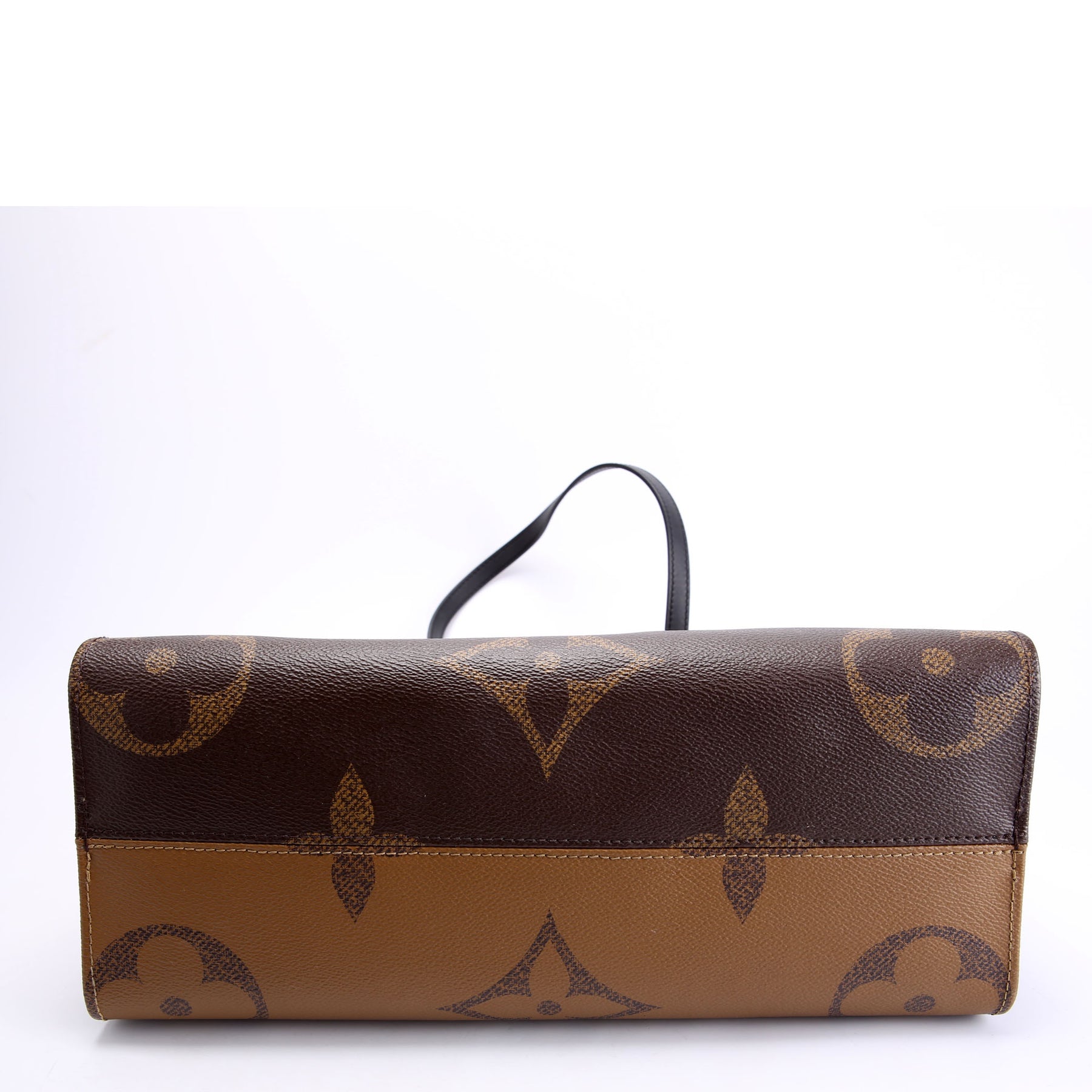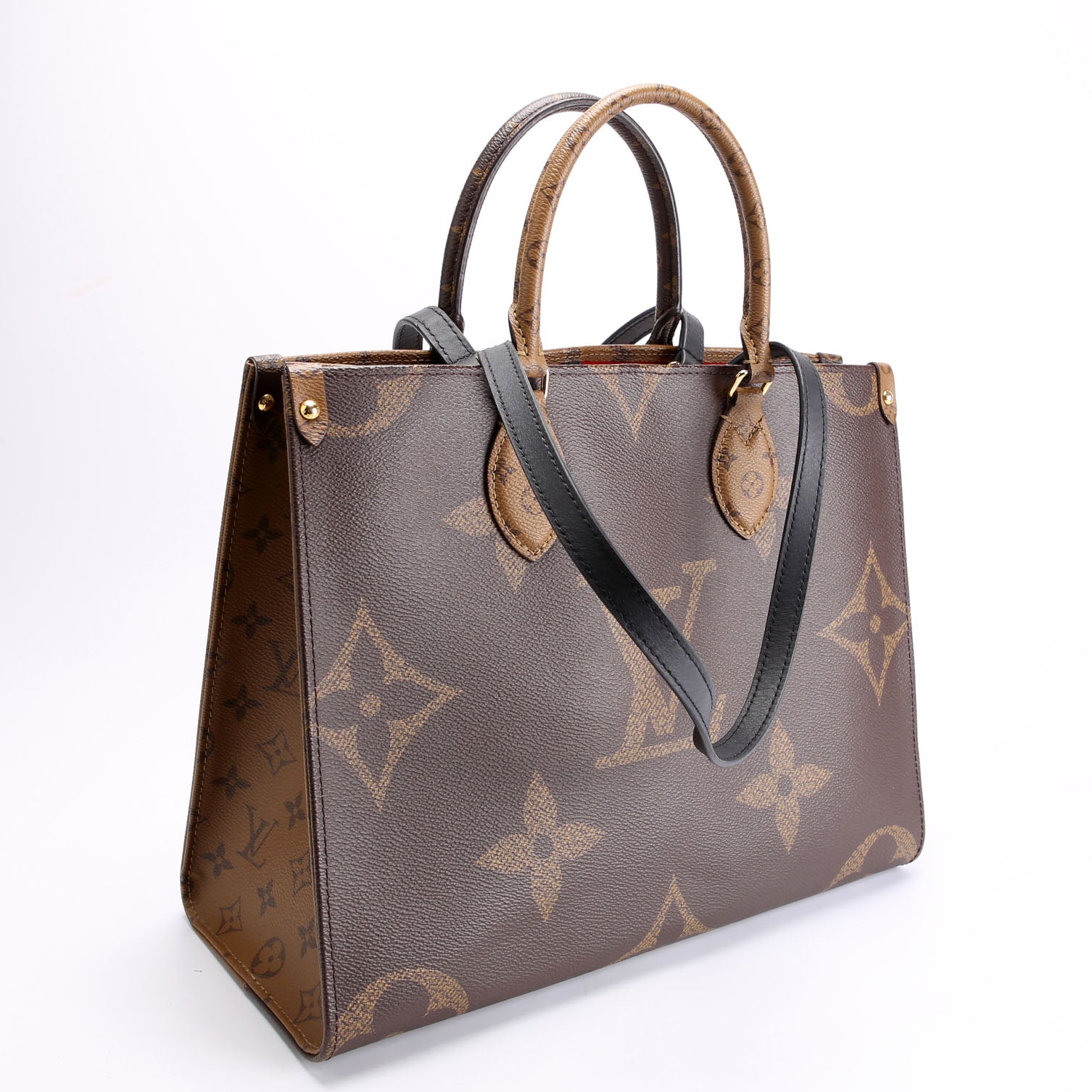 This pre-owned Louis Vuitton ONTHEGO MM is guaranteed 100% authentic. The exterior is in the classic Louis Vuitton Reversed Monogram coated canvas.